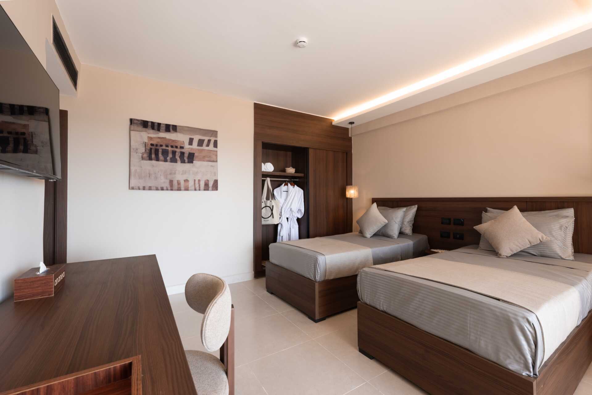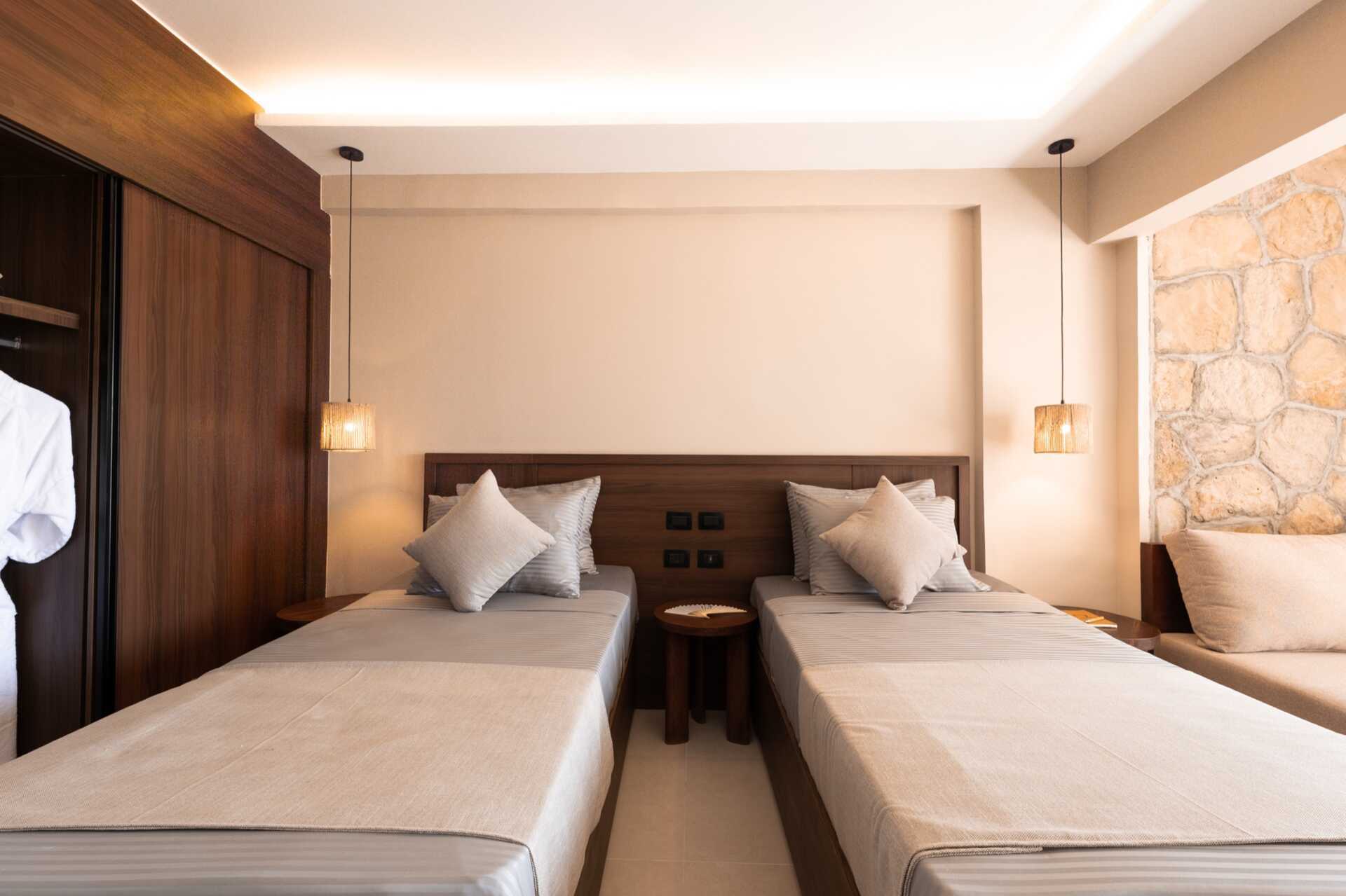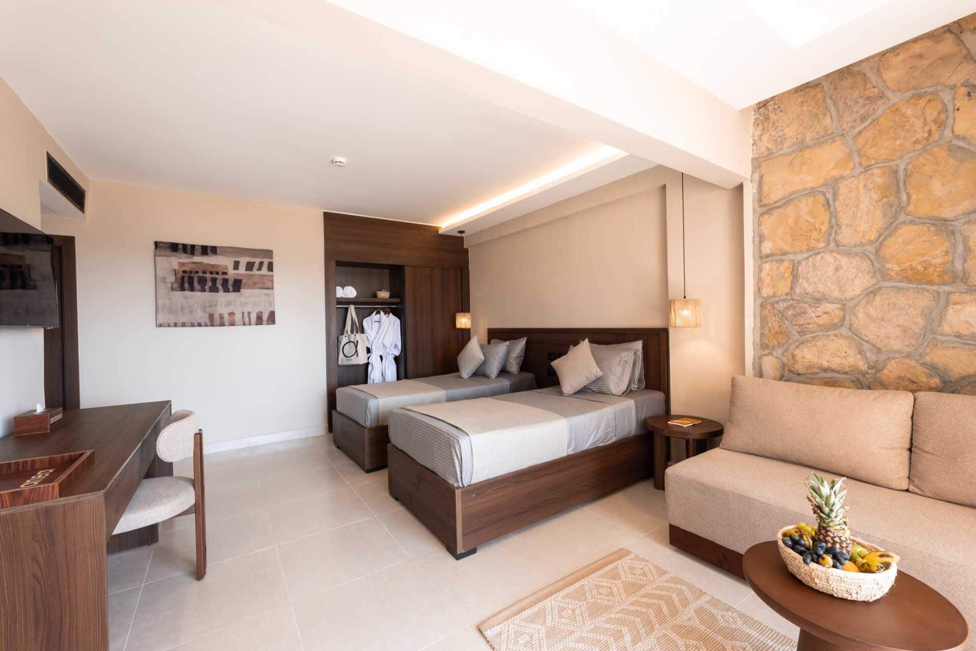Superiorrum med balkong eller terrass och havsutsikt. En dubbelsäng eller två enkelsängar. Möjlighet till extrabädd i hopvikbar säng. Wifi, luftkonditionering och deponering ingår. Minibar mot avgift. Vattenkokare samt kaffe och te. Tv med internationella kanaler. Några rum har heltäckningsmatta. Hårtork. Badrum med badkar eller dusch samt wc. Städning 7 ggr/vecka.