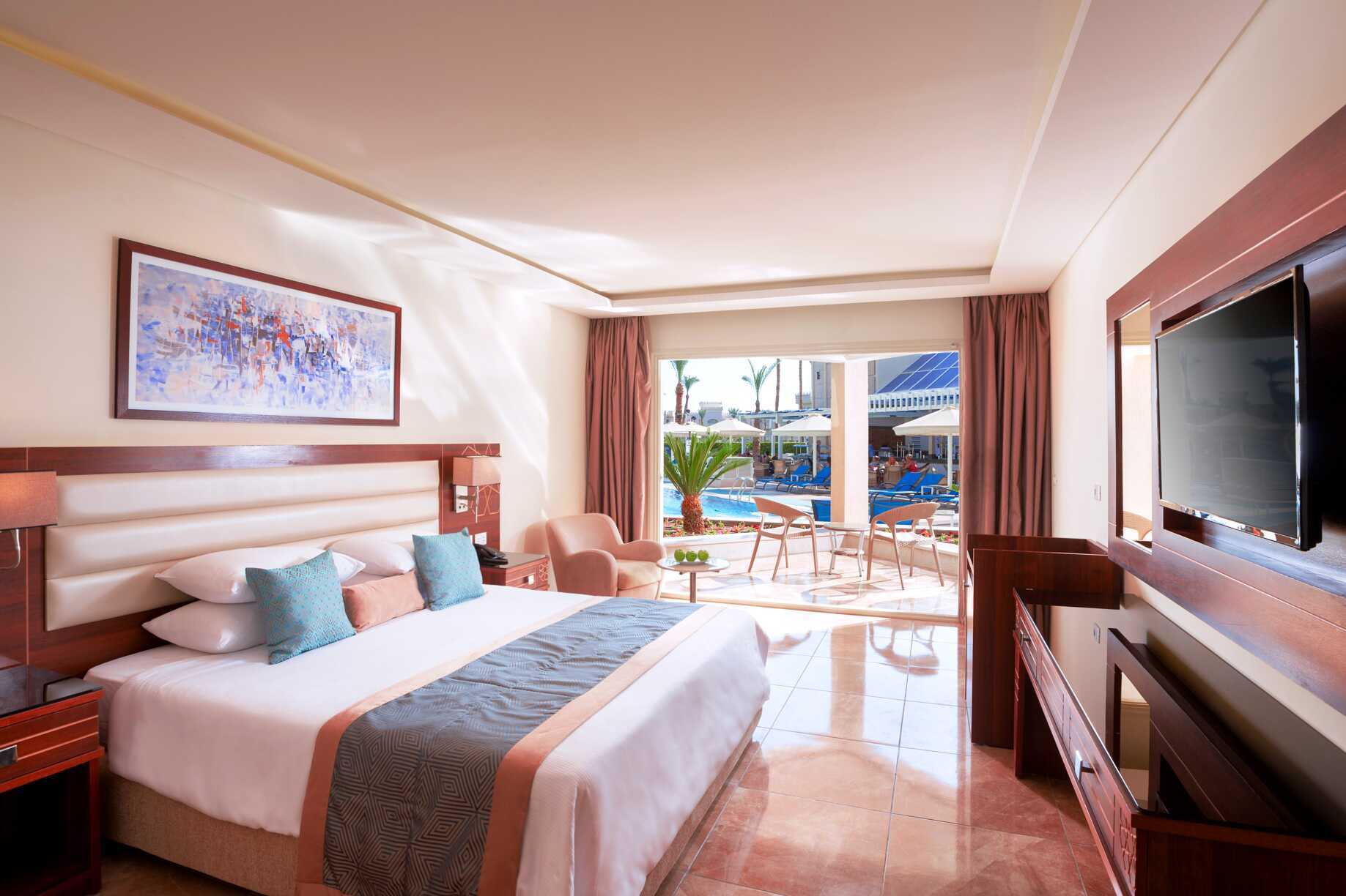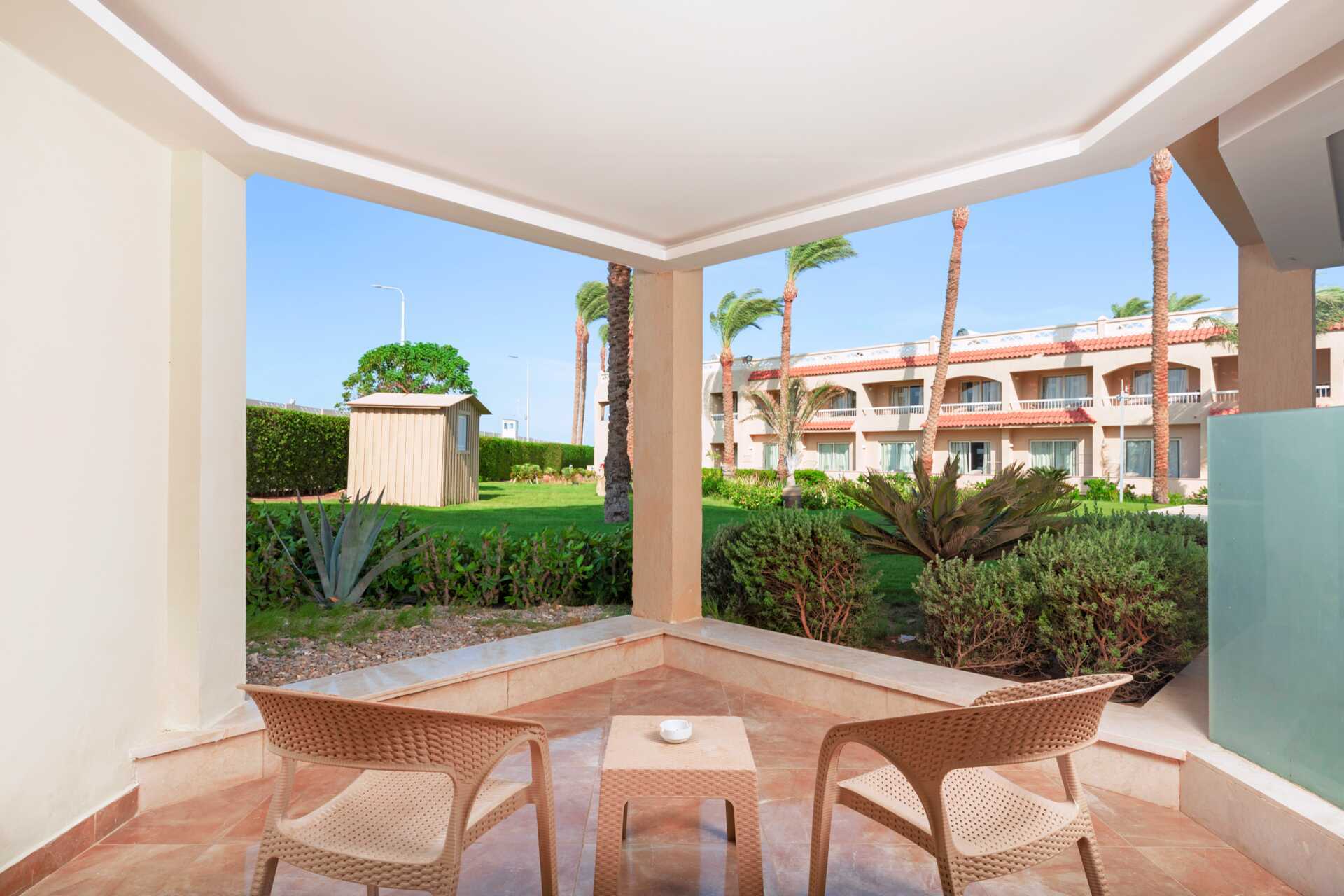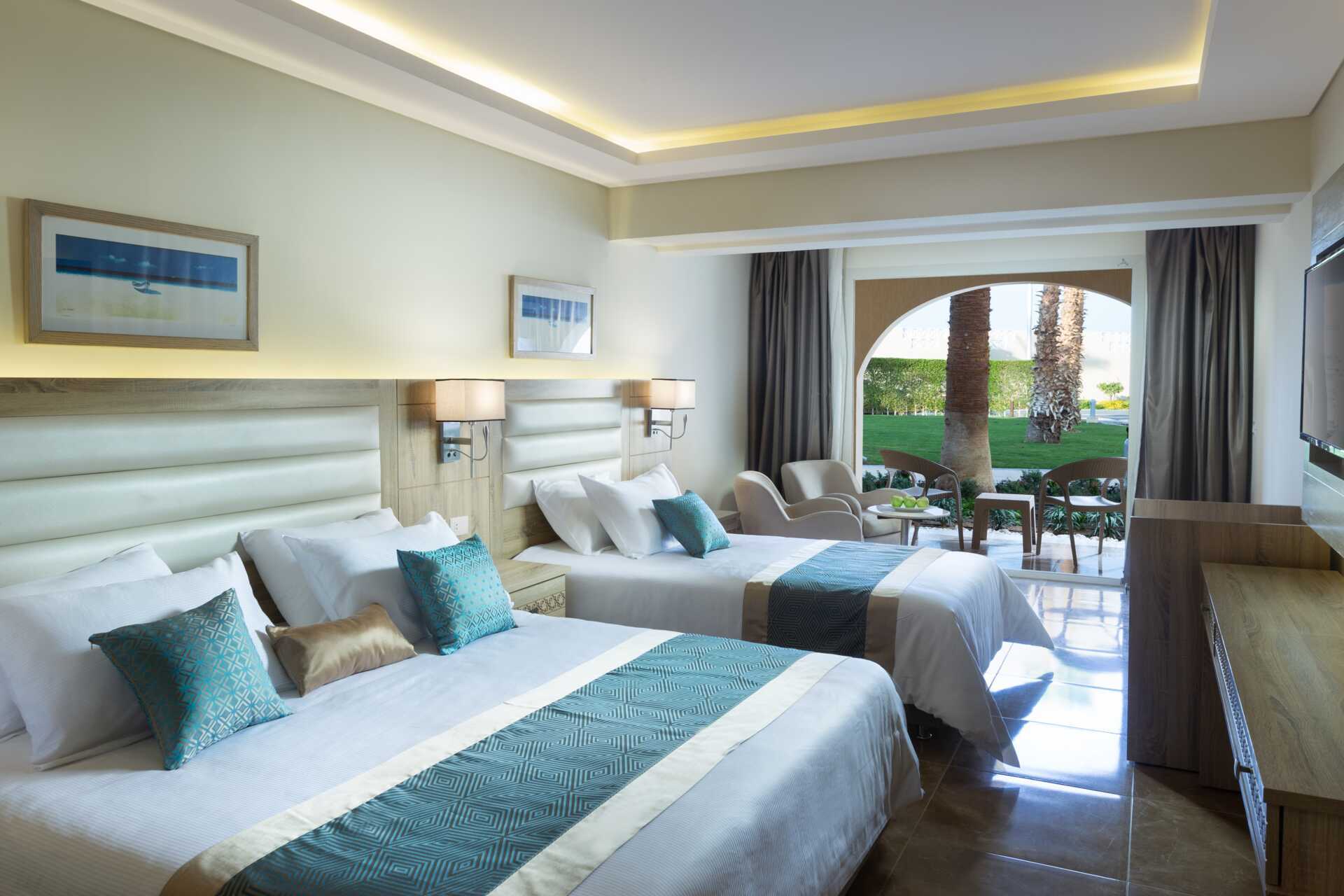 Dubbelrum i tvåvåningsbyggnader/bungalow med balkong eller markterrass och ligger i hotellets i trädgård, vissa med poolutsikt. En dubbelsäng eller två enkelsängar. Möjlighet till extrabädd för två personer i bäddsoffa. Wifi, luftkonditionering och deponering ingår. Minibar som dagligen fylls på med en flaska vatten per person. Vattenkokare samt kaffe och te. Tv med internationella kanaler. Hårtork. Badrum med dusch och wc. Städning 7 ggr/vecka.