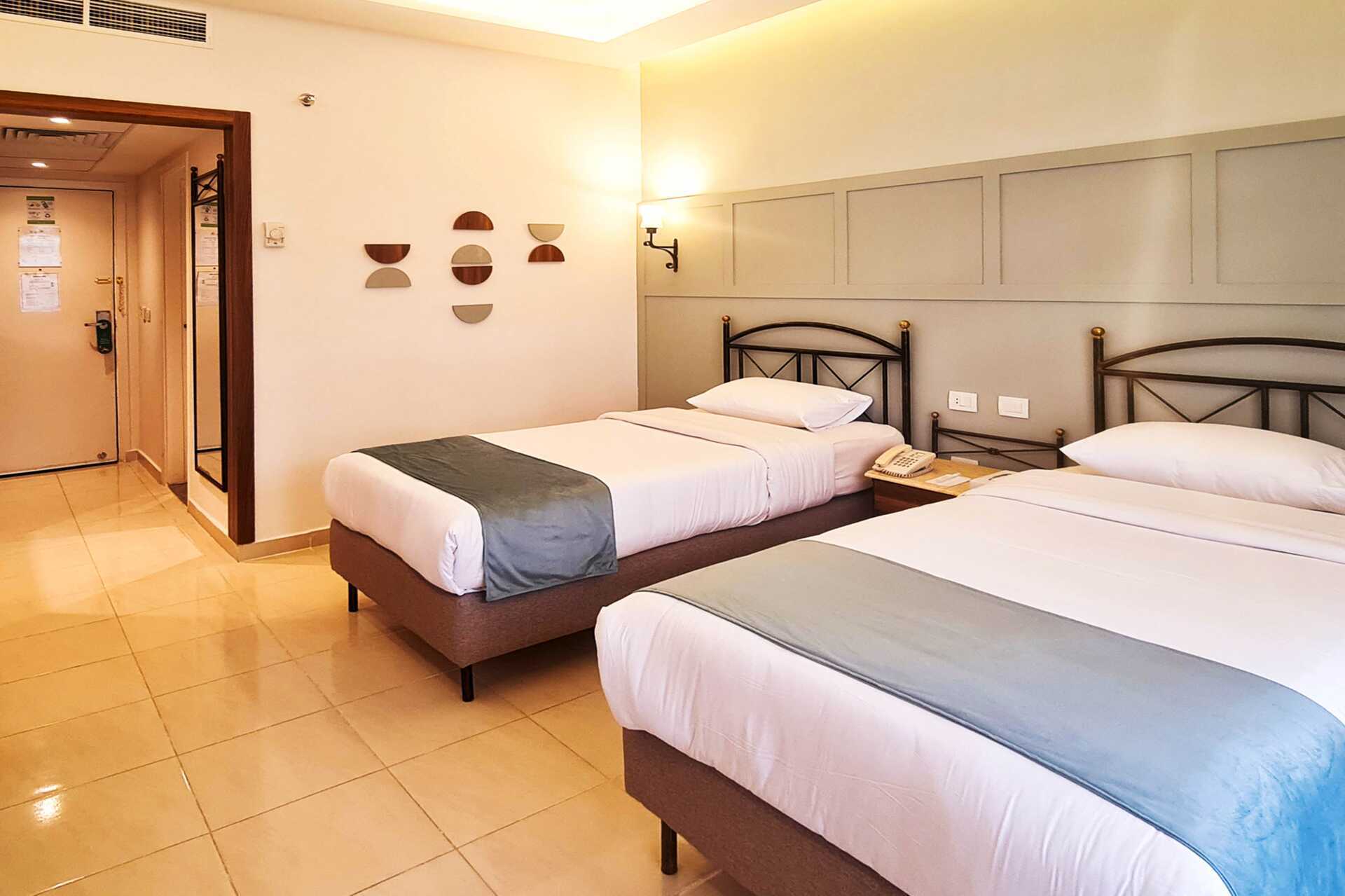 Familjerum med balkong eller terrass. All Inclusive ingår. Familjerummet består av två sovrum. Ett sovrum med en dubbelsäng eller två enkelsängar. Möjlighet till extrabäddar i en enkelsäng och en bäddsoffa eller två enkelsängar i andra sovrummet. Luftkonditionering ingår. Deponering och wifi mot avgift. Från och med vintern 26/27 ingår wifi och deponering. Minibar - en liten flaska vatten ingår - fylls på varje dag, övrig dryck och snacks mot avgift. Vattenkokare samt kaffe och te. Tv med internationella kanaler. Hårtork. Badrum med badkar eller dusch samt wc. Städning 7 ggr/vecka.