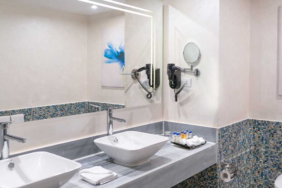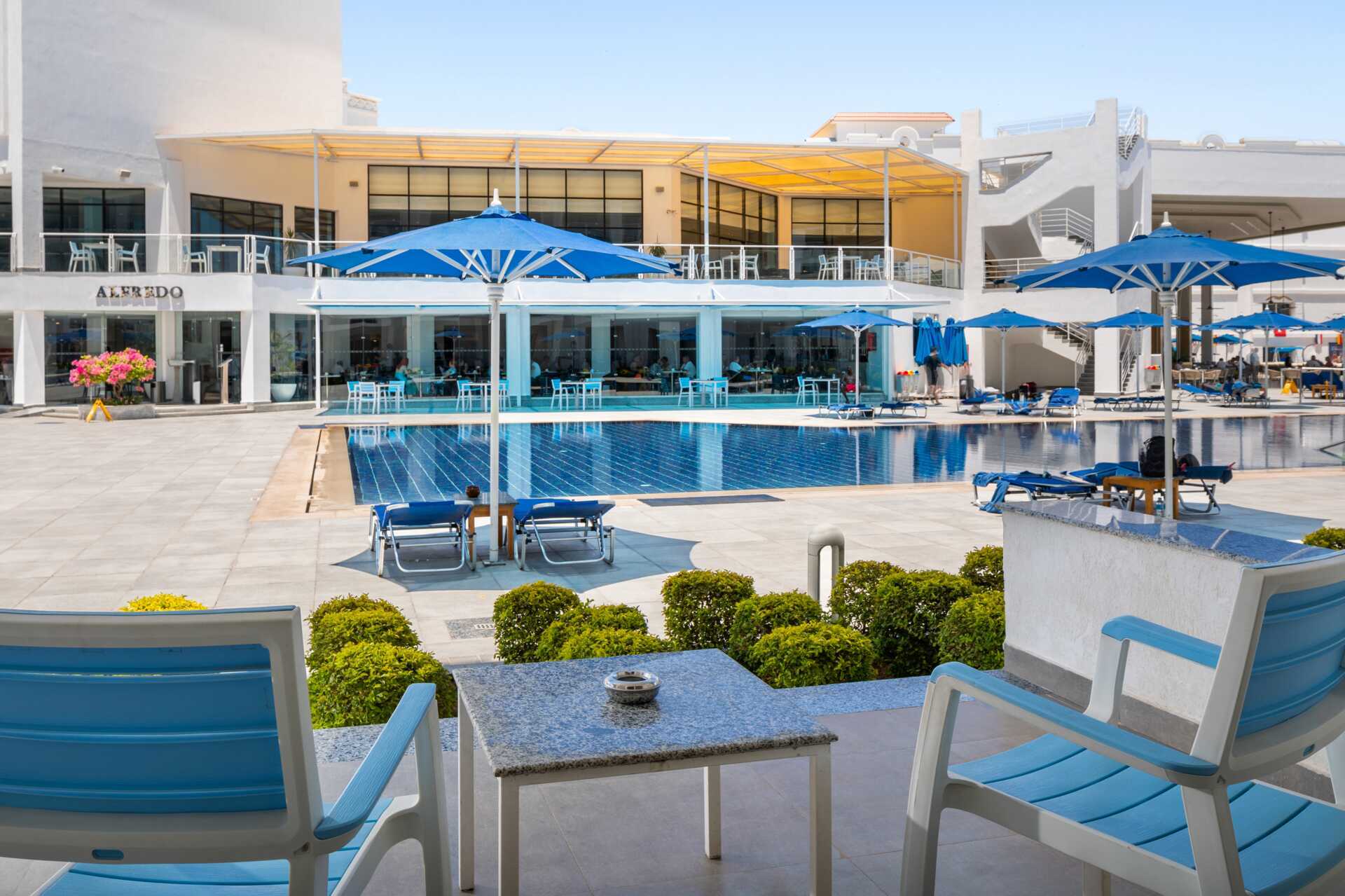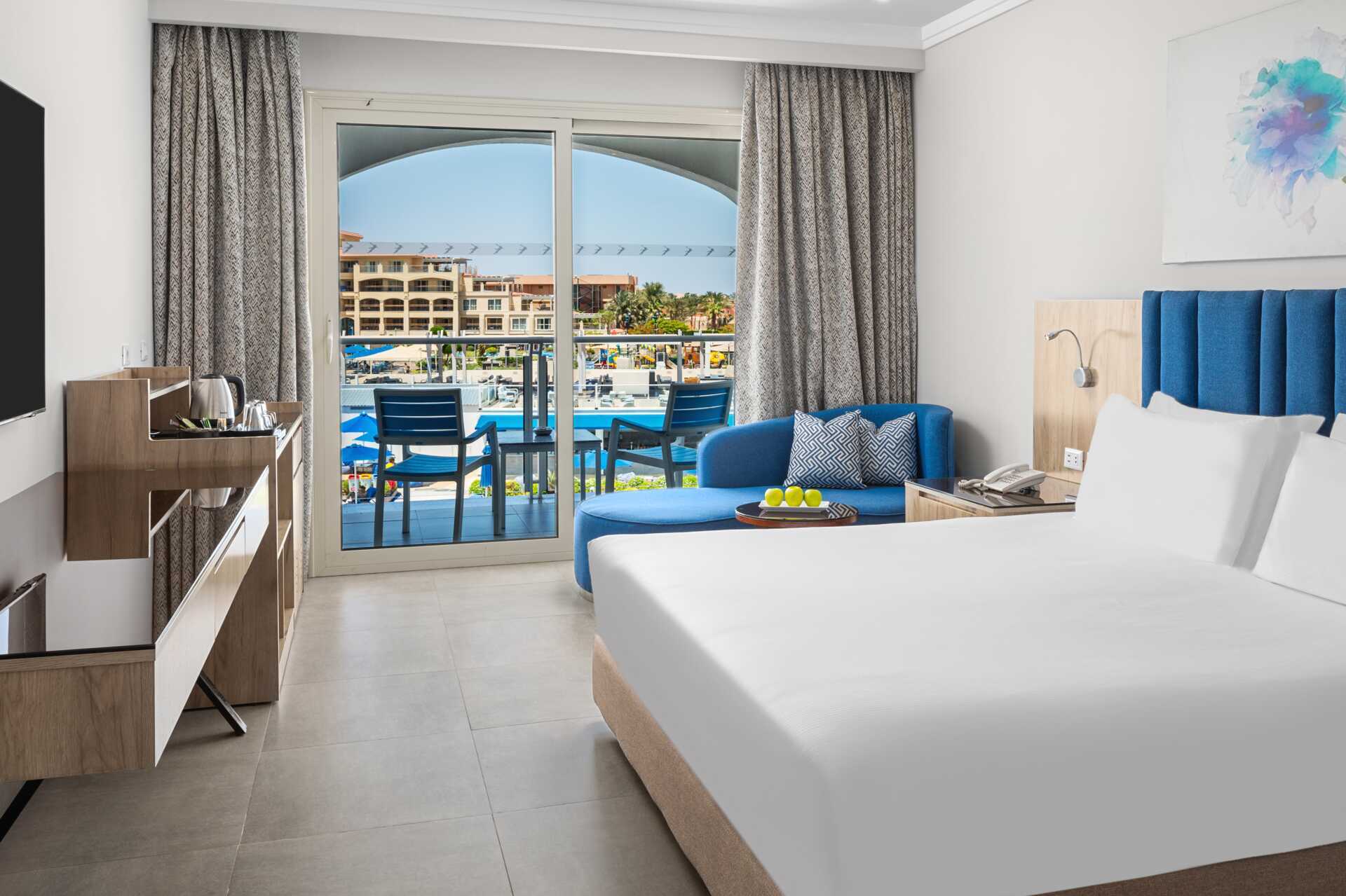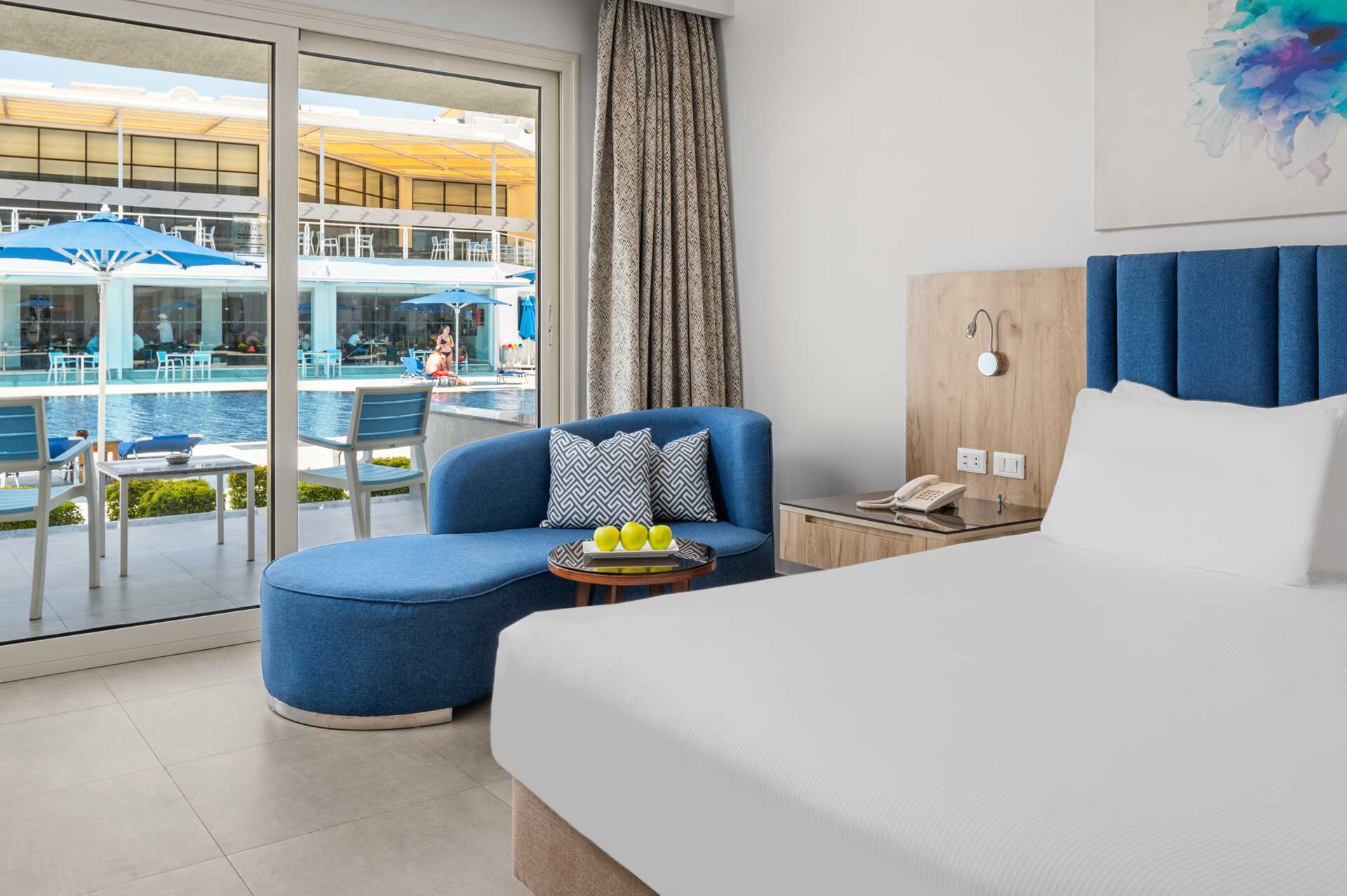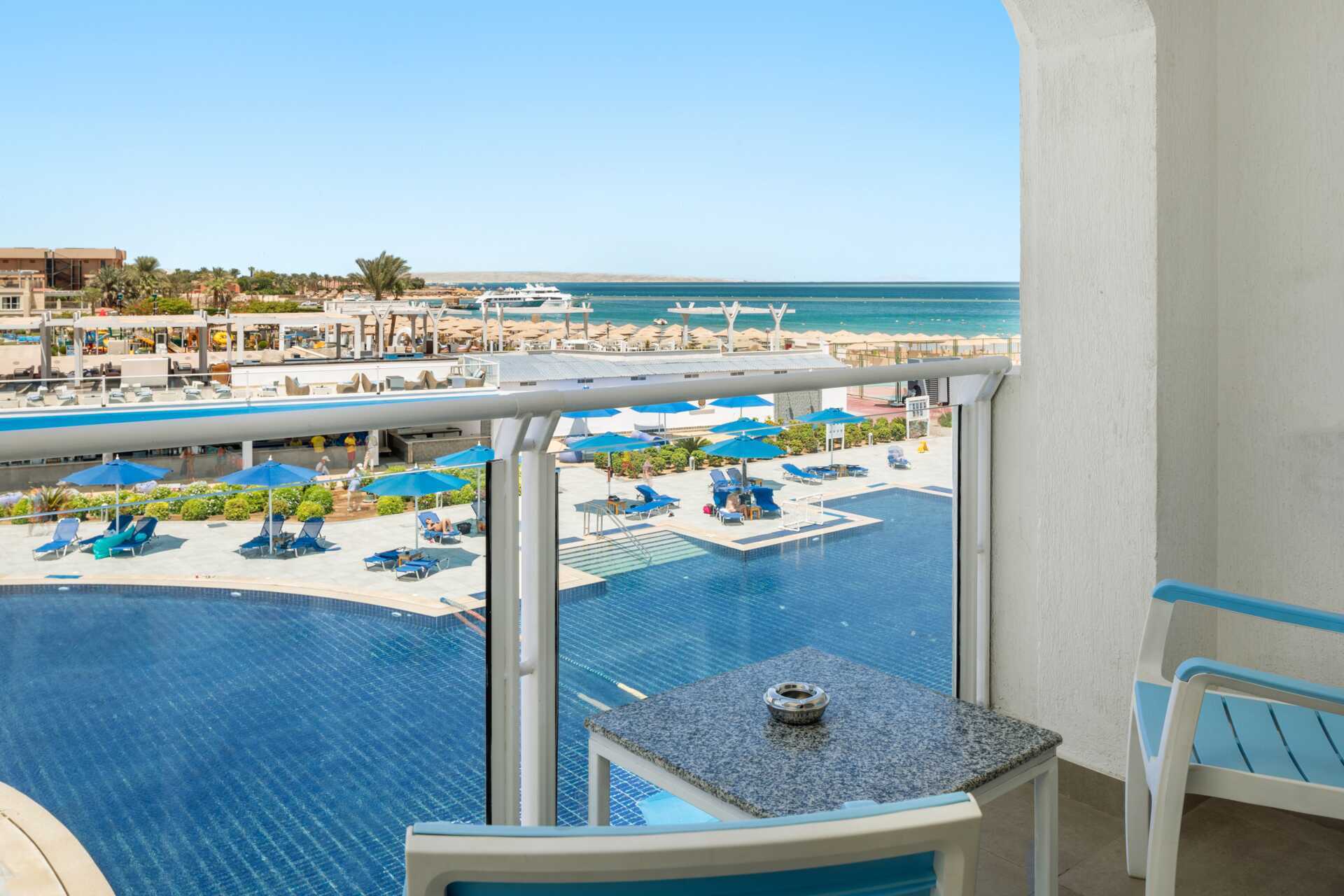 Deluxerum med balkong eller markterrass. Vissa balkonger har havsutsikt, begränsad havsutsikt eller poolutsikt. Markterrasserna har poolutsikt. Deluxerum finns på våningarna 1–3. Tre trappsteg från terrassen till poolområdet. En dubbelsäng eller två enkelsängar. Wifi, luftkonditionering och deponering ingår. Minibar med läsk och vatten ingår och fylls på varje dag. Vattenkokare samt kaffe och te. Hårtork. Badrockar och tofflor. Hårtork. Badrum med dusch och wc. Städning 7 ggr/vecka.