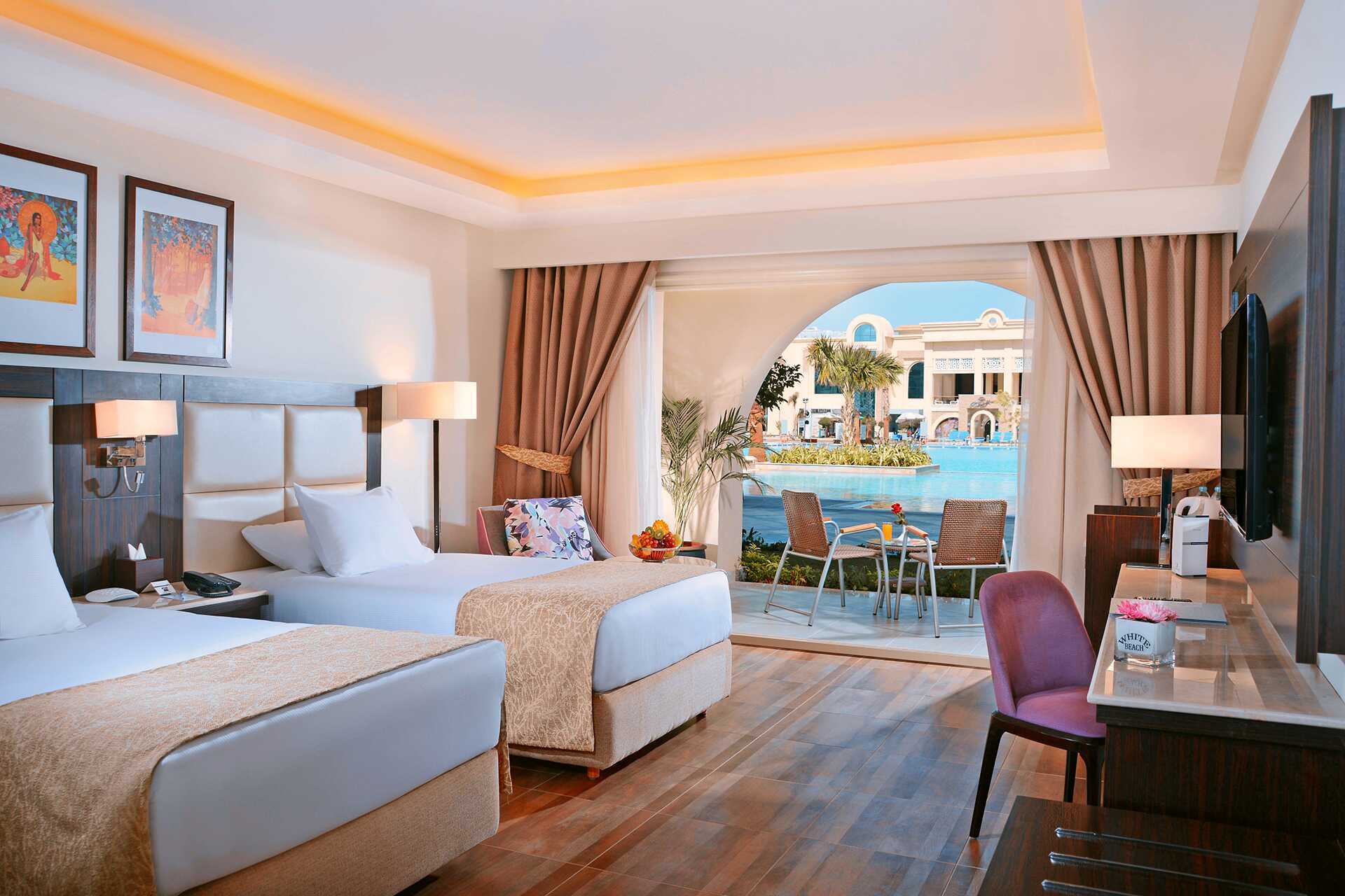 Pickalbatros White Beach Resort är ett omtyckt hotell med ett stort poolområde med flera pooler, varav fyra barnpooler och en liten vattenpark. Alla barnpooler samt en av de stora poolerna är uppvärmda vintertid till minst 22 grader. Pooltemperaturen kan sjunka några grader på morgnar, kvällar och vid dåligt väder. Både vid poolområdet och stranden finns solstolar, parasoller och poolhanddukar som ingår.