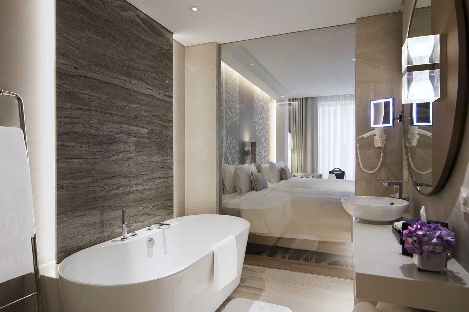 Dubbelrum, utan uteplats, vissa med utsikt mot vattnet/kanalen. En dubbelsäng eller två enkelsängar. Möjlighet till extrabädd i extrasäng. Wifi, luftkonditionering och deponering ingår. Minibar mot avgift. Vattenkokare samt kaffe och te. Tv med internationella kanaler. Strykjärn och strykbräda. Badrockar och tofflor. Hårtork. Badrum med badkar, separata dusch och separat wc. Städning 7 ggr/vecka.