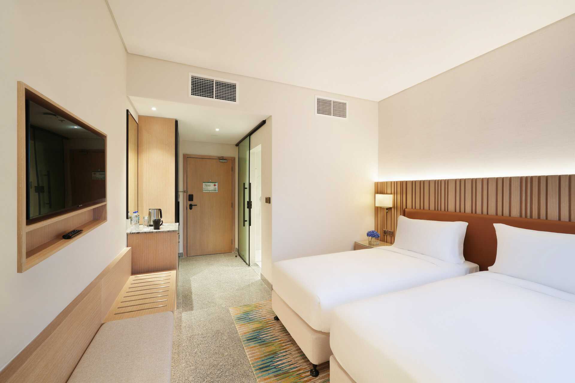 Dubbelrum, med eller utan balkong. Vissa rum utan balkong kan bokas med poolutsikt. En dubbelsäng eller två enkelsängar. Wifi, luftkonditionering och deponering ingår. Kylskåp. Vattenkokare samt kaffe och te. Tv med internationella kanaler. Strykjärn och strykbräda. Hårtork. Badrum med badkar eller dusch samt wc. Städning 7 ggr/vecka.