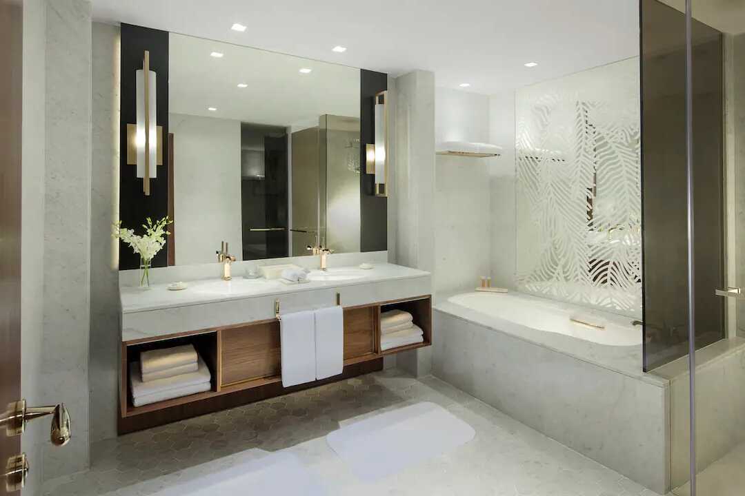 Clubrum, vissa med utsikt över Dubais skyline. Rummen har ingen uteplats. En dubbelsäng eller två enkelsängar. Möjlighet till extrabäddar i bäddsoffa. Wifi, luftkonditionering och deponering ingår. Heltäckningsmatta. Minibar. Kaffemaskin. Tv med internationella kanaler. Hårtork. Badrum med badkar och separat dusch samt wc. Städning 7 ggr/vecka. Barn under två år räknas in i maxantalet personer i rummet.