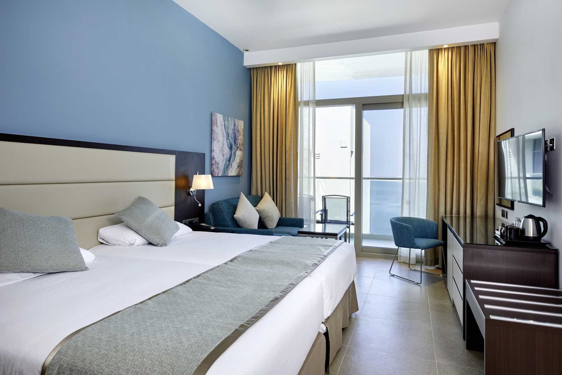 Dubbelrum med balkong, vissa med havsutsikt eller begränsad havsutsikt. En dubbelsäng eller två enkelsängar. Möjlighet till extrabädd i bäddsoffa eller ihopfällbar säng. Wifi, luftkonditionering och deponering ingår Takfläkt. Vattenkokare. Tv med internationella kanaler. Hårtork. Badrum med badkar eller dusch samt wc. Städning 7 ggr/vecka.