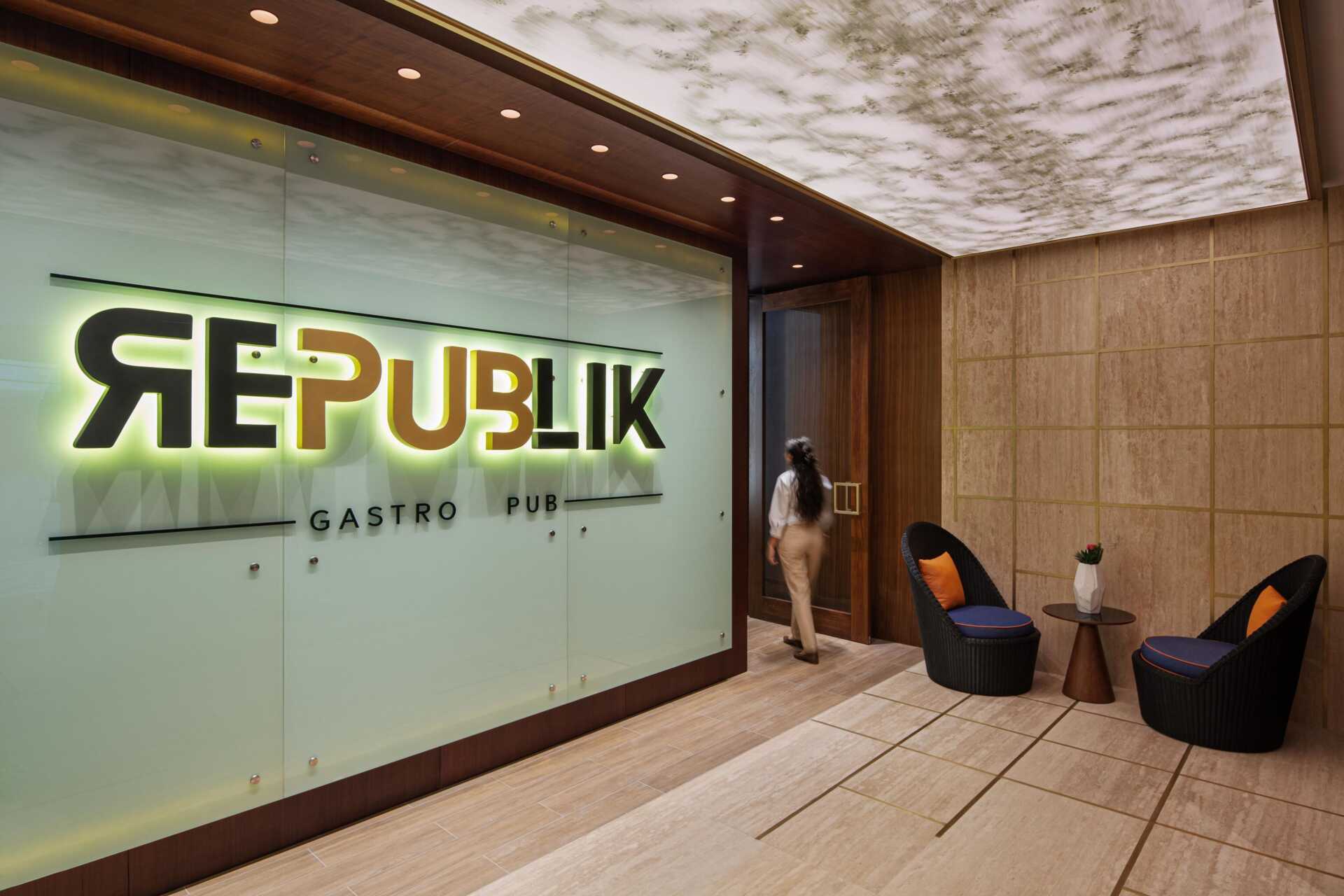 Hotell JA Beach utgör tillsammans med hotell JA Palm Tree Court och JA Lake View anläggningen JA The Resort. Hotellen delar vissa faciliteter och restauranger, medan andra faciliteter bara kan nyttjas av boende på respektive hotell. På Palm Tree Court finns bland annat en restaurang med japanskt Teppanyakibord där man äter med utsikt över stranden - ingår inte i hotellets All Inclusive-program.