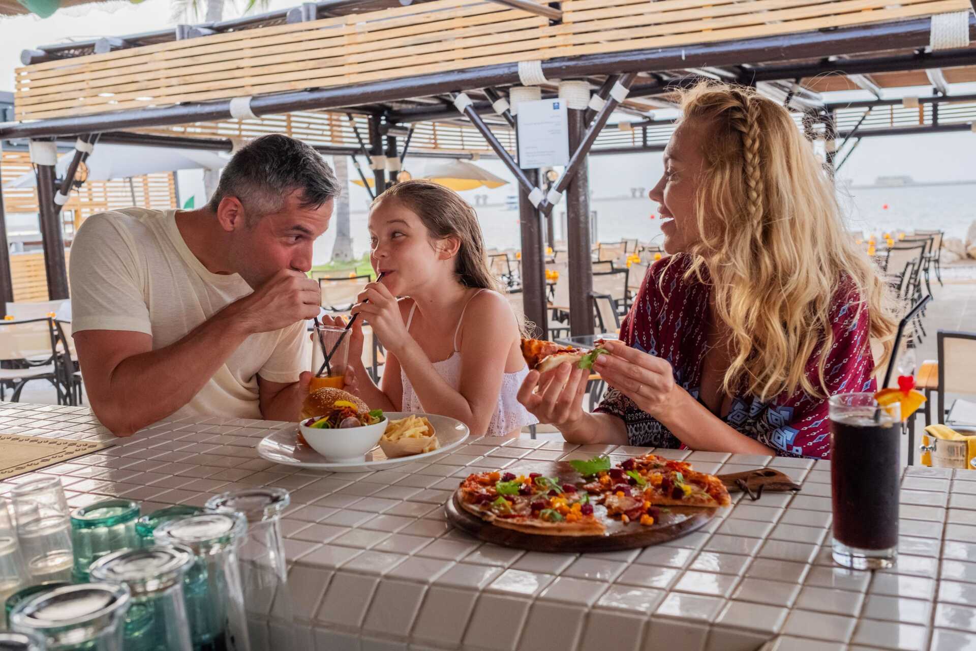 På JA Beach finns något för alla smaklökar! Bufférestaurangen Ibn Majed serverar frukost och middag och Sports café med fin utsikt över marinan erbjuder lunch. Bland á la carte-restaurangerna hittar du bland annat Taperia med spanska specialiteter, Captain's med lite enklare rätter som pizza, indiska restaurangen Kinara med en kryddmarknad där du får lära dig mer om kryddornas välgörande egenskaper, den italienska restaurangen Sette med en gedigen vinlista och med en 360-graders utsikt över resorten och den asiatisk restaurangen White Orchid med specialiteter från hela regionen. Den italienska à la carte-restaurnagen Sette har en åldersgräns på 12 år efter kl. 21.00. Bordsreservation krävs på flertalet av restaurangerna. På resorten finns även flera barer och lounger.