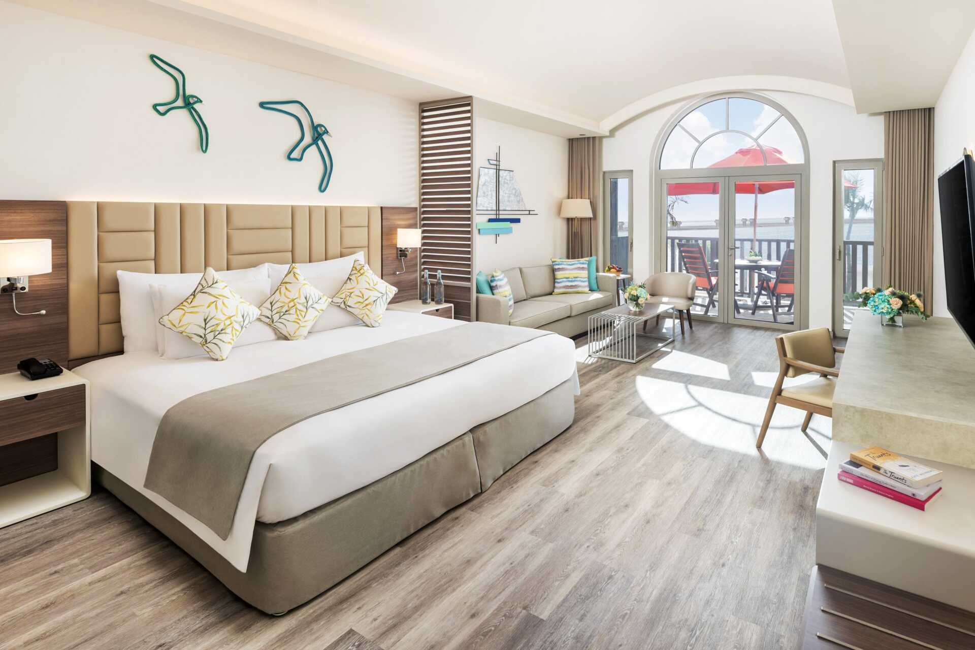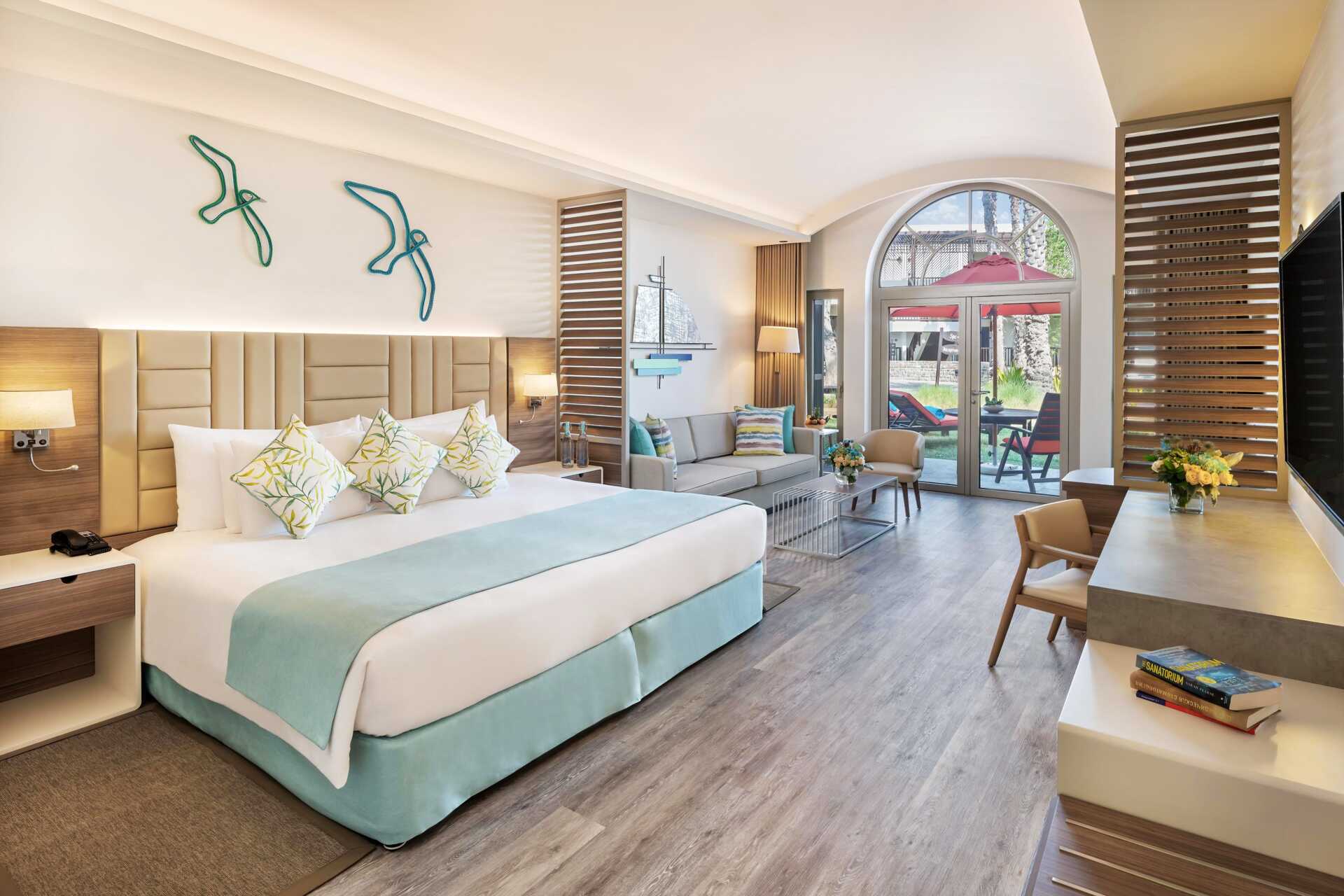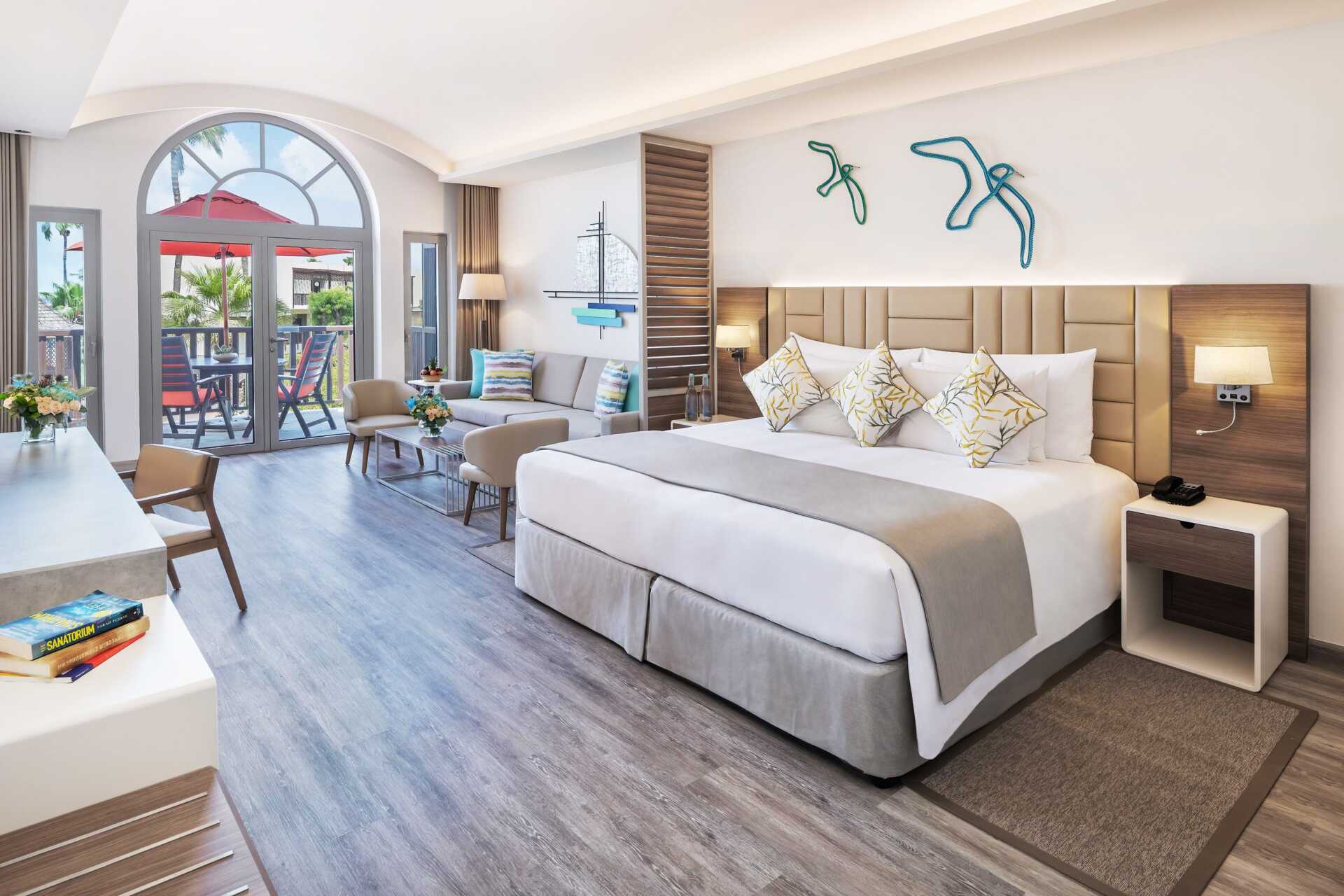 Juniorsvit premium med balkong och havsutsikt eller markterrass. En dubbelsäng eller två enkelsängar. Möjlighet till extrabädd i bäddsoffa. Wifi, lufkonditionering och deponering ingår. Minibar. Vattenkokare samt kaffe och te. Tv med internationella kanaler. Badrum med badkar och wc. Städning 7 ggr/vecka.