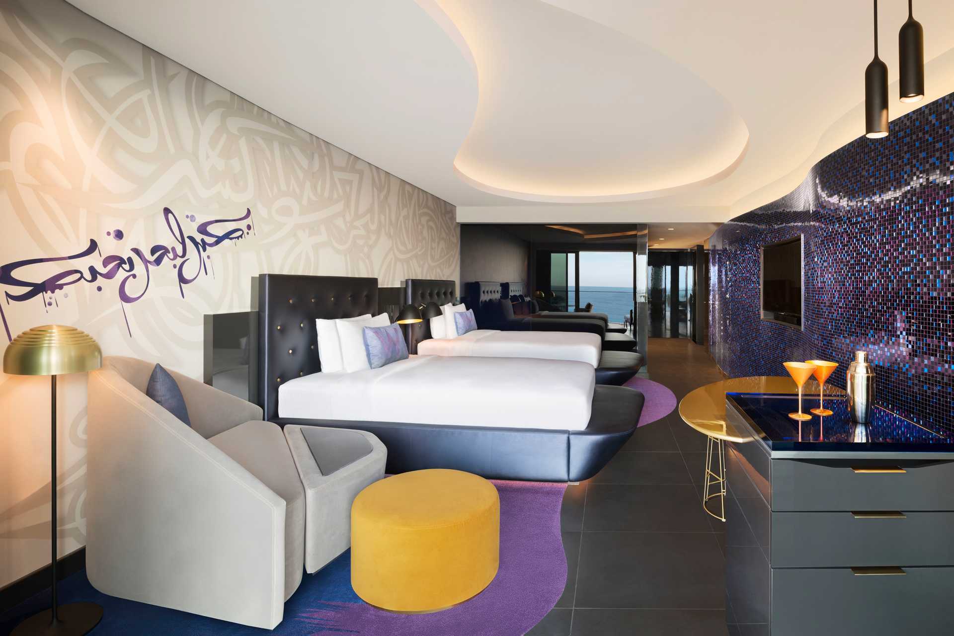 Svit med balkong och havsutsikt. På balkongen finns en dagbädd samt bord och stolar. Sviten består av ett sovrum och ett vardagsrum. En stor dubbelsäng eller två mindre dubbelsängar samt ett badkar i sovrummet. Möjlighet till extrabädd i bäddsoffa i vardagsrummet. Luftkonditionering, wifi och deponeringingår. Minibar där vatten ingår. Kaffebryggare. Tv med internationella kanaler. iPod-docka. Strykbräda och strykjärn. Badrockar och tofflor. Hårtork. Badrumsartiklar från Davines & Skin Regiment. Badrum med dusch och wc. Städning 7 ggr/vecka. Hotellet kallar dessa rum för W Suite.