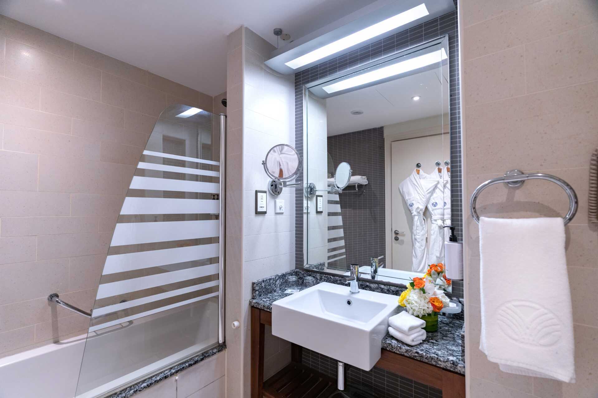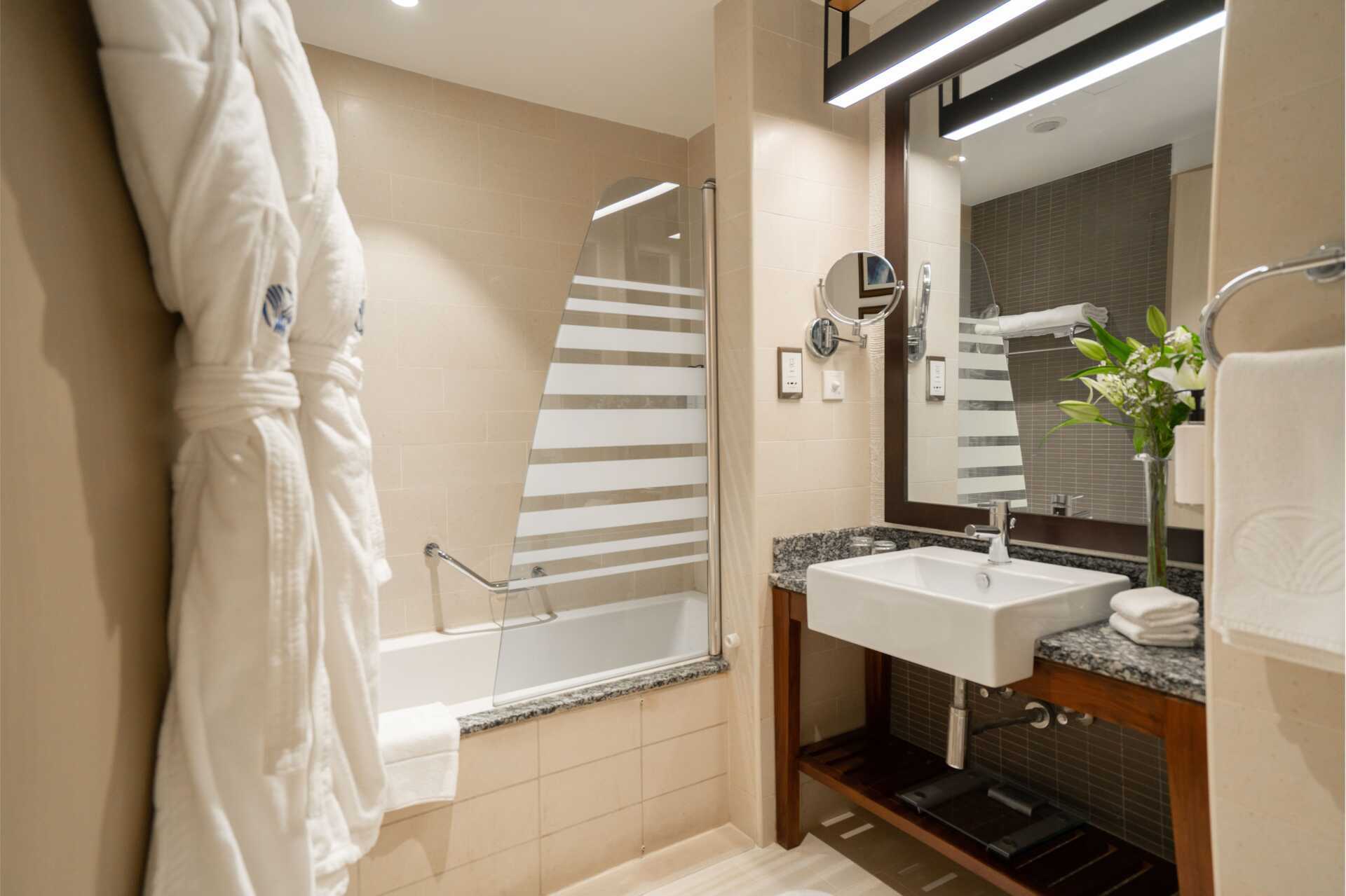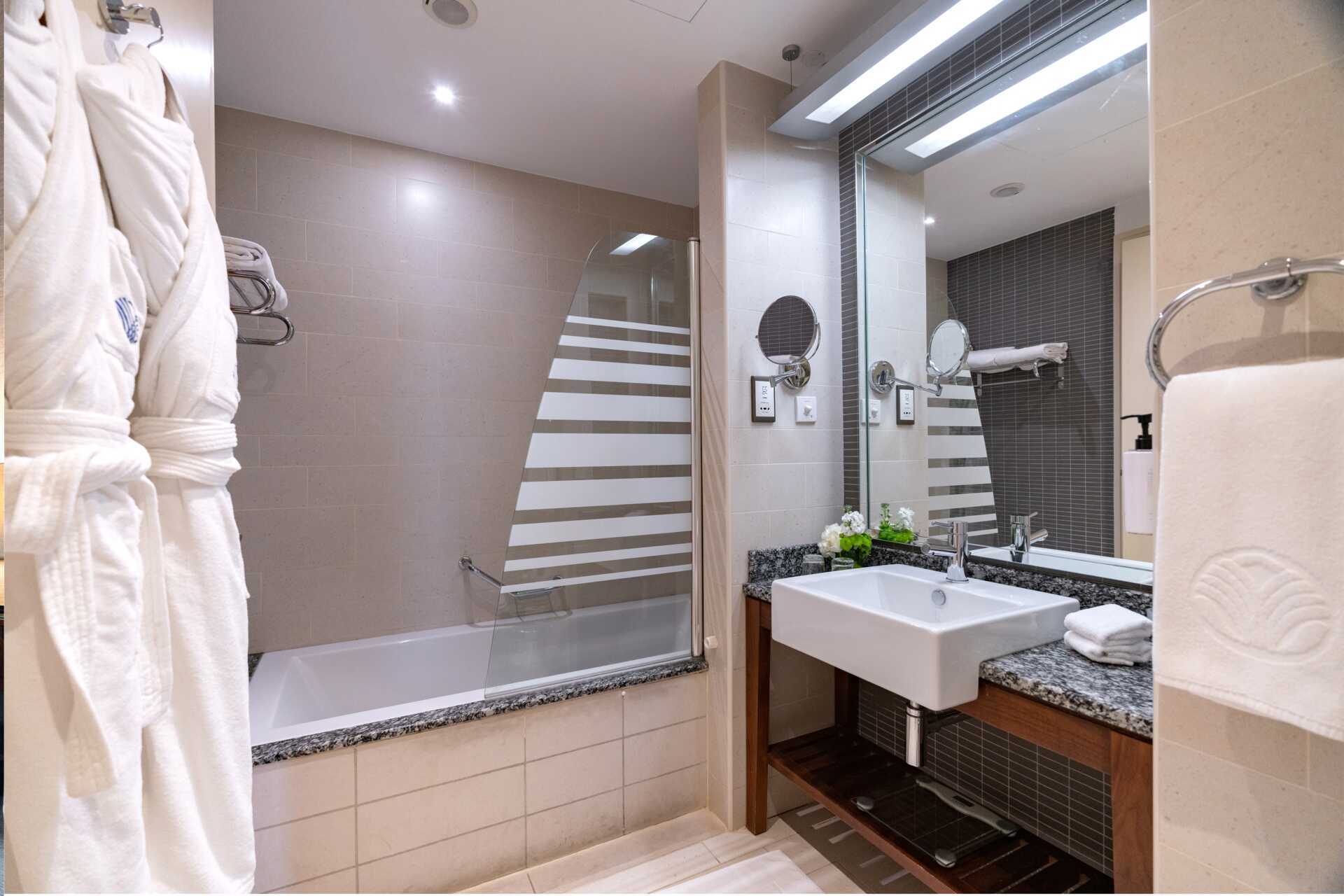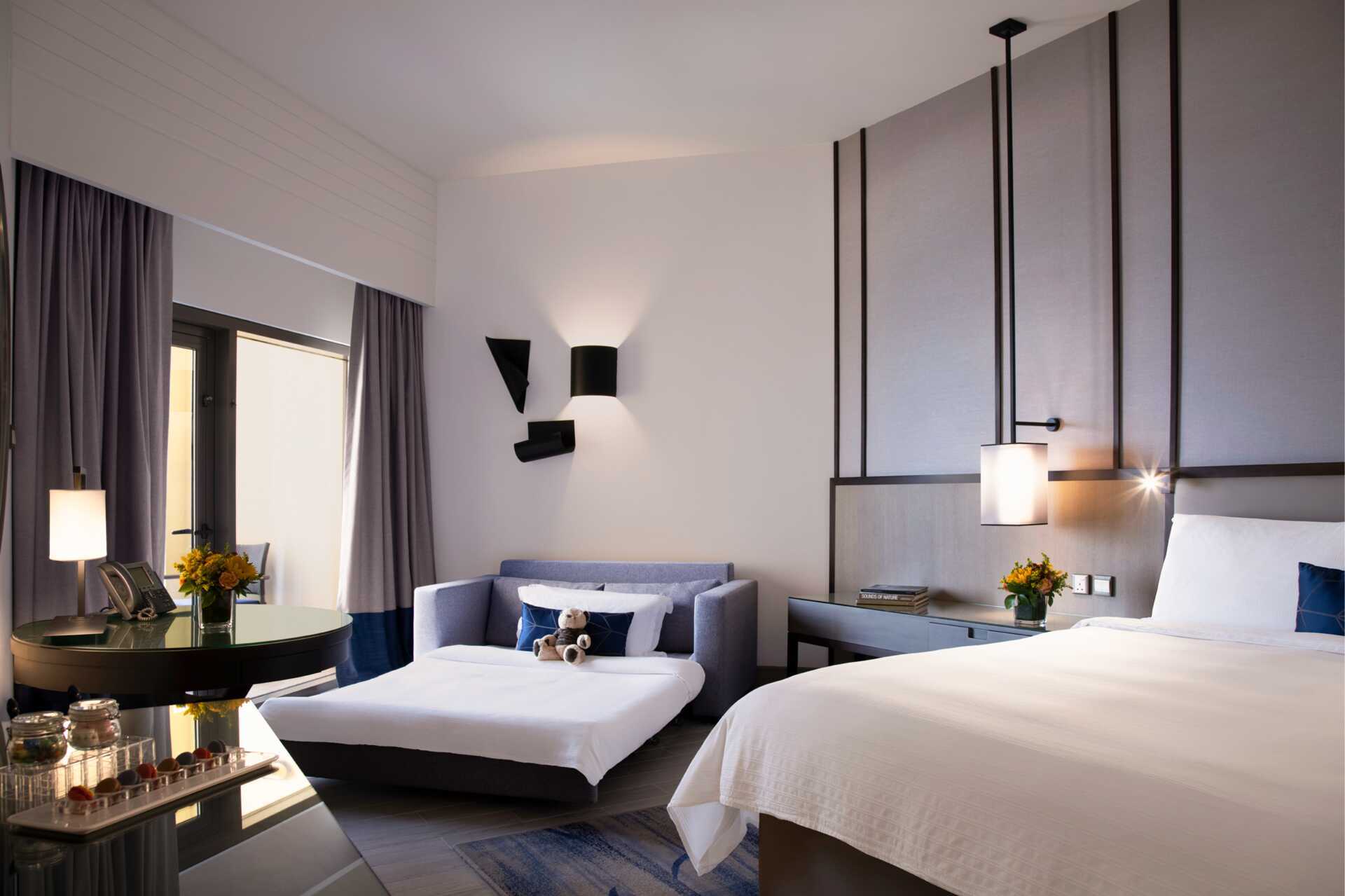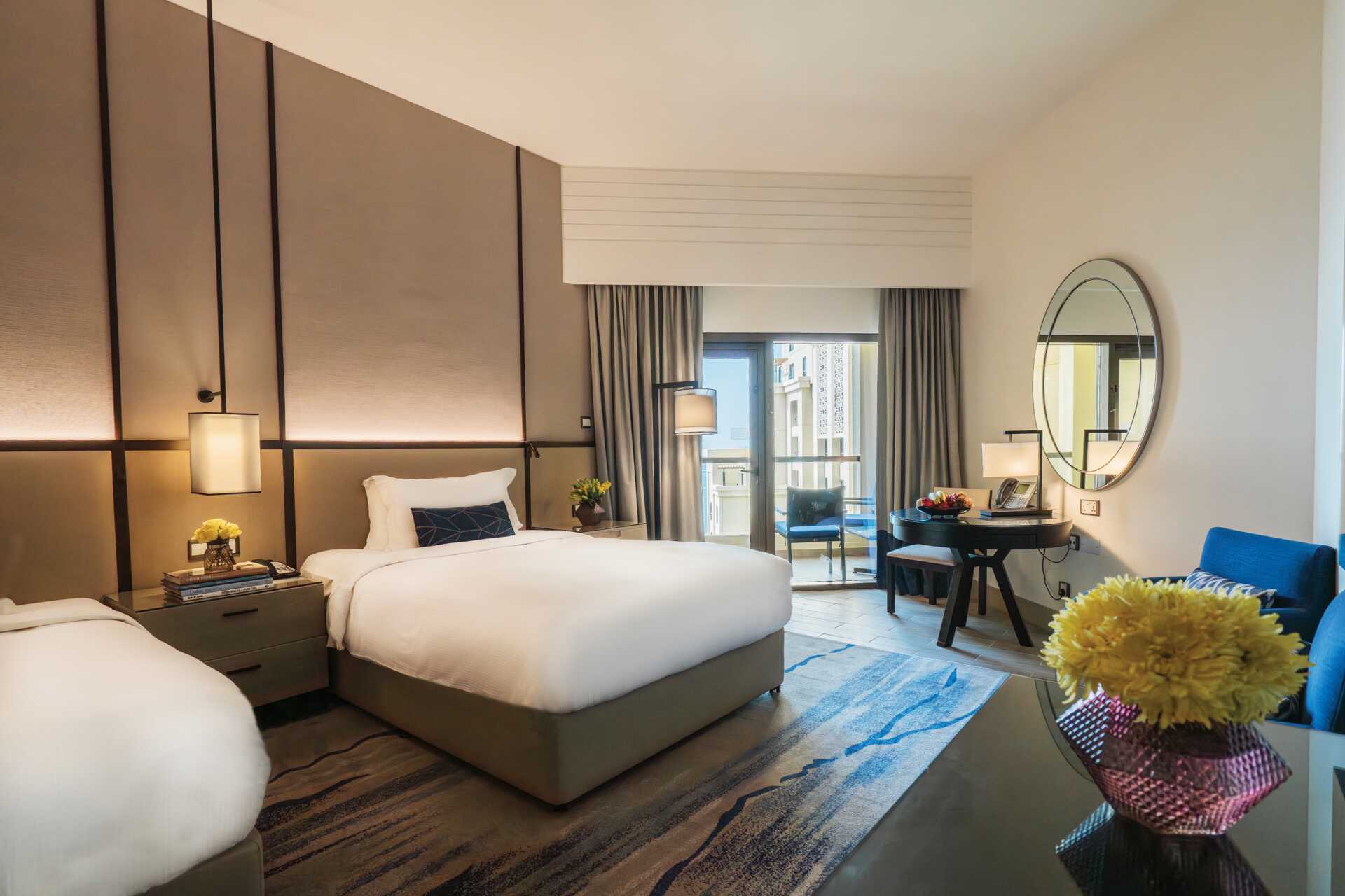 Deluxerum med balkong och utsikt över Ain Dubai. En dubbelsäng eller två enkelsängar. Möjlighet till extrabädd i enkelsäng. Wifi, luftkonditionering och deponering ingår. Minibar. Vattenkokare samt kaffe och te. Badrock. Hårtork. Badrum med badkar eller dusch och wc. Städning 7 ggr/vecka. Barn under två år in i max antal personer i rummet.