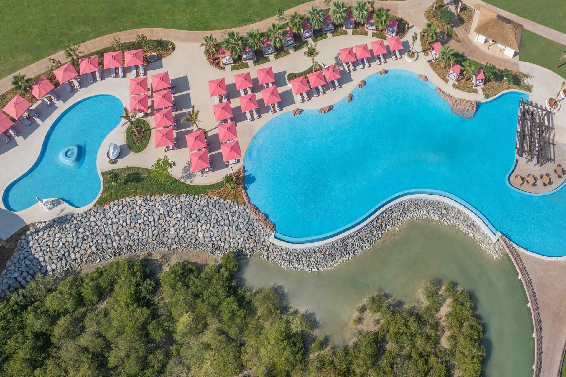 Anantara Mina Ras Al Khaimah Resort har ett stort och inbjudande poolområde med en pool och en barnpool. Med utsikt mot stranden finns en pool bara för vuxna. Härlig sandstrand för alla hotellgäster, men det finns också en separat del för specifika rum. Stranden är öppen för allmänheten, som kan köpa dagpass. Solstolar och parasoller ingår vid poolerna och på stranden. Extra bekväma balisängar finns också, mot avgift. Pool- och strandhanddukar finns att låna.