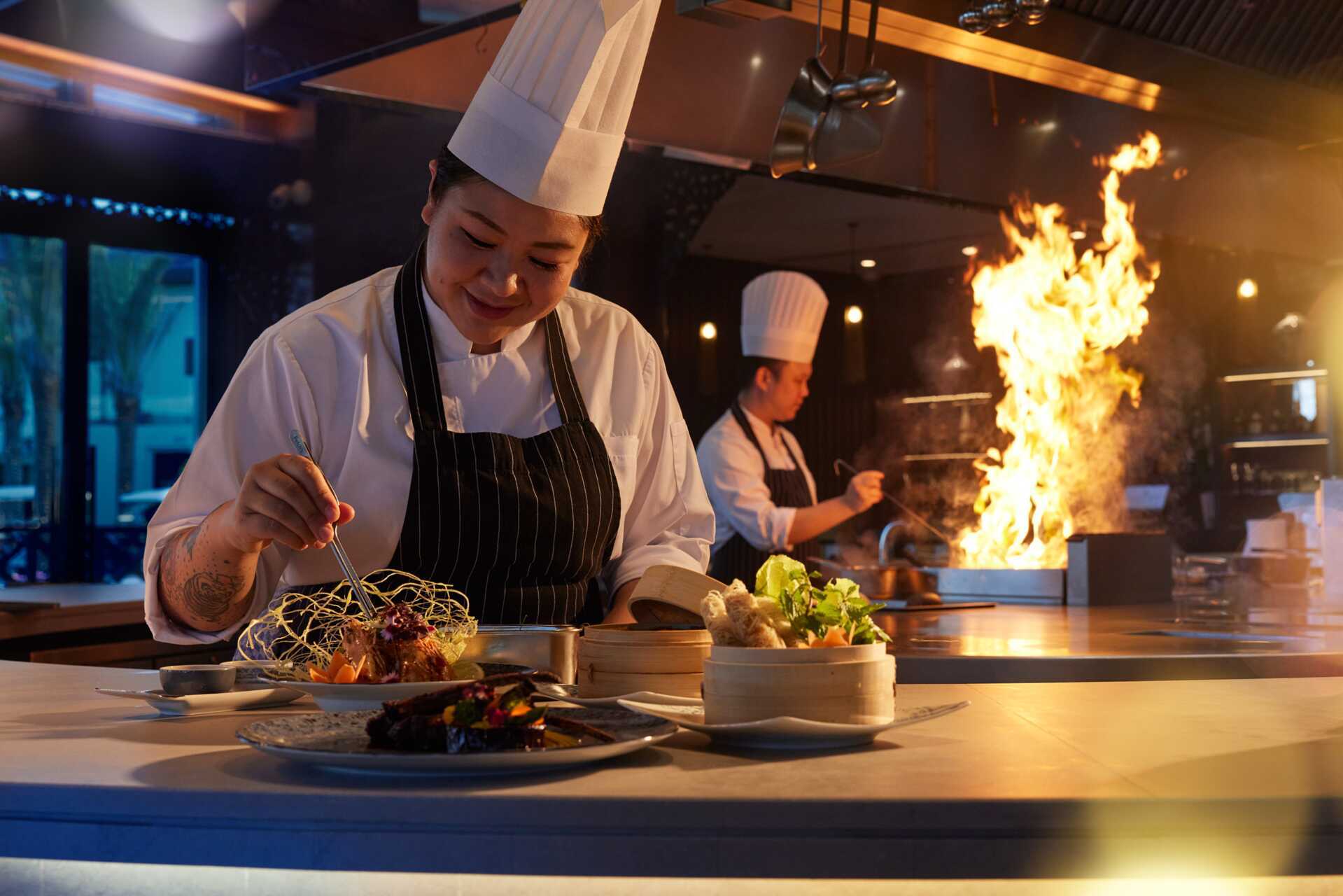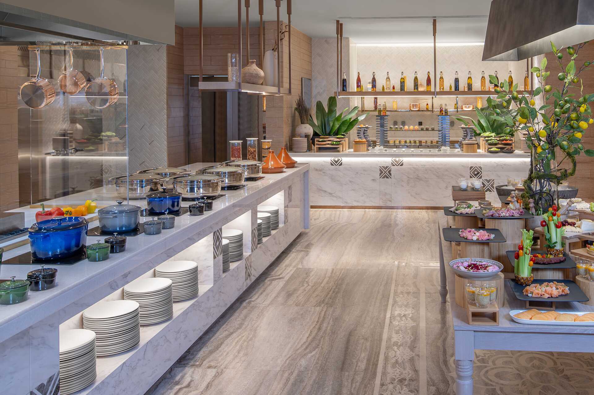 Beach House ligger nere vid stranden och där kan du ta en paus från solen, något lättare att äta till lunch, något gott i glaset eller kanske äta en god middag på kvällen till en DJ:s sköna musikval. På restaurang Mekong kan du upptäcka nya smaker från de kinesiska, vietnamesiska och thailändska köken – öppet för middag och på söndagar serverar de en härlig brunch. Restaurangen Sea Breeze dukar upp sina bufféer till frukost, lunch och middag.
