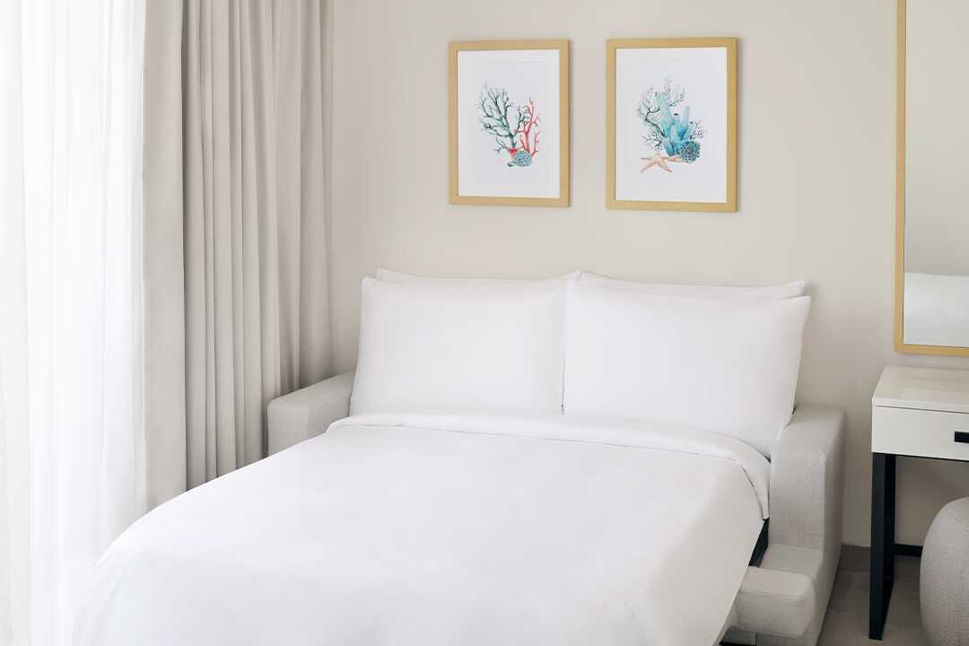 Familjerum med balkong. Familjerummet består av ett sovrum och ett vardagsrum. En dubbelsäng. Möjlighet till extrabäddar i bäddsoffa. Wifi, luftkonditionering och deponering ingår. Minibar mot avgift. Vattenkokare samt kaffe och te. Tv med internationella kanaler. Badrockar och tofflor. Hårtork. Badrum med dusch och wc. Städning 7 ggr/vecka.