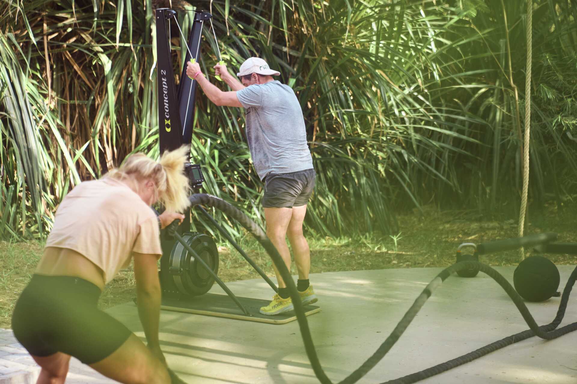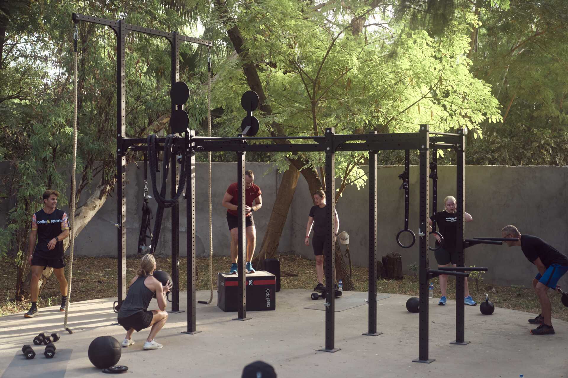 Vår WOD-box (outdoor gym) är placerad i en grönskande miljö och utrustad för styrke-, smidighets- och uthållighetsträning samt gymnastikfärdigheter. Här kombinerar vi styrka och uthållighetsträning under vajande palmer och klarblå himmel.