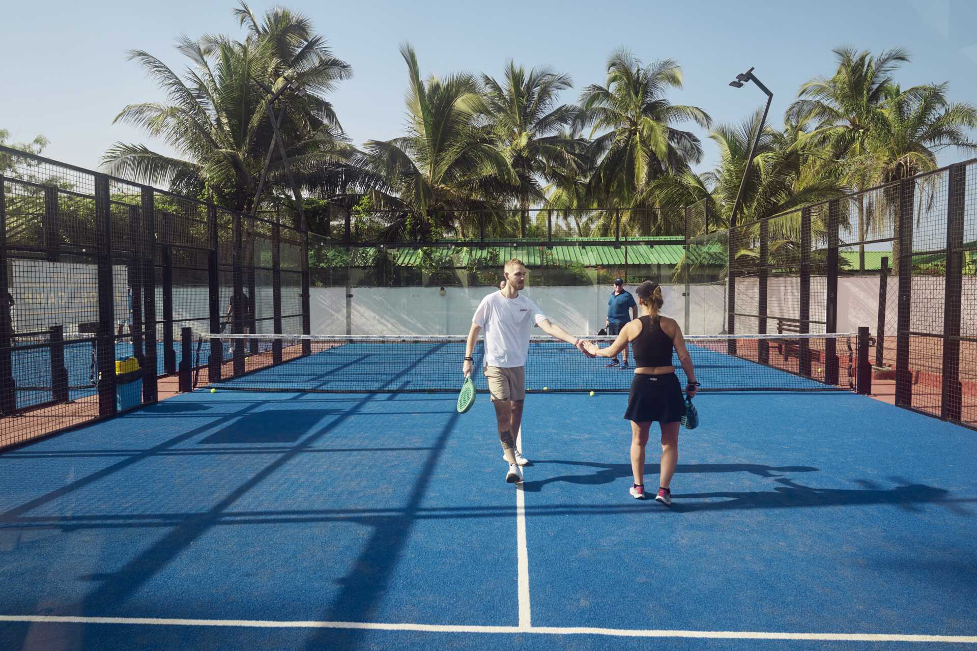 Spela padel på nybyggda banor i en exotisk miljö. Den populära racketsporten padel tar världen med storm, och på Kombo Beach erbjuder vi tre nybyggda banor. Våra panoramabanor är designade utan strukturella rör i glasområdet, vilket ger en perfekt vy över spelet från åskådarplats. Med palmer som bakgrund och nära till stranden kan du njuta av denna populära sport i en unik, tropisk atmosfär. Banhyra och utrustning finns tillgängliga. Antal banor: 3 banor (LED-belysta för kvällsspel).