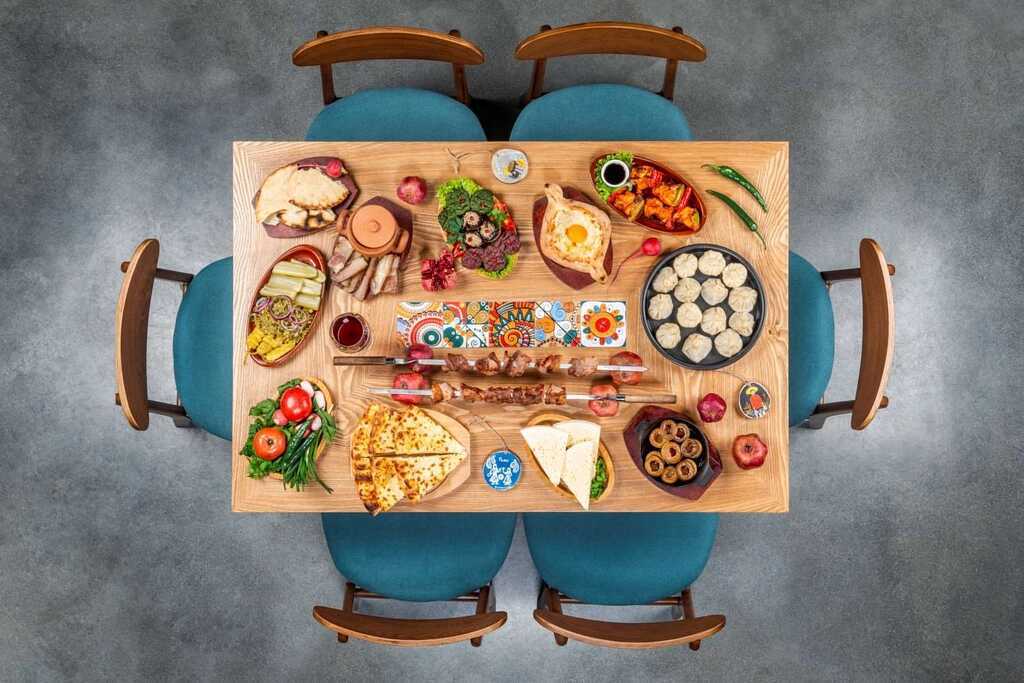 Restaurangen The Paski öppnar upp redan klockan åtta för en stadig frukost. Under dagen och fram till sen kväll serveras sedan autentisk och varierad georgisk mat från en à la carte-meny där smakerna bara överträffas av den spektakulära utsikten från restaurangen. Det finns också en bar på hotellet, som till och med erbjuder service vid utomhusjacuzzin där du kan få en stunds välbehövlig återhämtning efter en dag i backarna.