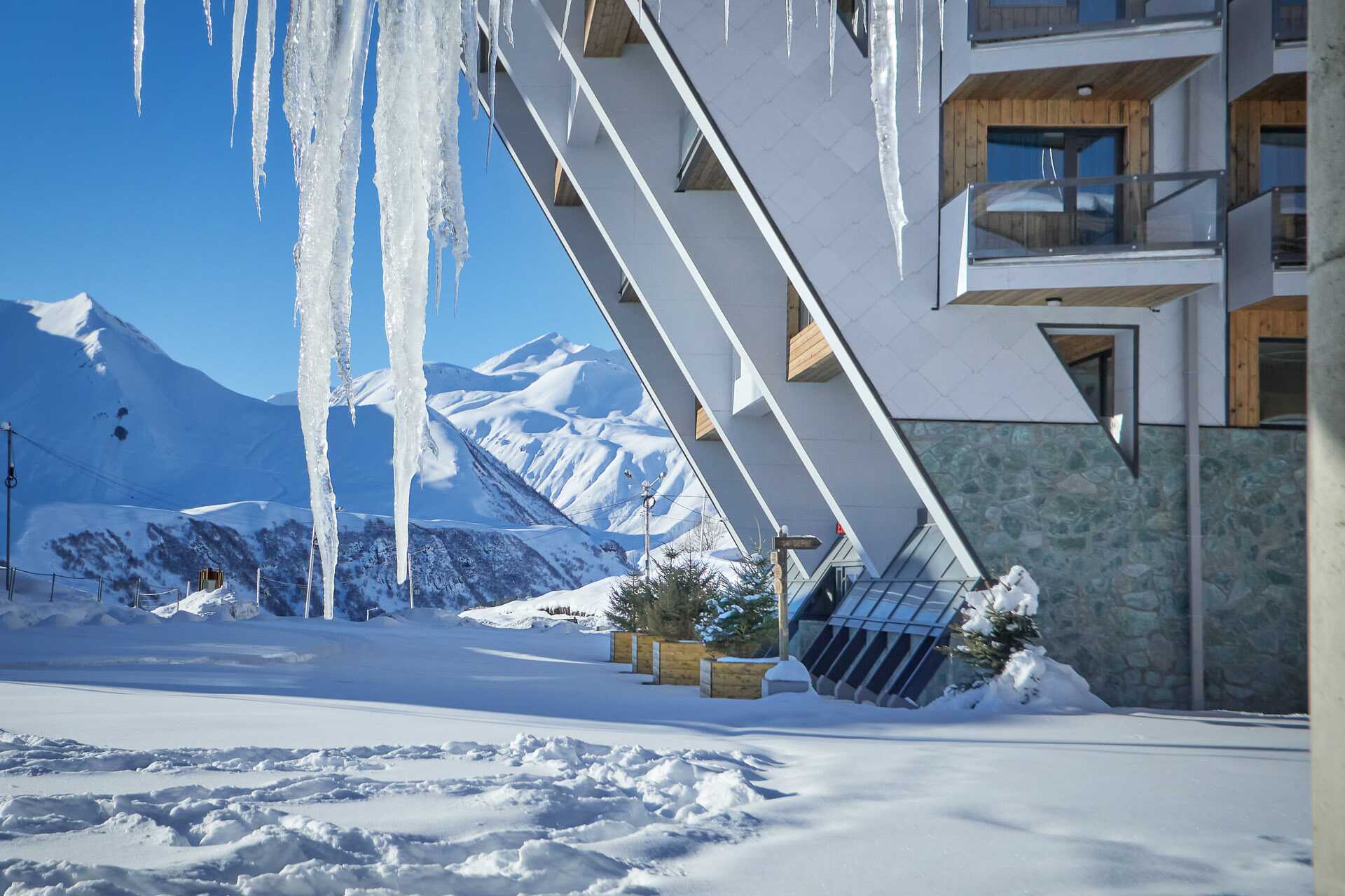 E’ un residence dove, volendo, puoi comprare un appartamento (sono in vendita) o passarci qualche notte. Struttura nuova, molto bella, appartamenti moderni con cucina, molto ben arredato e di gusto. Prezzo neanche alto in rapporto alla qualità. Ottima base di partenza per visitare il Kazbegi. A sensazione il migliore in zona. Sicuramente e sinceramente da consigliare.