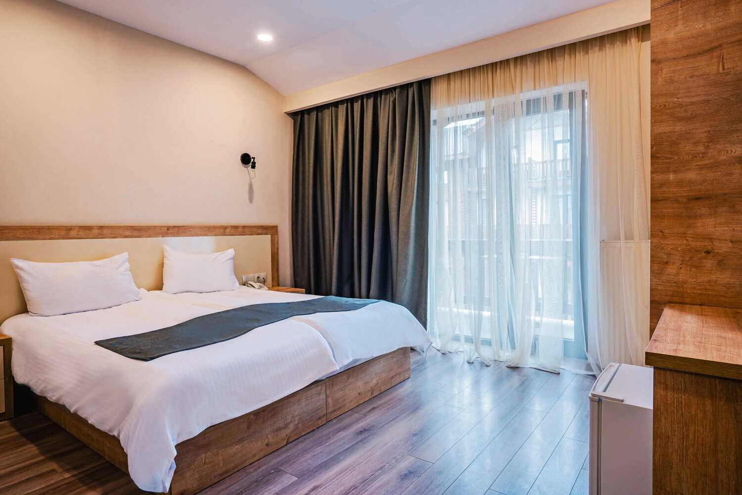 Dubbelrum, utan uteplats. En dubbelsäng eller två enkelsängar. Wifi,deponering och luftkonditionering för värme ingår. Vattenkokare samt kaffe och te. Tv med internationella kanaler. Badrock och tofflor. Hårtork. Badrum med dusch och wc. Städning 6 ggr/vecka.