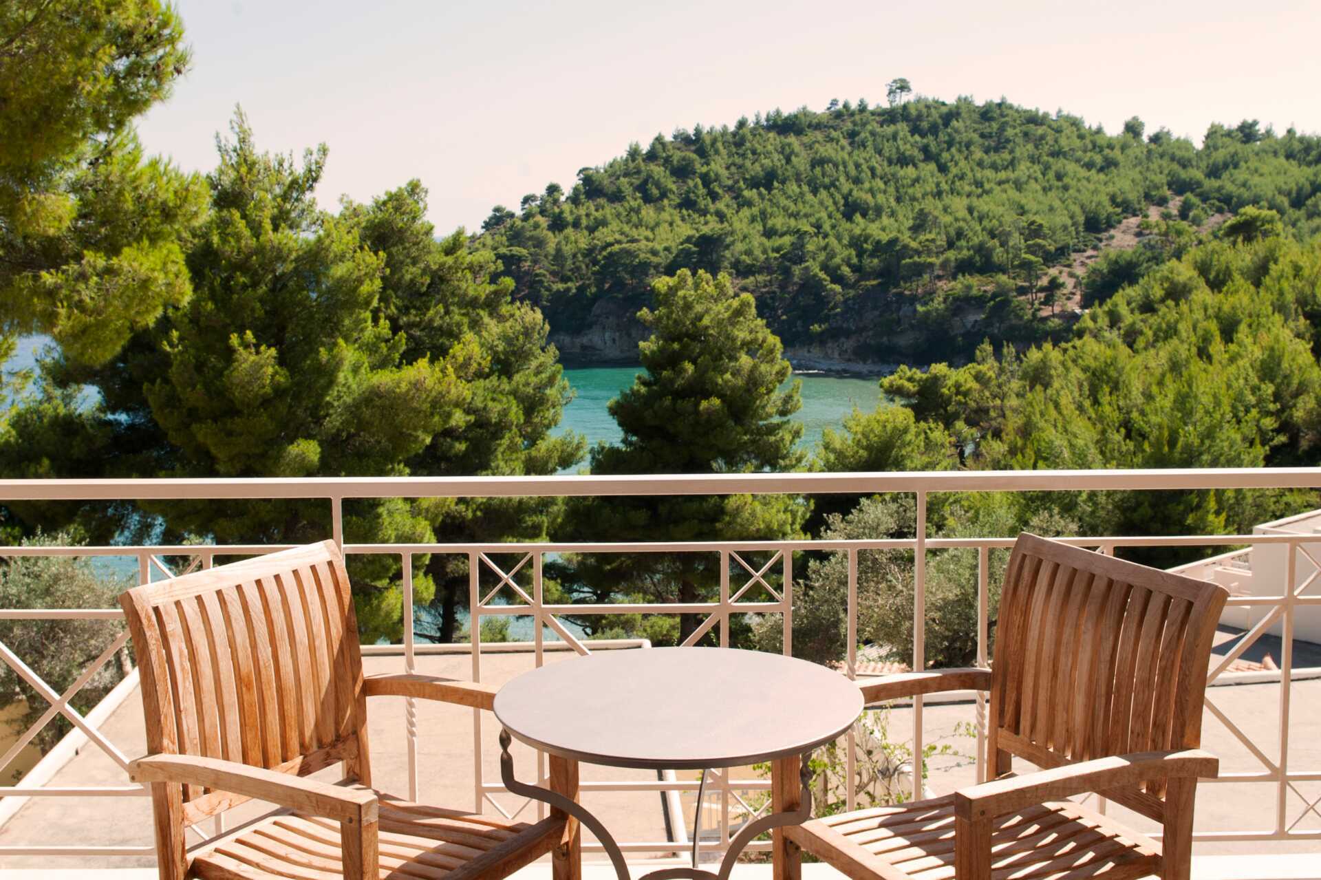 Poolområde med solstolar och parasoller. Poolbar. På stranden precis nedanför hotellet finns solstolar och parasoller att låna utan extra kostnad, samt en beach bar i skuggan av pinjeträden. Stranden Chrissi Milia är en av få sandstränder på Alonissos, med gyllene sand och turkost vatten. Chrissi betyder just gyllene på grekiska.