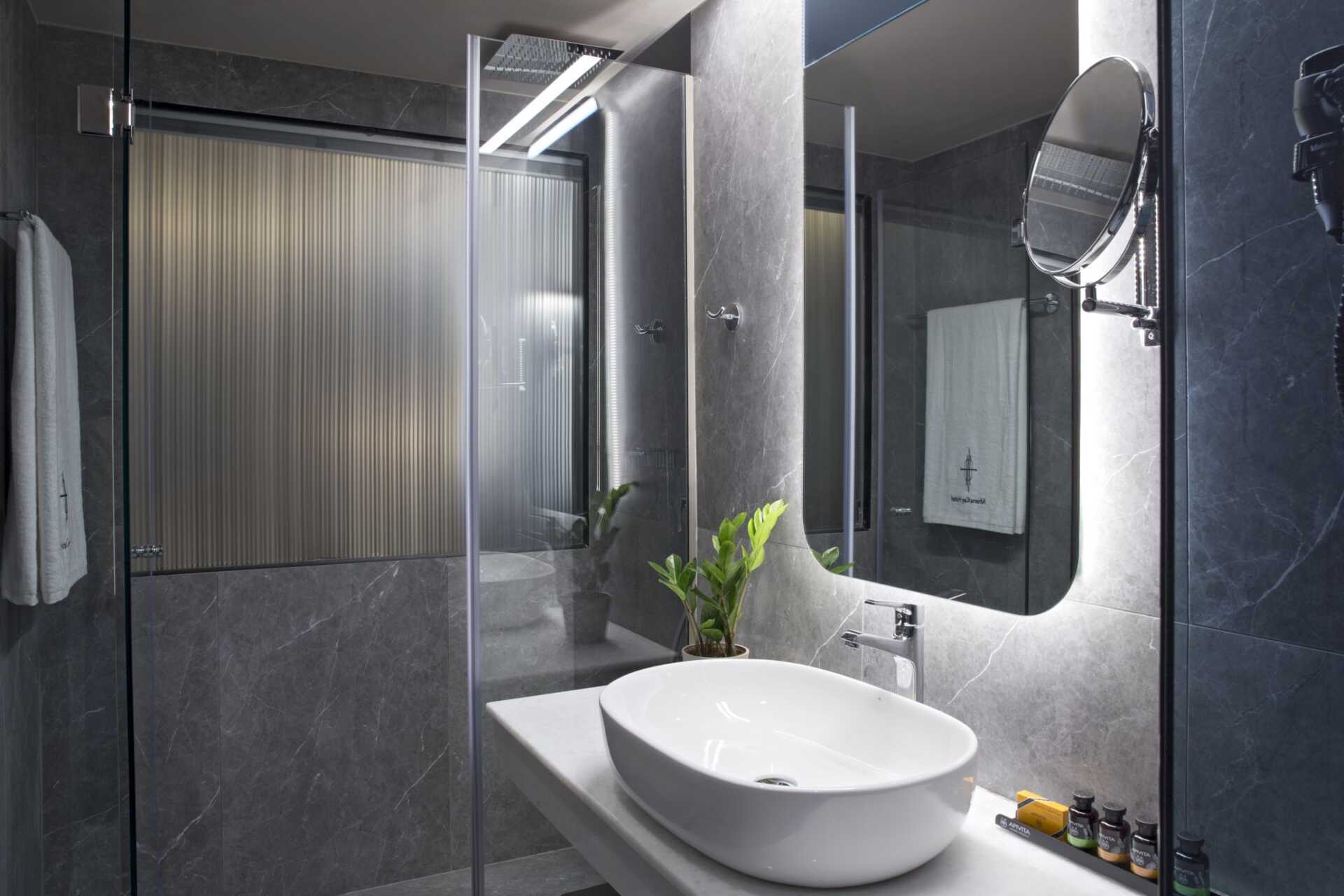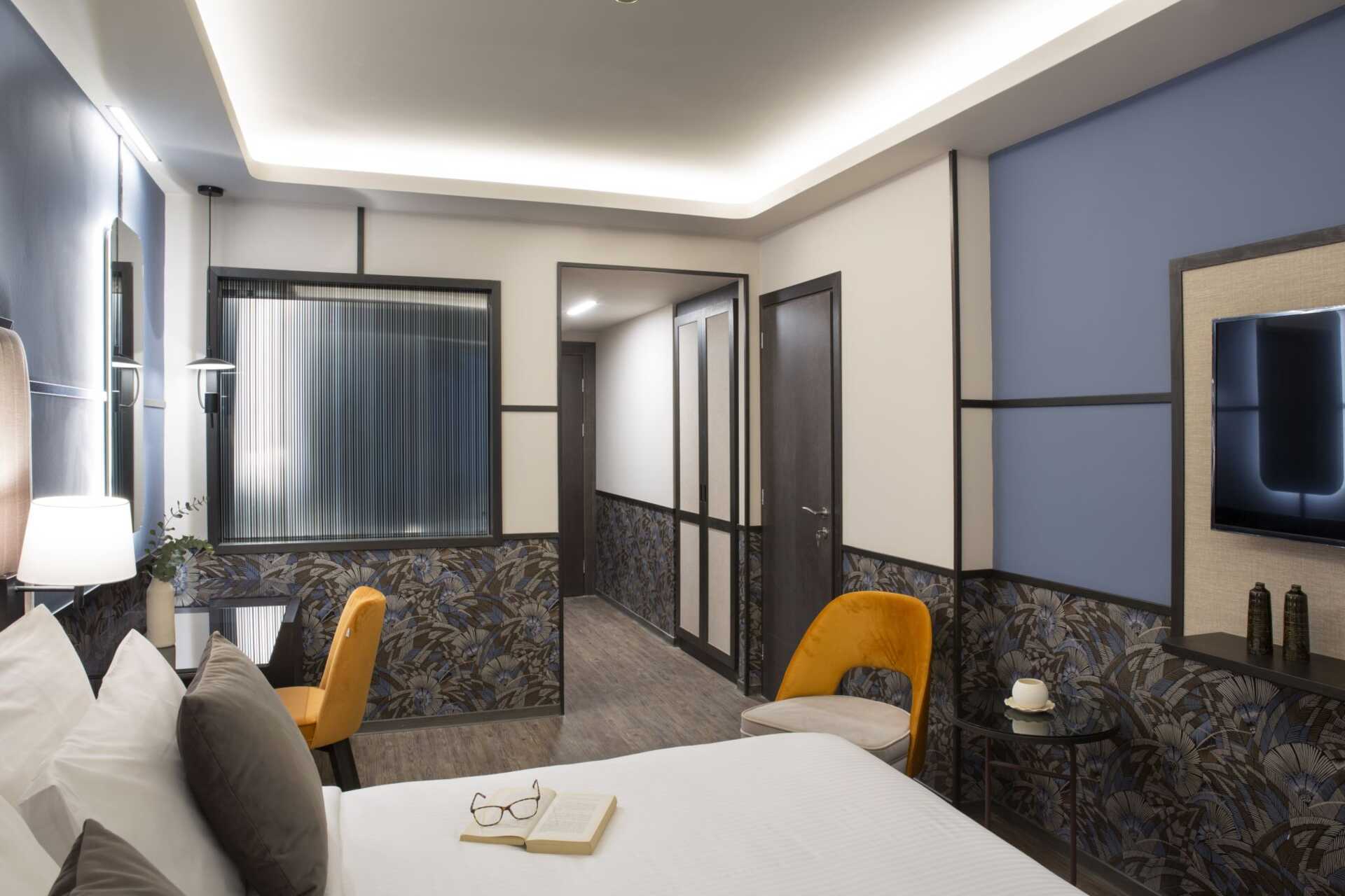 Executiverum, utan uteplats. En dubbelsäng eller två enkelsängar. Wifi, luftkonditionering och deponering ingår. Kylskåp. Vattenkokare samt kaffe och te. Espresso kaffemaskin. Tv med internationella kanaler. Strykjärn och strykbräda. Hårtork. Badrum med dusch och wc. Städning 7 ggr/vecka. Barn under två år räknas in i maxantalet personer i rummet.