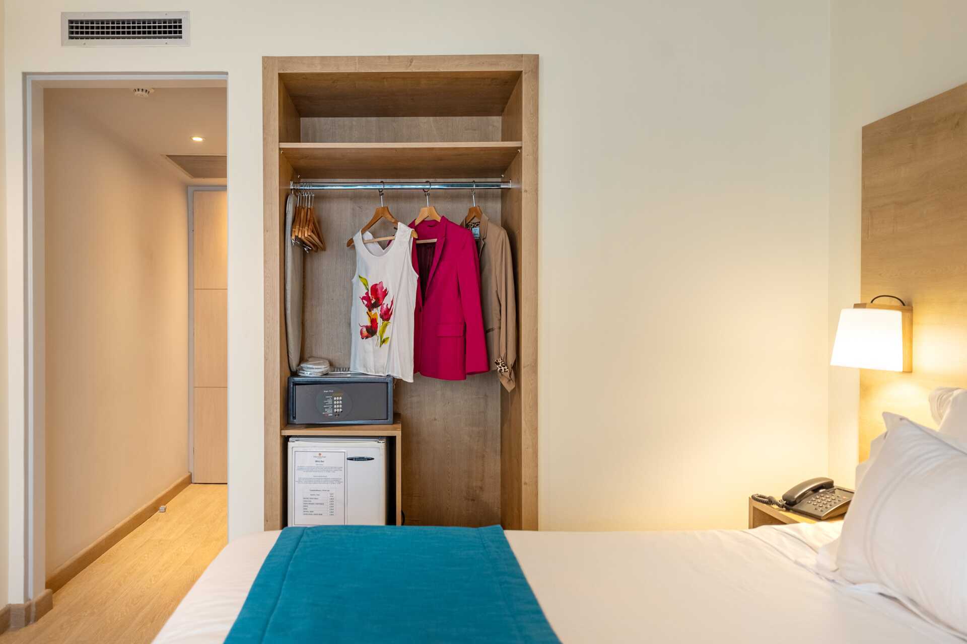 Superiorrum, utan uteplats. En dubbelsäng eller två enkelsängar. Möjlighet till extrabädd i hopfällbar säng. Wifi, luftkonditionering och deponering ingår. Kylskåp. Vattenkokare samt kaffe och te. Tv med internationella kanaler. Ljudisolerade fönster. Strykjärn och strykbräda. Hårtork. Badrum med badkar eller dusch samt wc. Städning 7 ggr/vecka.