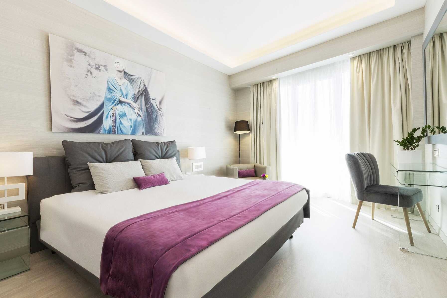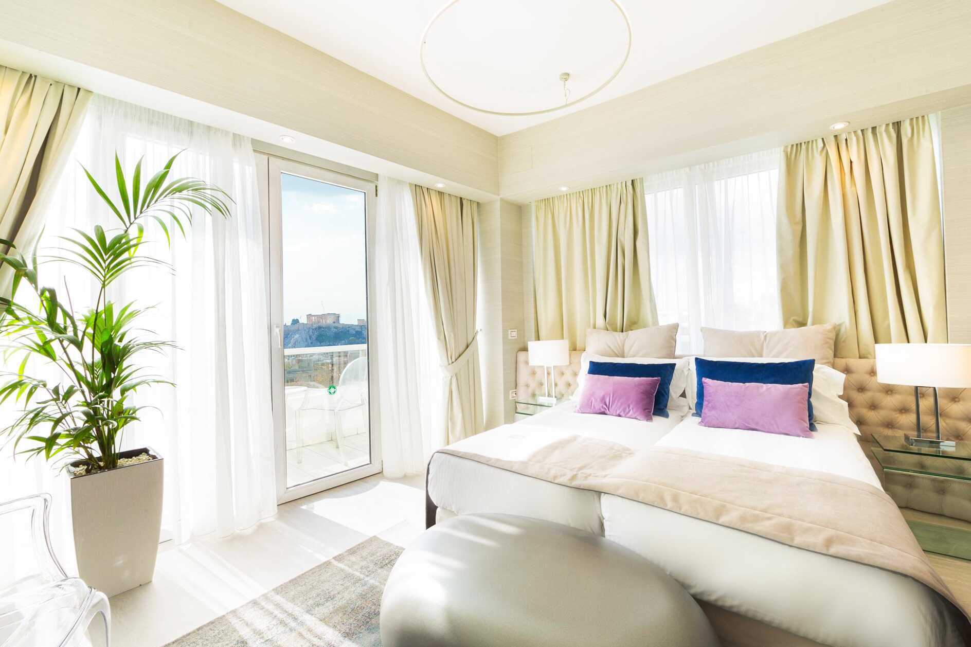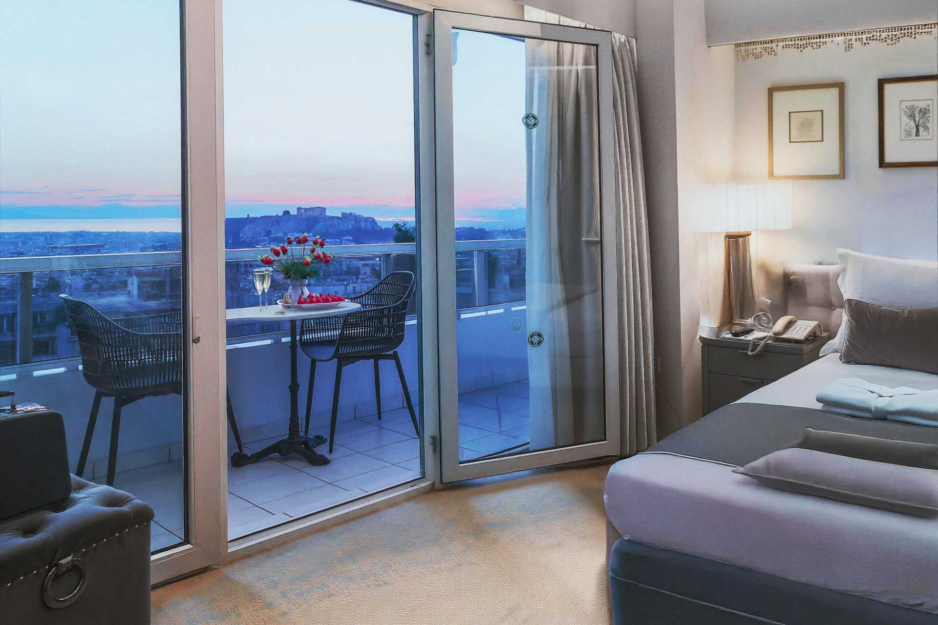 Superiorrum med balkong och utsikt mot Acropolis. En dubbelsäng eller två enkelsängar. Möjlighet till extrabädd i bäddsoffa. Wifi, luftkonditionering och deponering ingår. Minibar. Vattenkokare samt kaffe och te. Tv med internationella kanaler. Strykjärn och strykbräda. Hårtork. Badrum med badkar eller dusch samt wc. Städning 7 ggr/vecka.