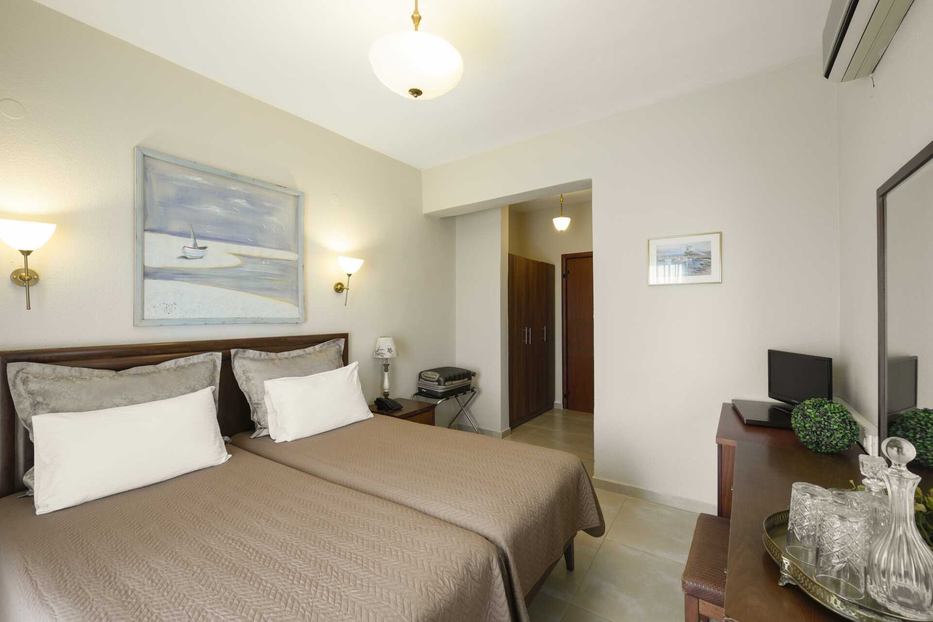 Superiorrum med balkong och havsutsikt. Rummen ligger på våning fyra och fem utan hiss. En dubbelsäng eller två enkelsängar. Wifi, luftkonditionering och deponering ingår. Minibar (tom). Tv med internationella kanaler. Vattenkokare samt kaffe och te. Espresso kaffemaskin - kapslar ingår och fylls på under veckan. Strykjärn och strykbräda. Hårtork. Badrum med dusch och wc. Städning 6 ggr/vecka.