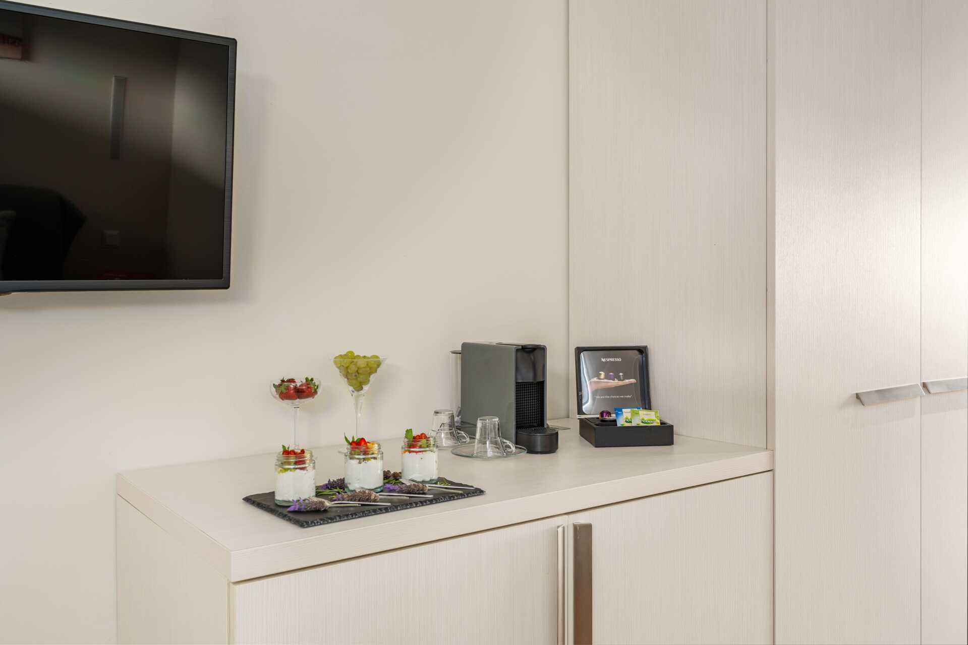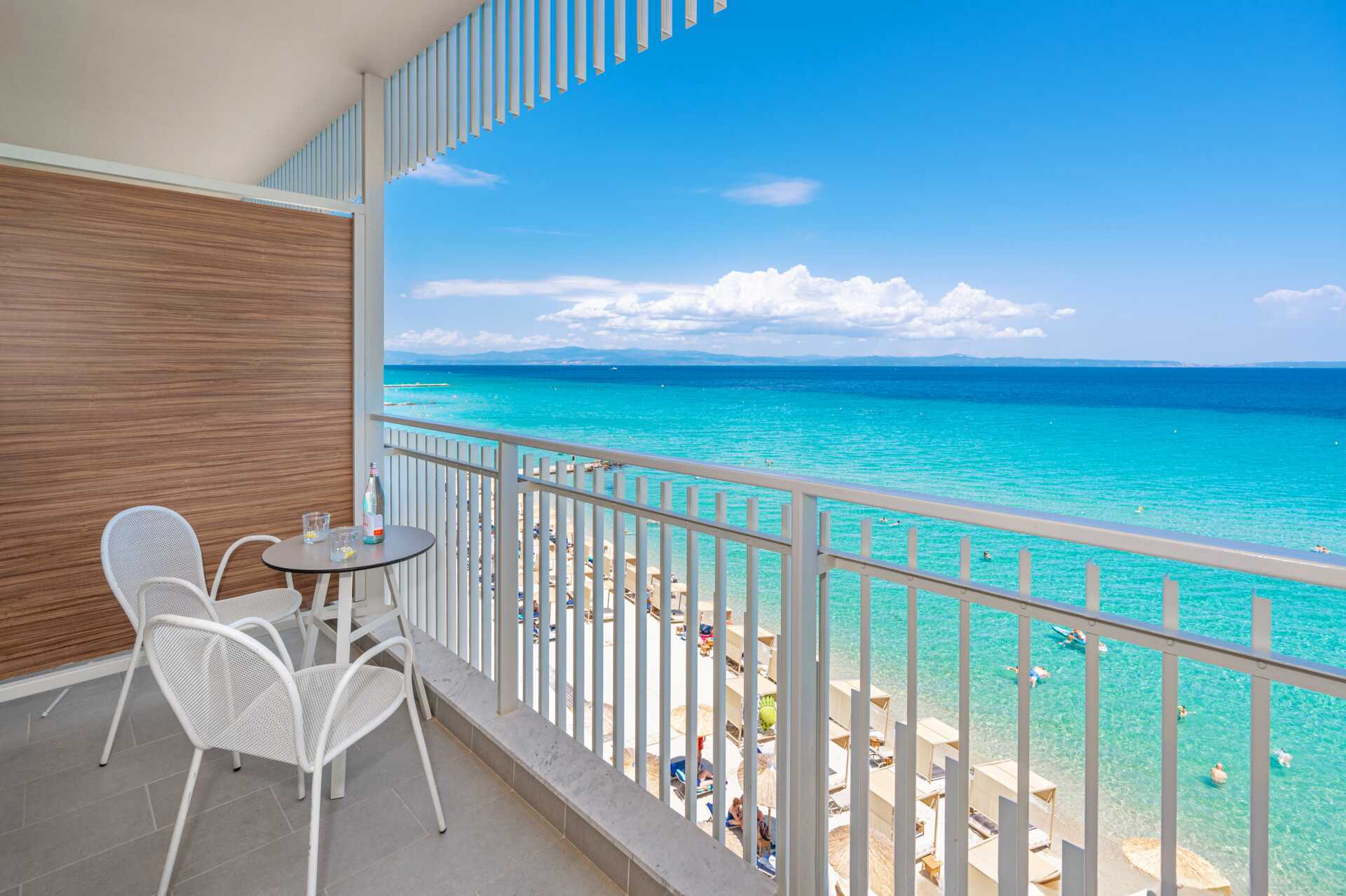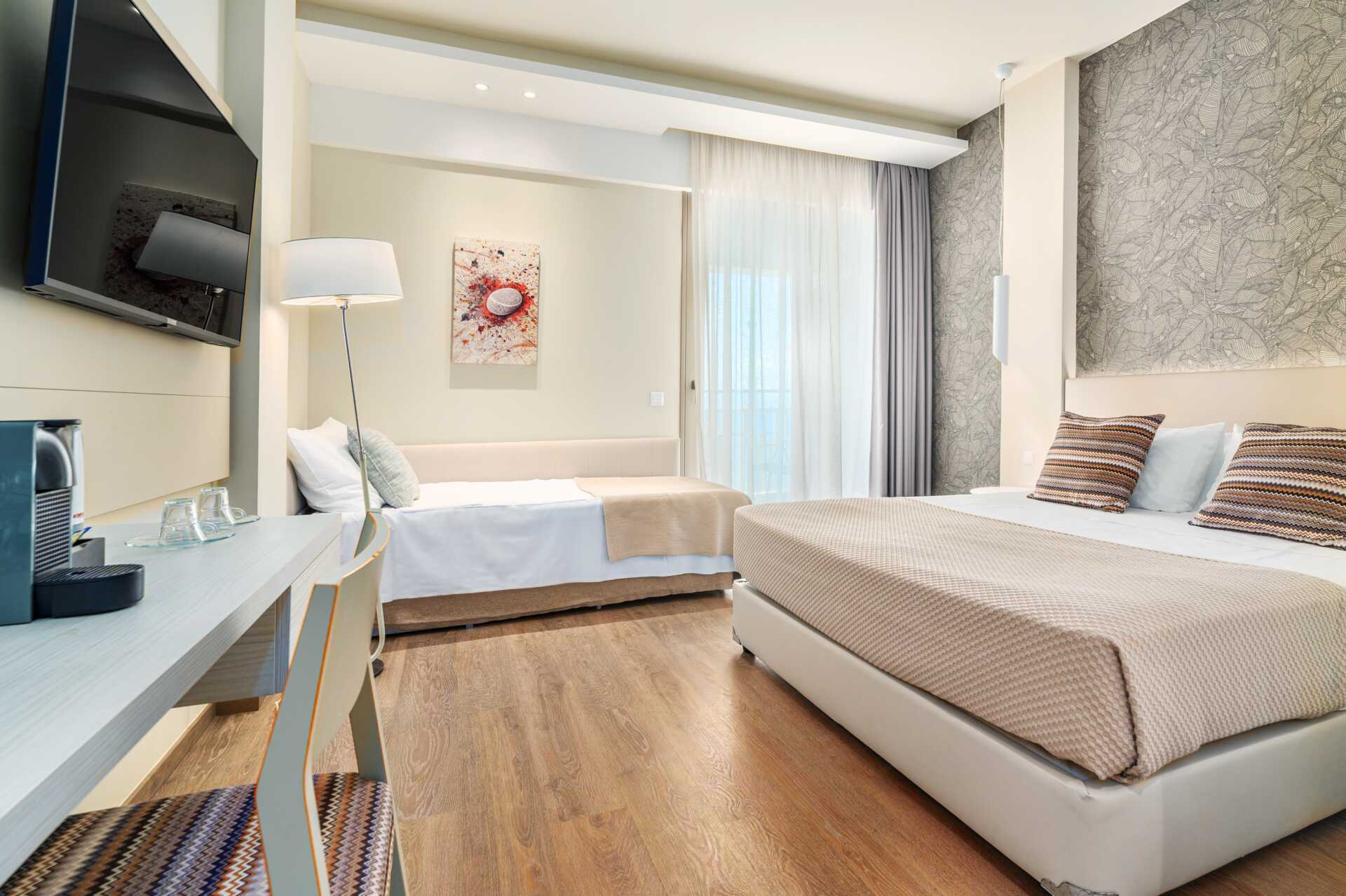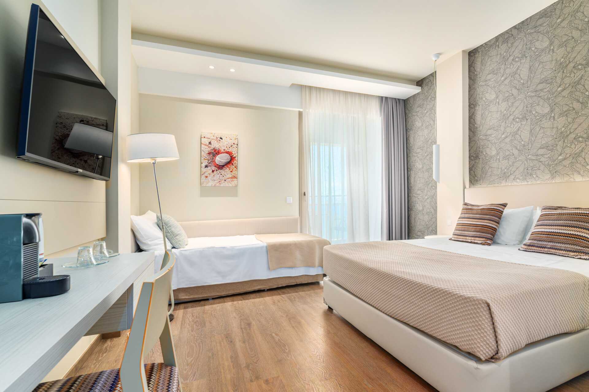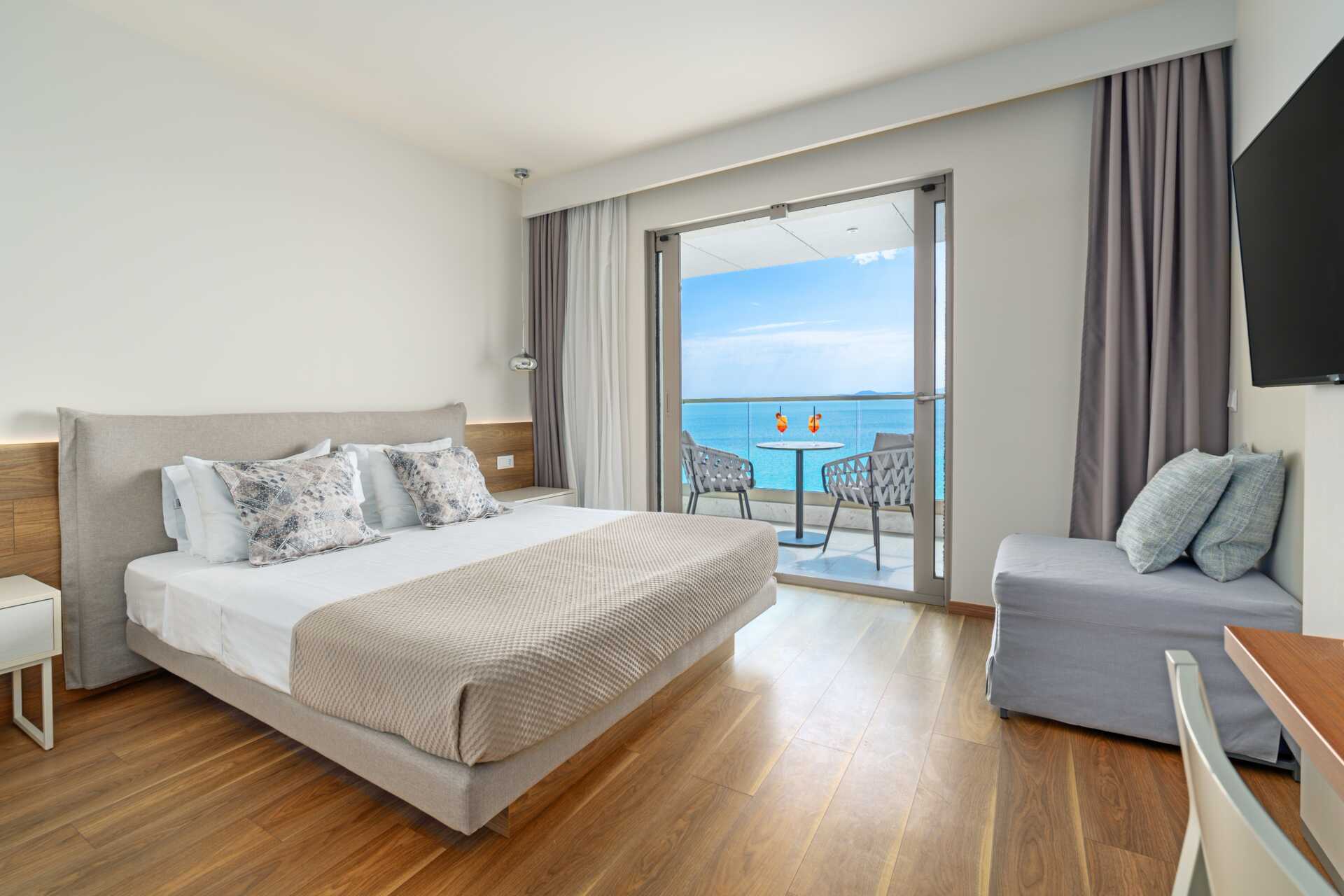 Superiorrum med balkong och havsutsikt. En dubbelsäng eller två enkelsängar. Möjlighet till extrabädd i bäddsoffa. Kuddmeny. Wifi, luftkonditionering och deponering ingår. Kylskåp. Minibar ingår vid ankomsten - påfyllning mot avgift. Vattenkokare samt kaffe och te. Nespresso kaffemaskin - kapslar ingår vid ankomsten, påfyllning mot avgift. Tv med internationella kanaler. Badrockar och tofflor. Hårtork. Badrum med dusch och wc. Städning 7 ggr/vecka.