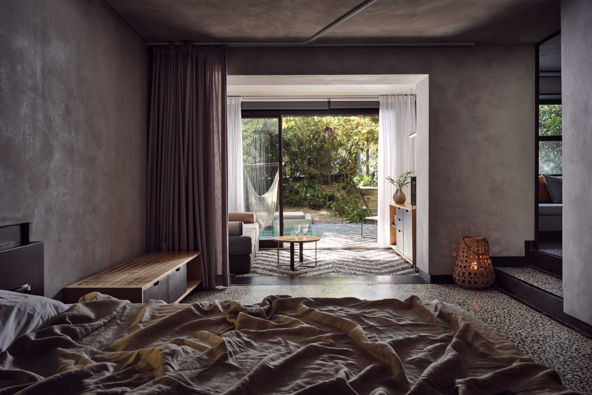 Familjerum med möblerad uteplats och privat plungepool. En sovrumsdel och en vardagsrumsdel. En dubbelsäng. Möjlighet till extrabäddar i bäddsoffa. Rummen är unika med olika inredning och utseende. Wifi, luftkonditionering och deponering ingår. Minibar. Nespresso kaffemaskin. Tv med internationella kanaler. Marshall Bluetooth-högtalare. Badrockar och tofflor. Hårtork. Badrum med badkar eller dusch samt wc. Städning 7 ggr/vecka.