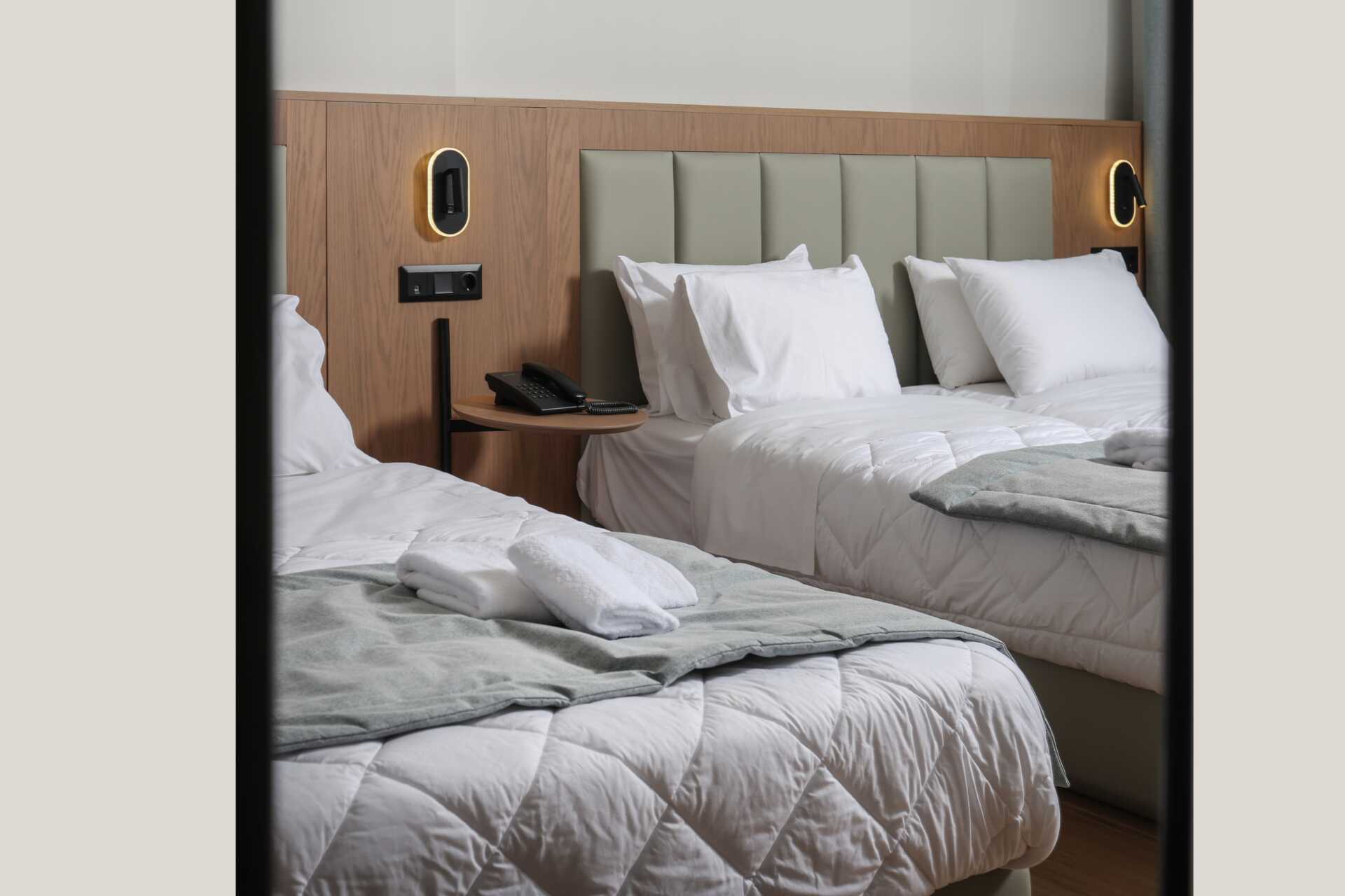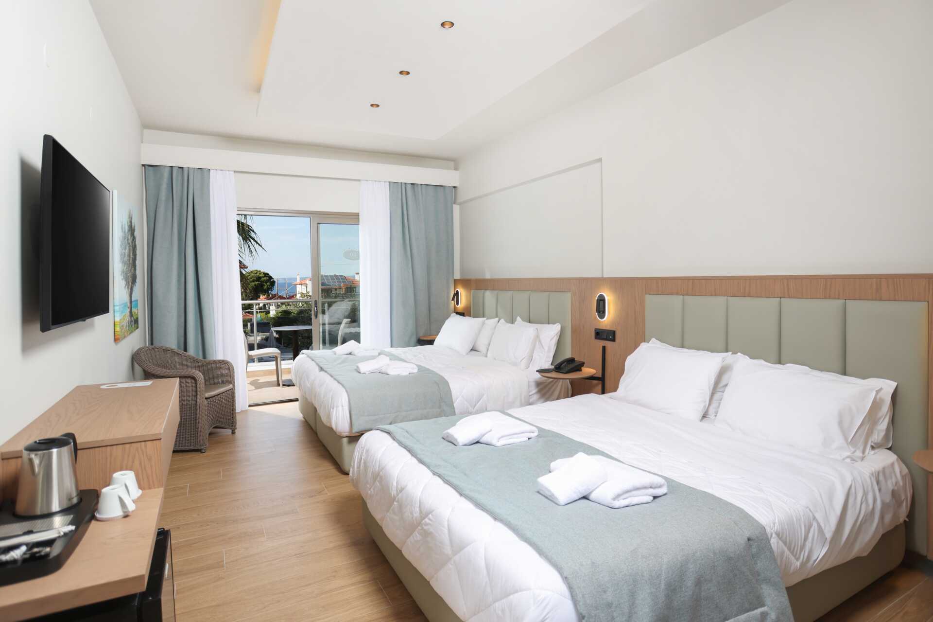 Superiorrum med balkong eller terrass. En dubbelsäng och möjlighet till extrabädd i bäddsoffor. Wifi, luftkonditionering och deponering ingår. Litet kylskåp. Vattenkokare samt kaffe och te. Tv med internationella kanaler. Badrum med badkar eller dusch samt wc. Städning 6 ggr/vecka.