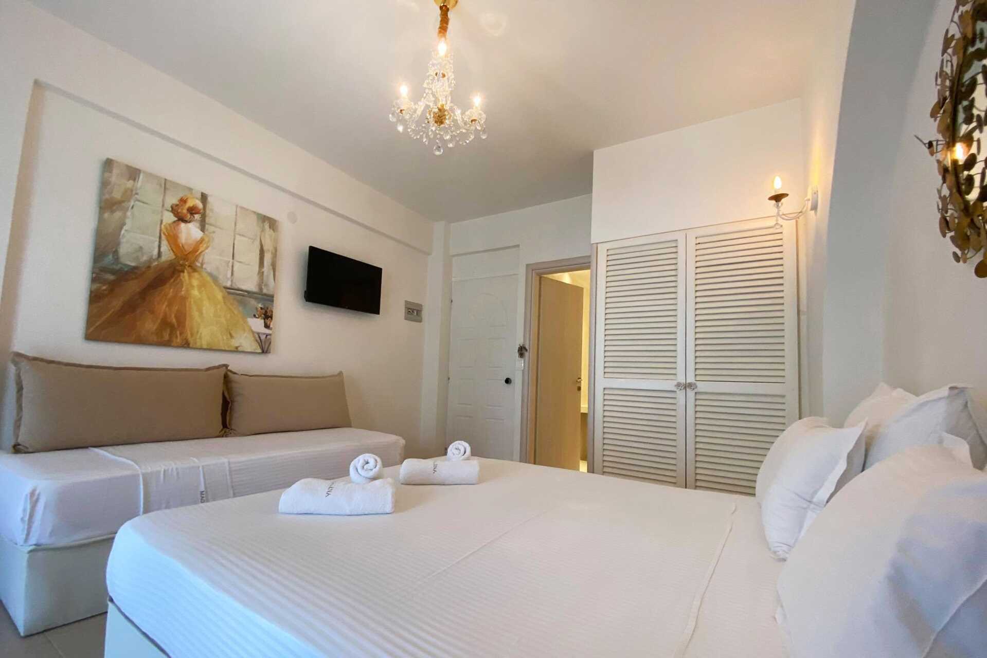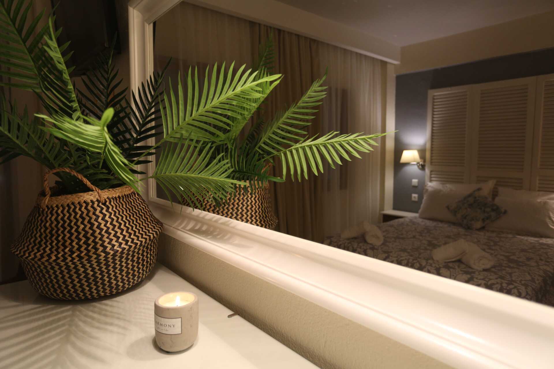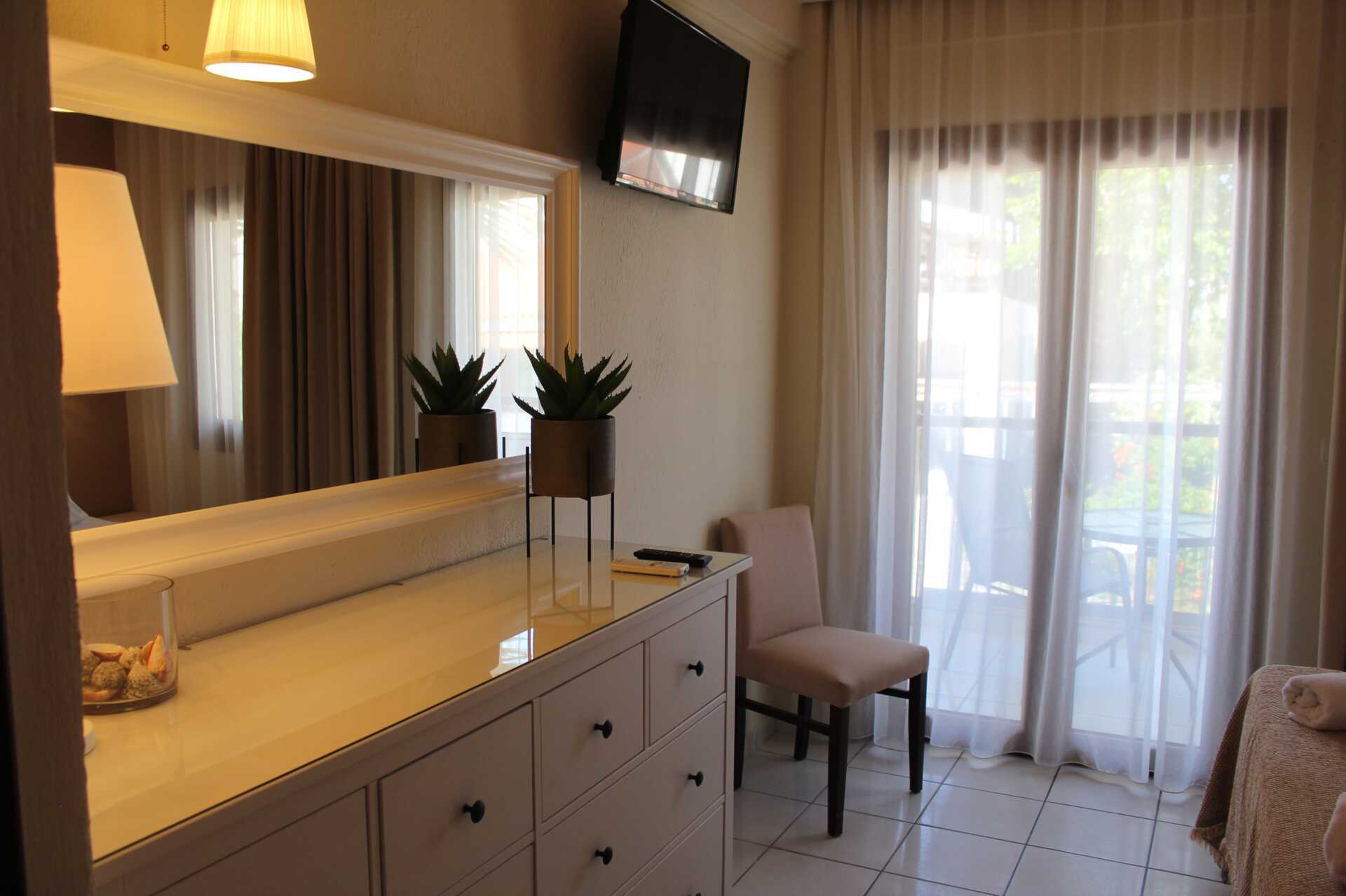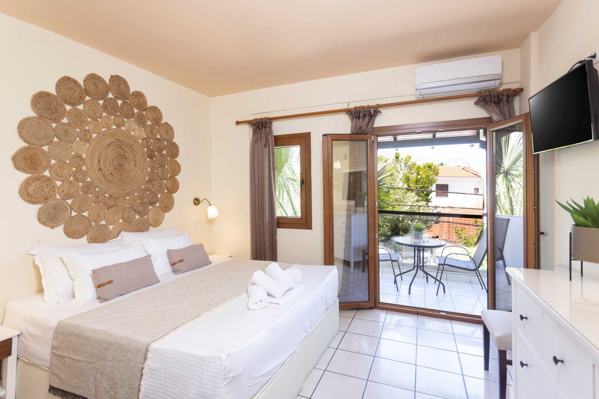 Trippelrum med balkong. En dubbelsäng och en enkelsäng. Wifi, luftkonditionering och deponering ingår. Kylskåp. Tv med lokala kanaler. Hårtork. Badrum med dusch och wc. Städning 6 ggr/vecka.