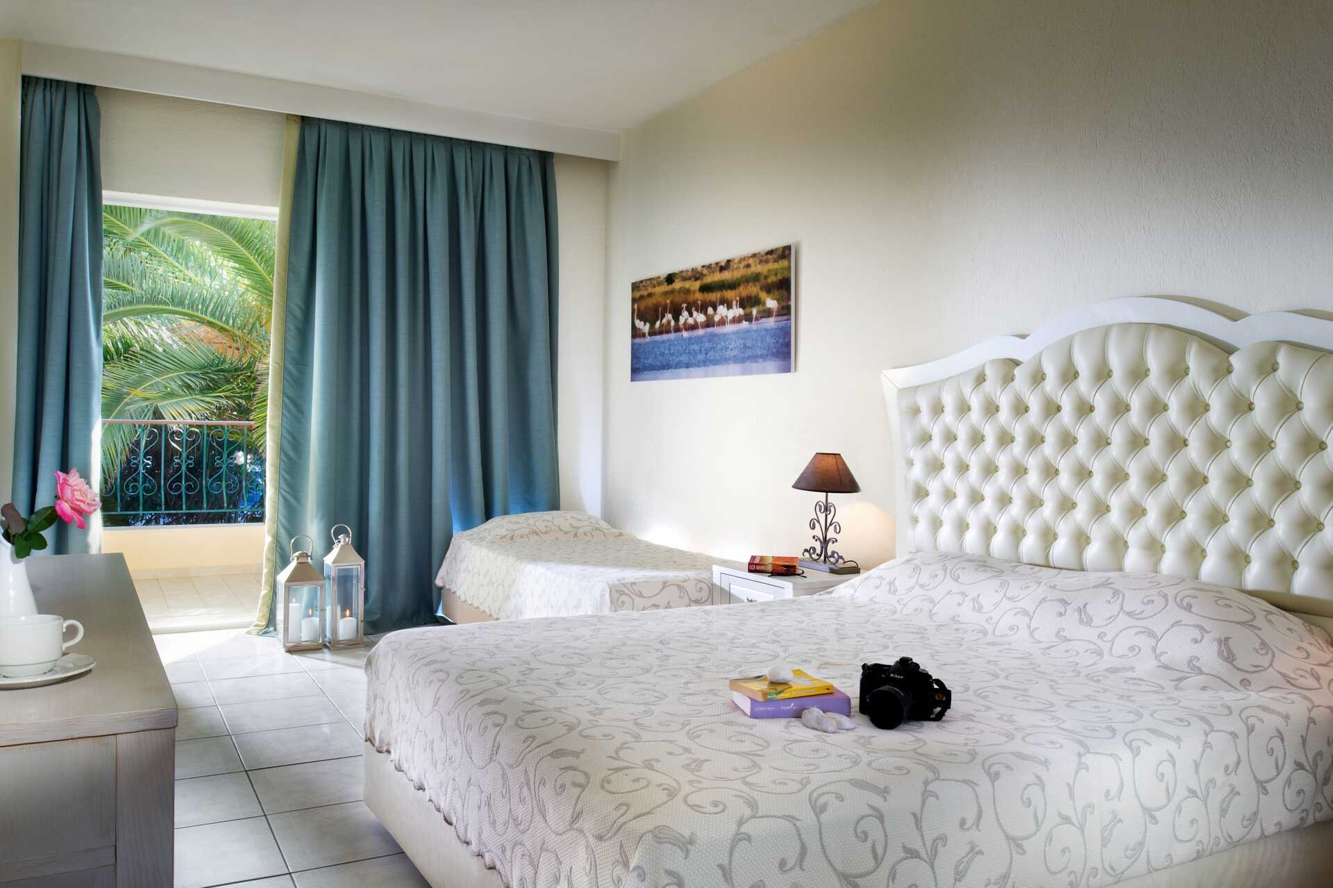 Dubbelrum med balkong eller terrass. En dubbelsäng eller två enkelsängar. Möjlighet till extrabäddar i bäddsoffa. Wifi och luftkonditionering ingår. Deponering mot avgift. Litet kylskåp. Vattenkokare finns att låna. Tv med internationella kanaler. Hårtork. Badrum med badkar eller dusch samt wc. Städning 7 ggr/vecka.