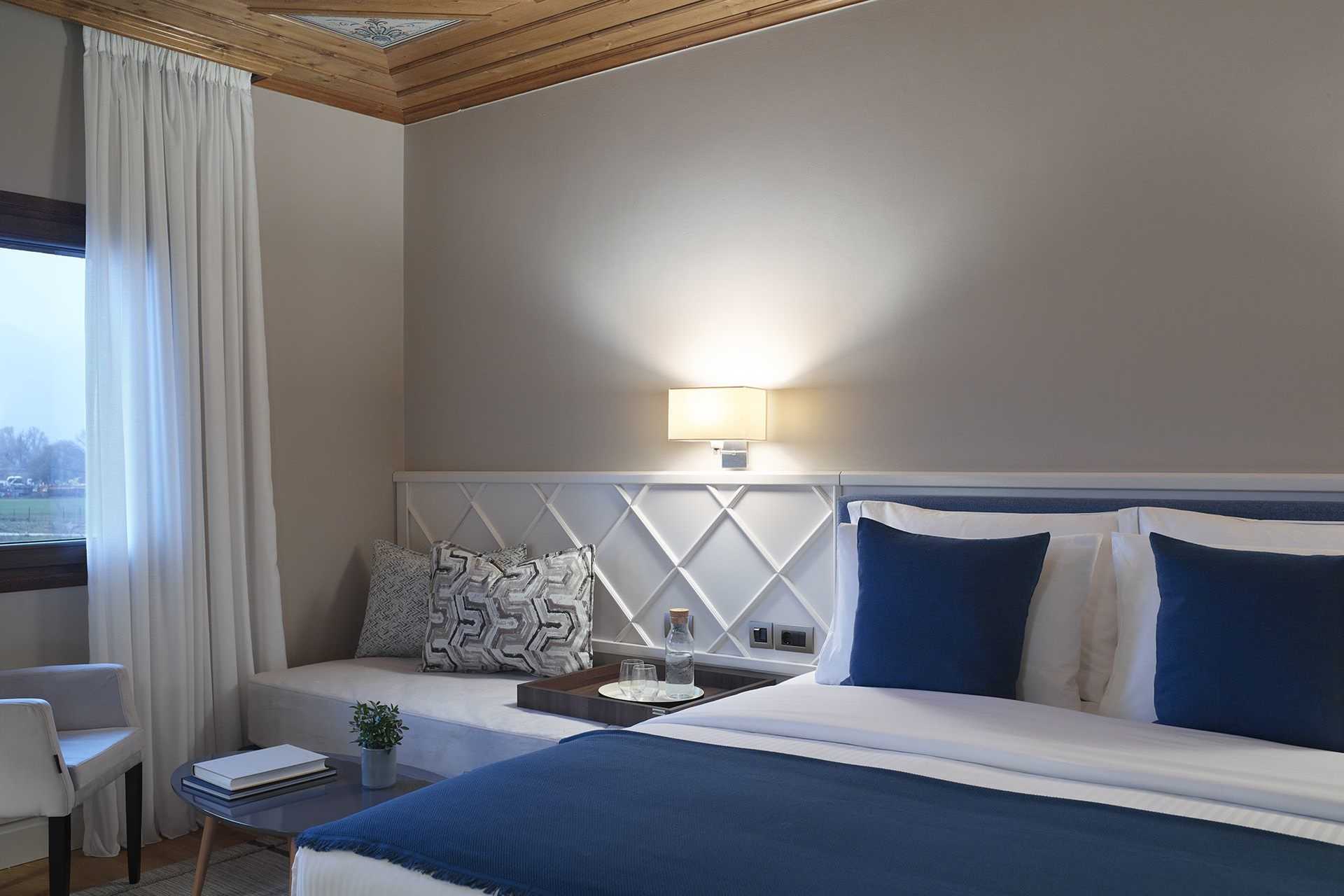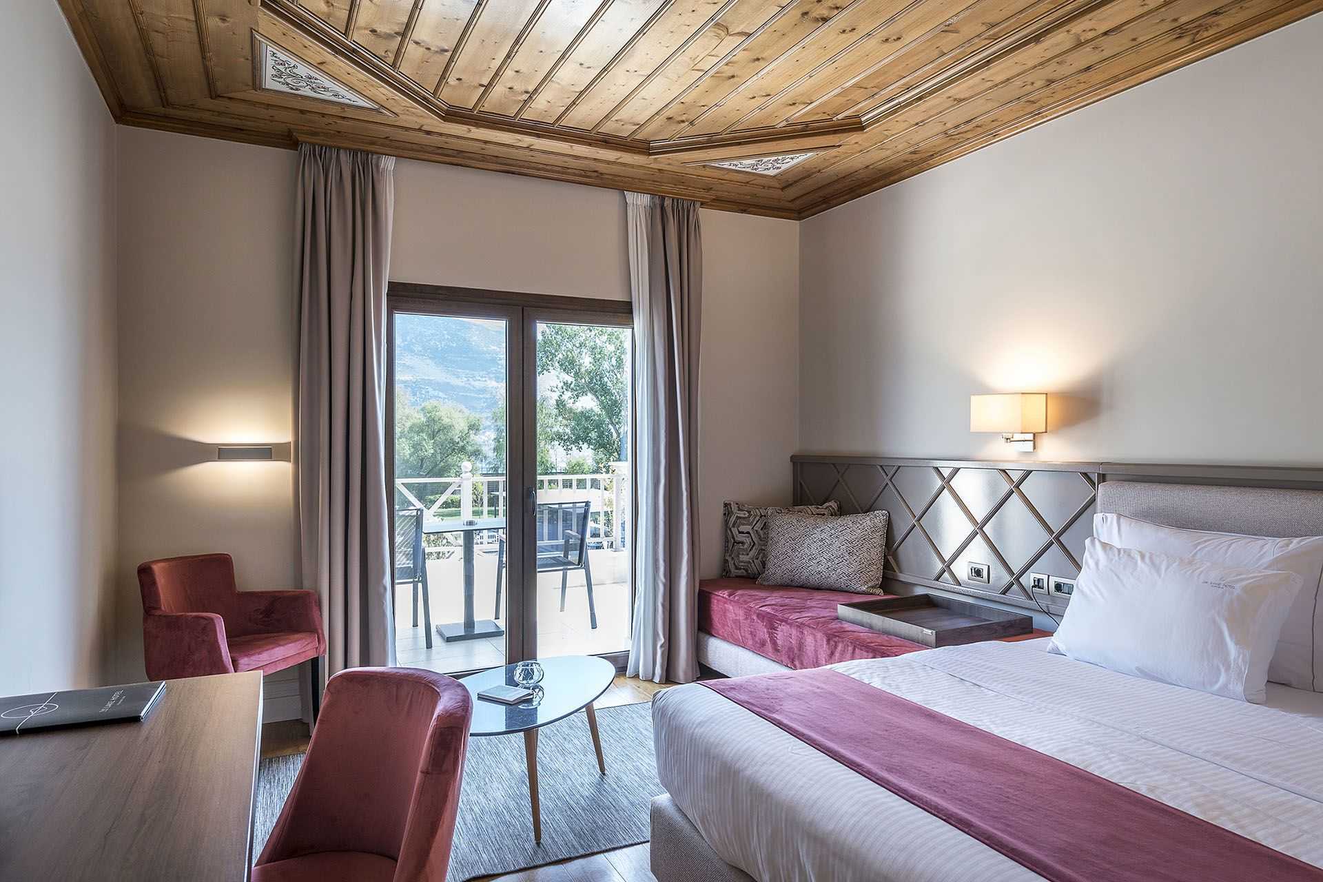 Deluxerum med balkong och utsikt mot insjön. En dubbelsäng. Möjlighet till extrabädd i bäddsoffa. Wifi, luftkonditionering och deponering ingår. Minibar. Vattenkokare samt kaffe och te. Tv med internationella kanaler. Badrockar och tofflor. Hårtork. Badrum med badkar och dusch samt wc. Städning 7 ggr/vecka. Barn under två räknas med i maxantalet personer i rummet.