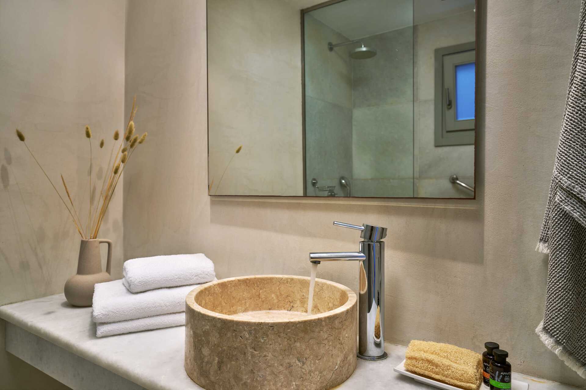 Dubbelrum med balkong eller terrass och havsutsikt. Rummen är belägna på de nedre våningsplanen i huvudbyggnaden. En dubbelsäng eller två enkelsängar Möjlighet till extrabädd för en tredje person. Wifi, luftkonditionering och deponering ingår. Kylskåp. Tv med internationella kanaler. Hårtork. Badrum med badkar eller dusch samt wc. Städning 7 ggr/vecka.