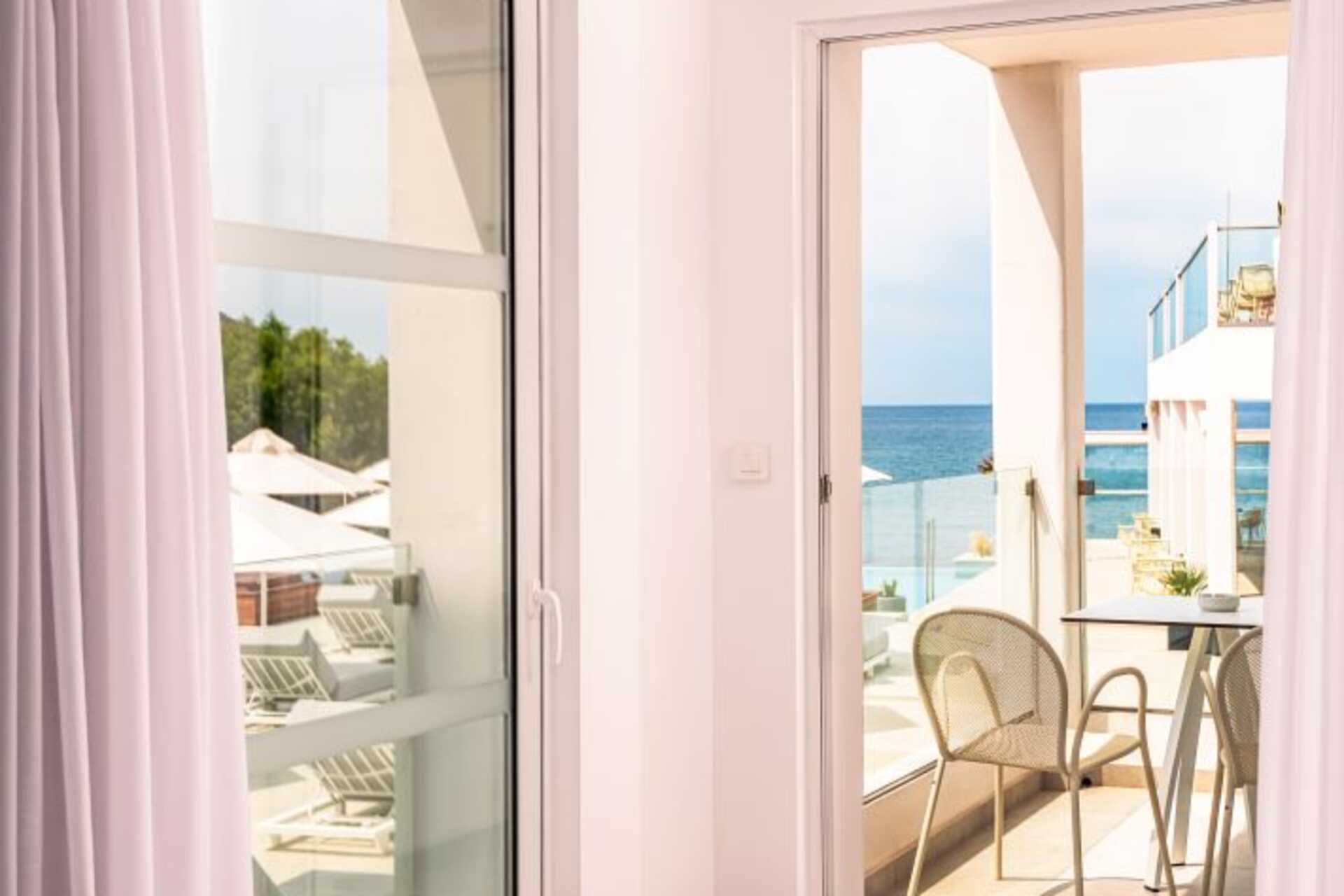 Dubbelrum med balkong eller terrass och med havsutsikt. En dubbelsäng. Wifi, luftkonditionering och deponering ingår. Kylskåp. Vattenkokare samt kaffe och te. Espressomaskin. Tv med internationella kanaler. Strandväska med pool- och strandhanddukar och strandskor. Badrockar och tofflor. Hårtork. Badrum med dusch och wc. Städning 7 ggr/vecka. Barn under två är räknas in i maxantalet personer i rummet.