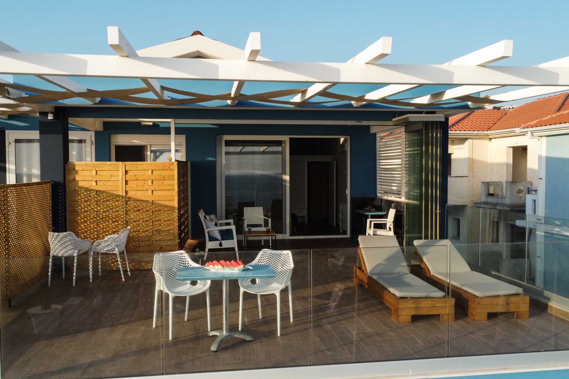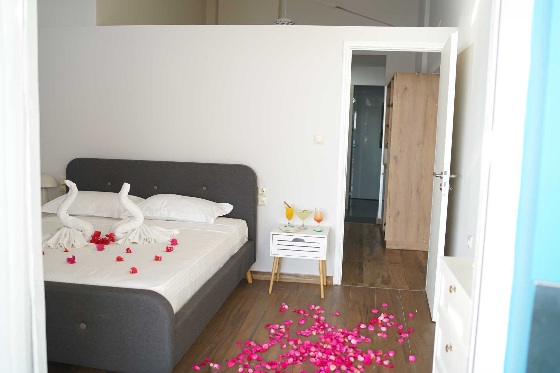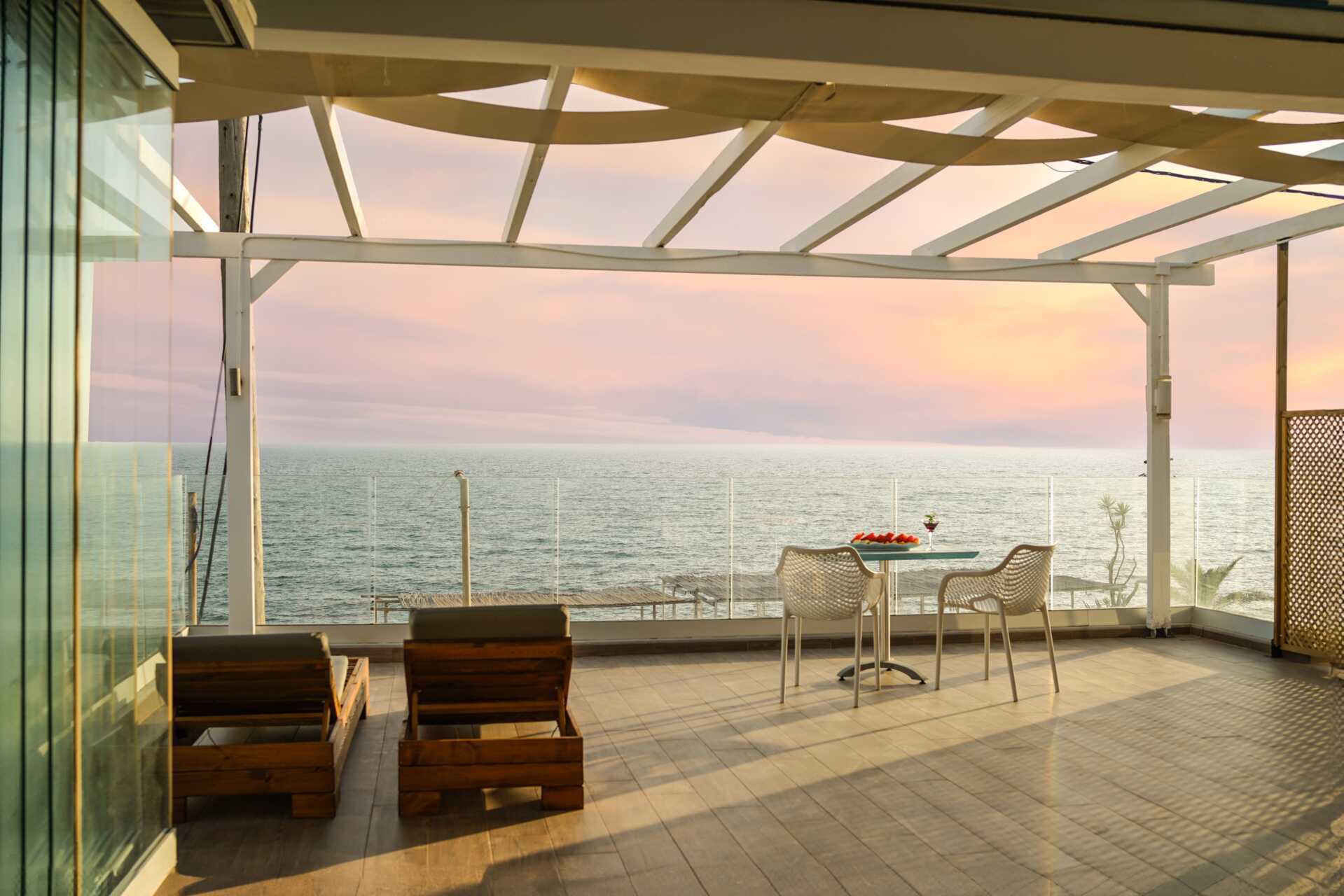 Tvårumssvit med balkong och havsutsikt. Sviten har två rum med dörr mellan rummen, dock går inte väggen ändå upp till taket och i det andra rummet finns inget tak. En dubbelsäng eller två enkelsängar. Möjlighet till extrabädd i bäddsoffa. Wifi, luftkonditionering och deponering ingår. Minibar. Vattenkokare samt kaffe och te. Tv med internationella kanaler. Badrockar och tofflor. Hårtork. Badrum med dusch och wc. Städning 7 ggr/vecka.