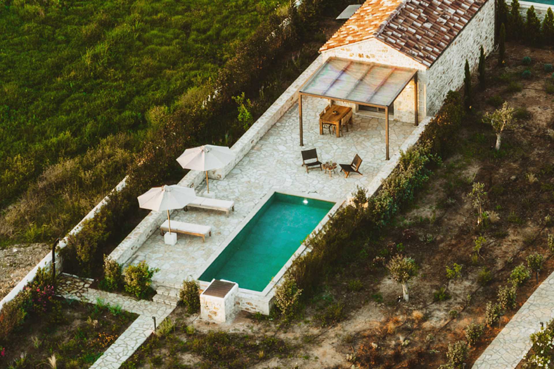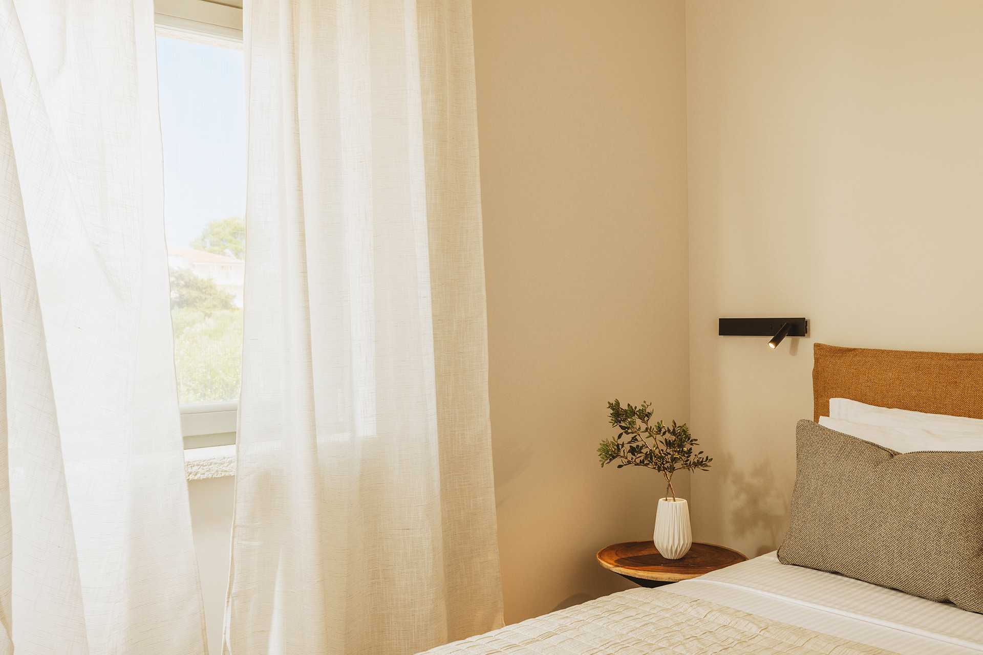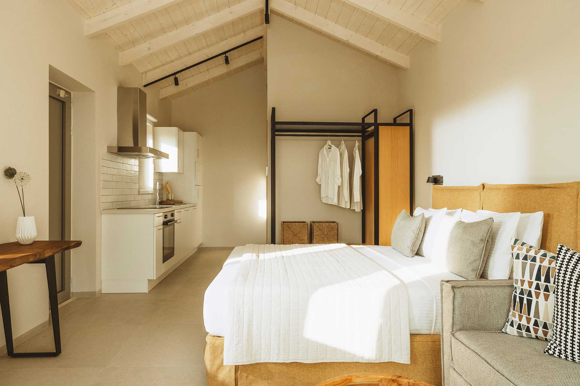 Enrumsvilla med privat pool. På uteplatsen finns ett matbord, loungemöbler samt solstolar och parasoller vid poolen. Ett kombinerat sovrum med vardagsrum och minikök. En dubbelsäng eller två enkelsängar. Möjlighet till extrabäddar i bäddsoffa. Minikök med spis, kylskåp och frys och bra köksutrustning. Wifi, luftkonditionering och deponering ingår. Tv med internationella kanaler. Strykjärn och strykbräda. Poolhanddukar. Badrockar och tofflor. Hårtork. Badrum med dusch och wc. Städning 5 ggr/vecka. Trappor inom och utanför villan, bland annat till poolen.