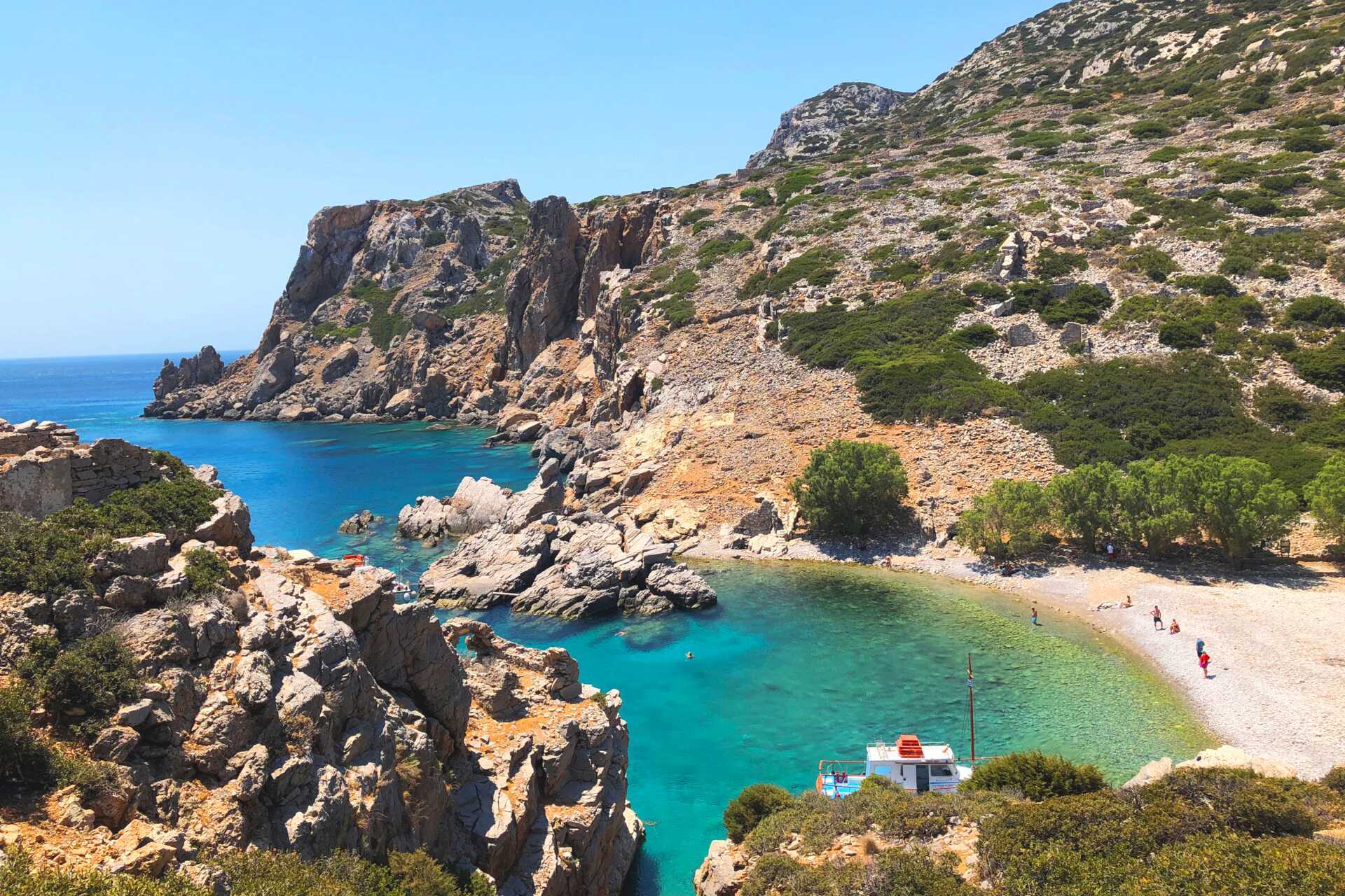 Karpathos har ett vackert kuperat landskap med höga berg och dalar, och här finns flera fantastiska utkiksplatser. Perfekt för att ta hyrbilen och bege sig ut på en biltur längs de slingriga vägarna. Karpathos har även flera vackra vandringsleder för både nybörjade och vana vandrare.