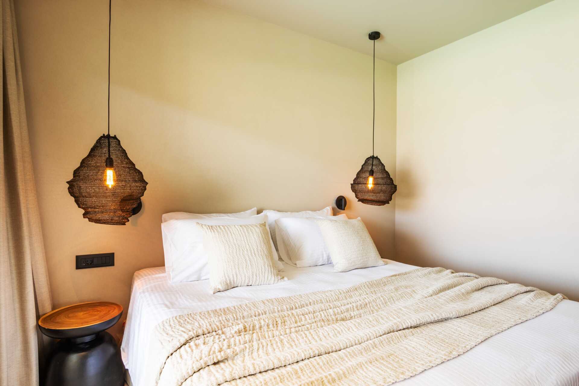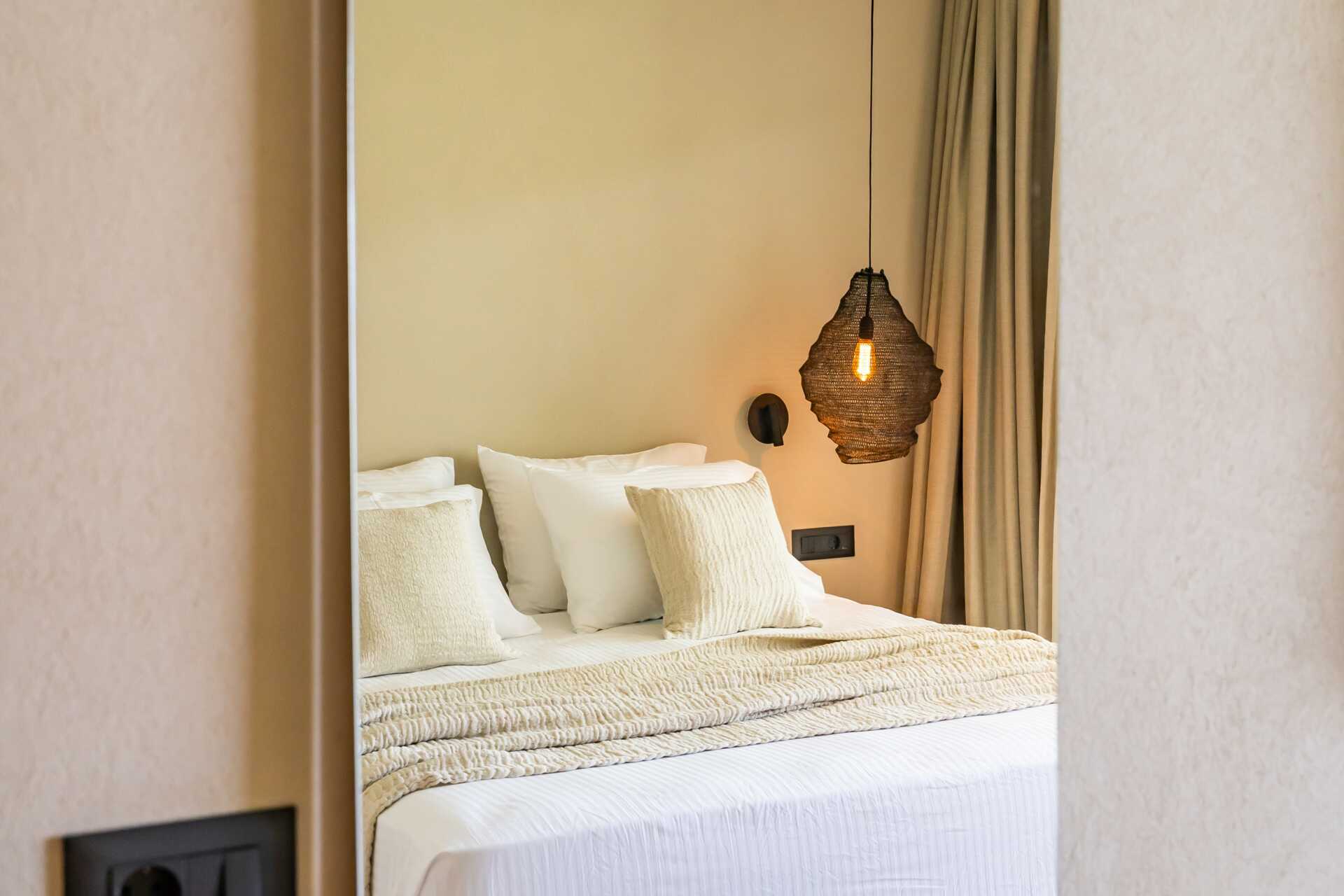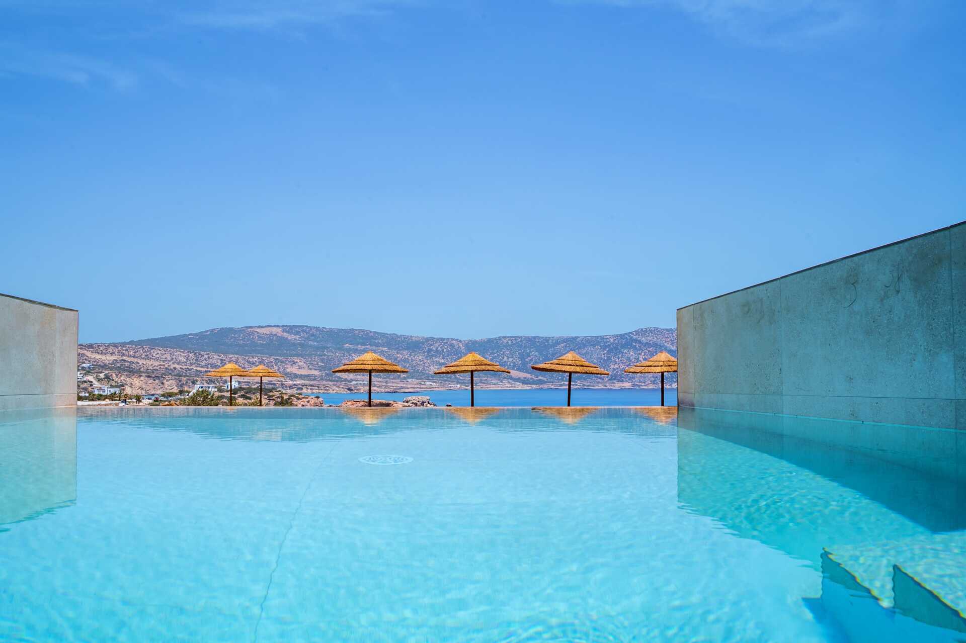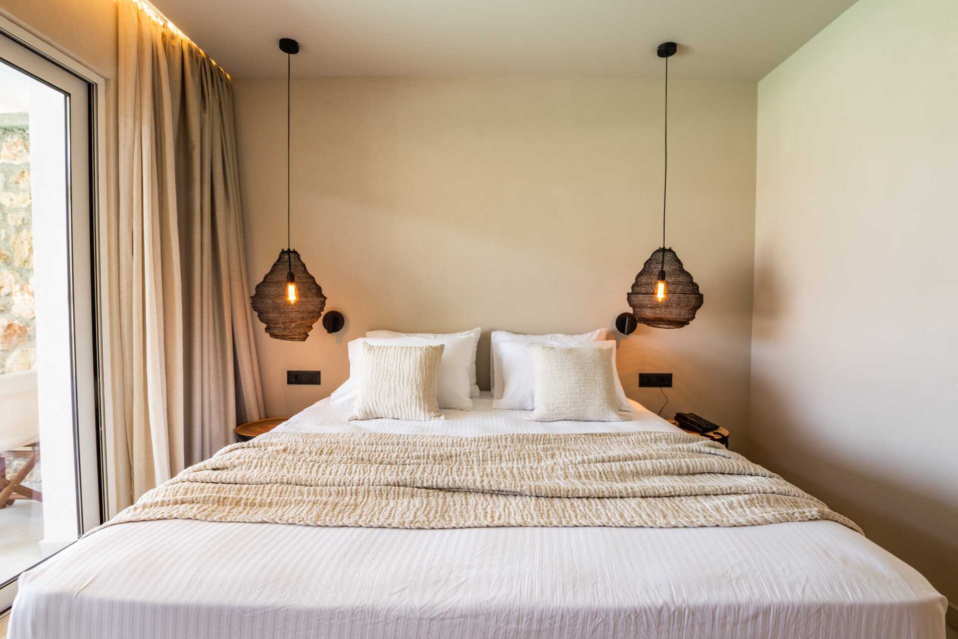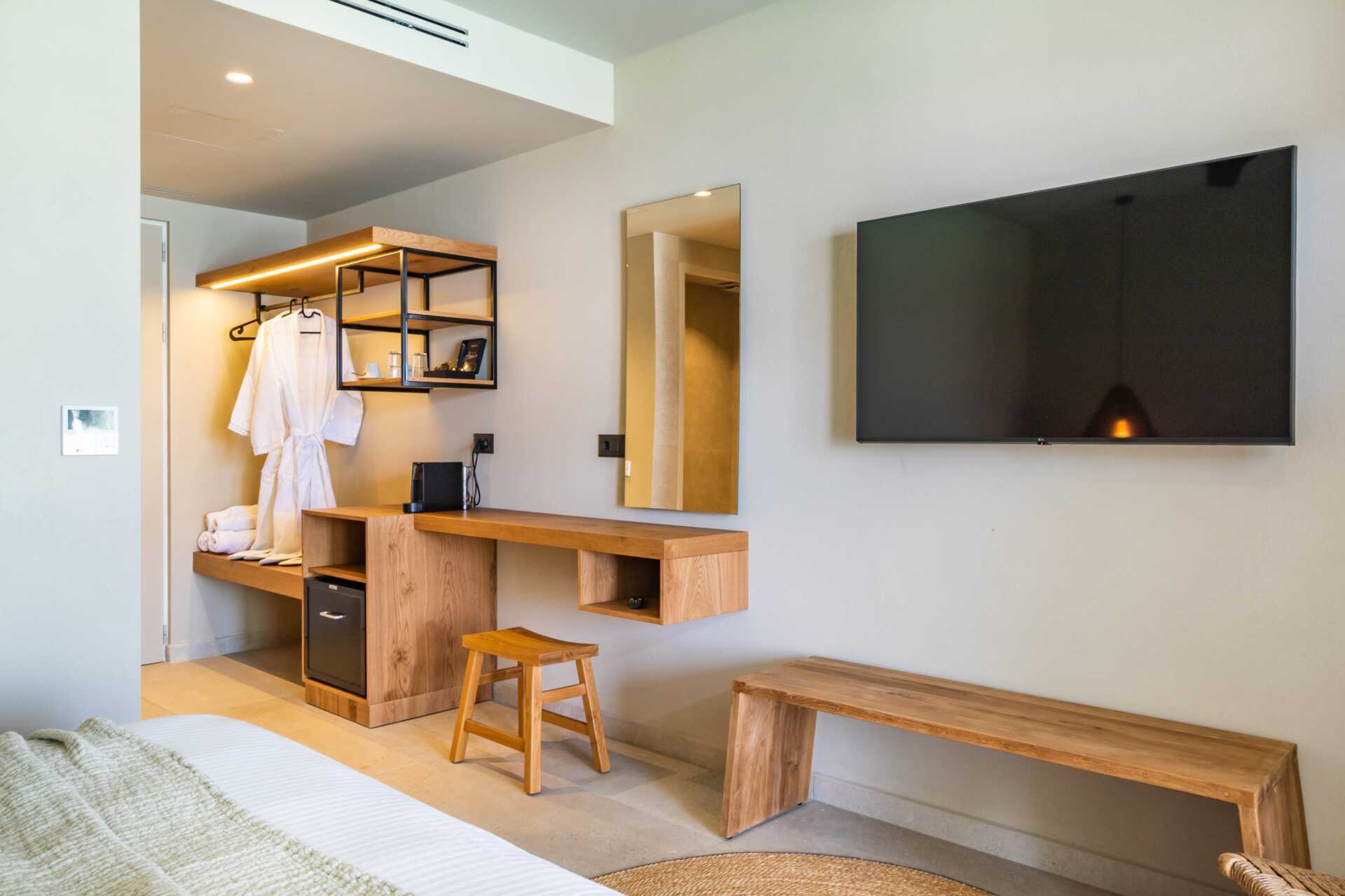 Deluxesvit med privat pool och havsutsikt från markterrassen. En dubbelsäng. Wifi, deponering och luftkonditionering ingår. Minibar. Vattenkokare samt kaffe och te. Kaffemaskin, fyra kaffekapslar ingår, önskas fler finns det att köpa i hotelbaren. Tv med internationella kanaler. Hårtork. Badrum med badkar eller dusch samt wc. Städning 6 ggr/vecka.