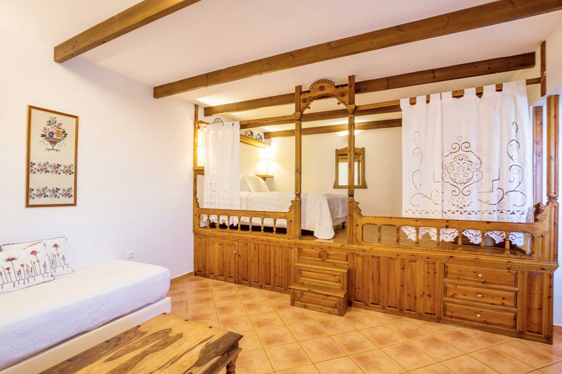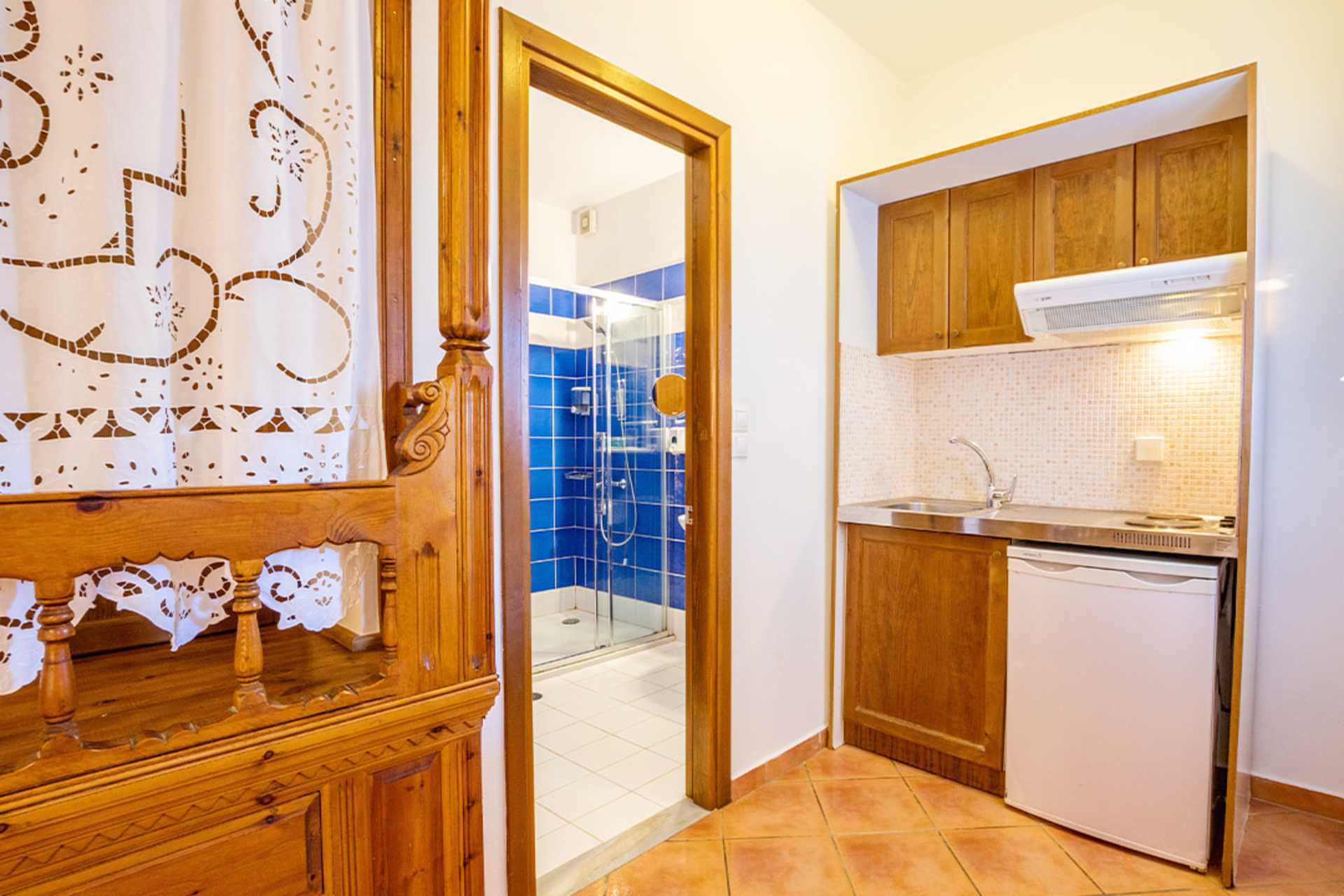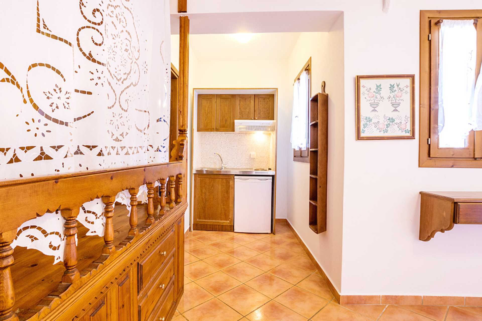 Familjerum med balkong eller terrass med begränsad havsutsikt. Familjerummet består av två delar i öppen planlösning, en del med vardagsrum/minikök och en sovrumsdel som nås med några trappsteg. En dubbelsäng och två enkelsängar. Extrabädd är i befintliga sängar. Minikök med kylskåp, kokplattor, vattenkokare samt kaffe och te och enkel köksutrustning. Kaffemaskin, fyra kaffekapslar ingår, önskas fler finns det att köpa i hotelbaren. Wifi, deponering och luftkonditionering ingår. Tv med internationella kanaler. Hårtork. Badrum med dusch och wc. Städning 6 ggr/vecka.