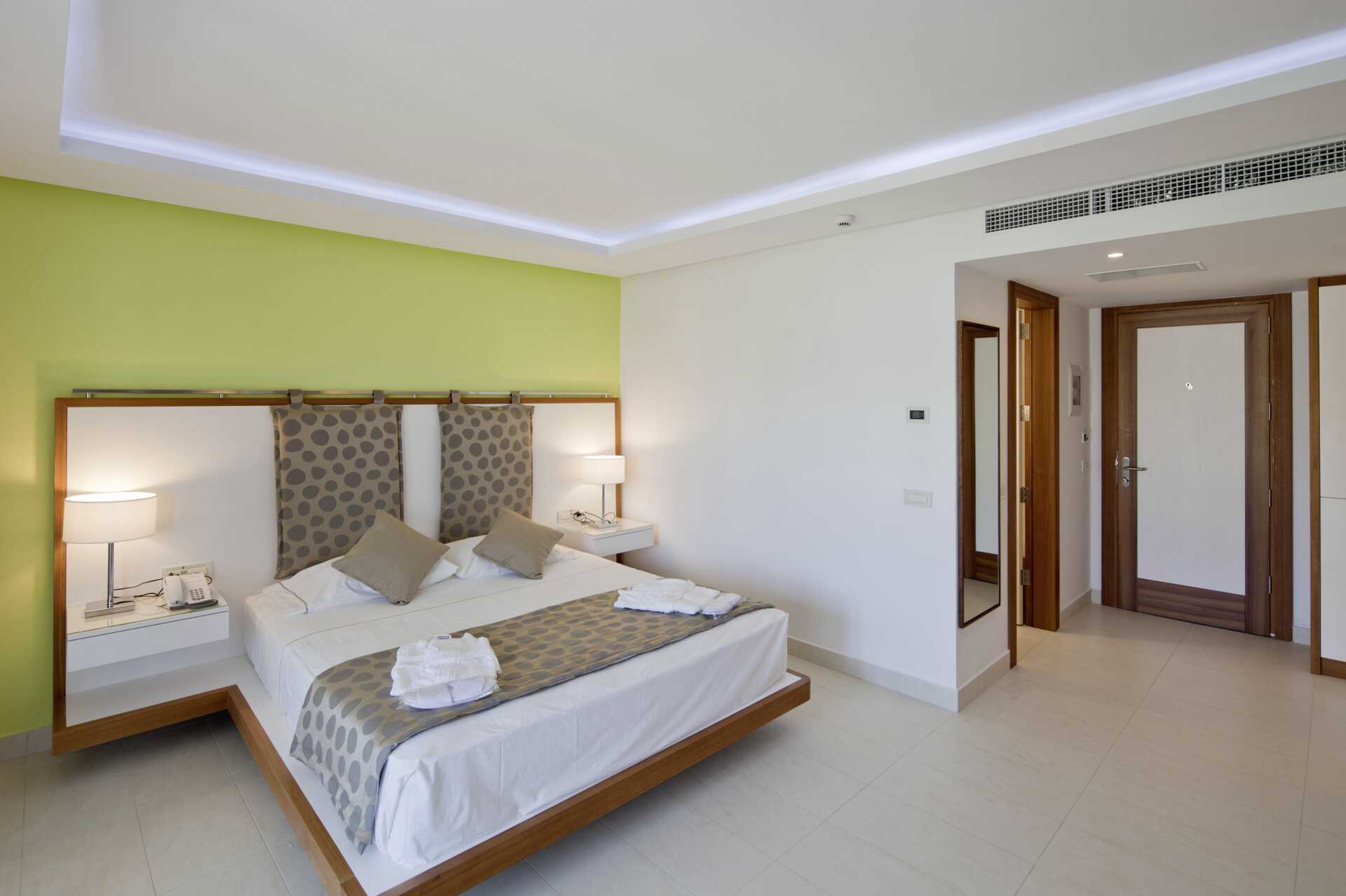Juniorsvit med balkong eller terrass och begränsad havsutsikt. Juniorsviterna ligger i en sidobyggnad av hotellet. Alla hotellets faciliteter finns i huvudbyggnaden, ca 150 meter bort. Ett separat sovrum med en dubbelsäng. Möjlighet till extrabäddar i bäddbar fåtöljer eller i en bäddsoffa i vardagsrumsdelen. När extrabäddarna används kan rummet uppfattas som trångt. Wifi, luftkonditionering och deponering ingår. Kylskåp. Vattenkokare samt kaffe och te. Tv med internationella kanaler. Badrockar och tofflor. Hårtork. Badrum med dusch och wc med öppen planlösning mot rummet. Dörr endast till toaletten. Städning 7 ggr/vecka.