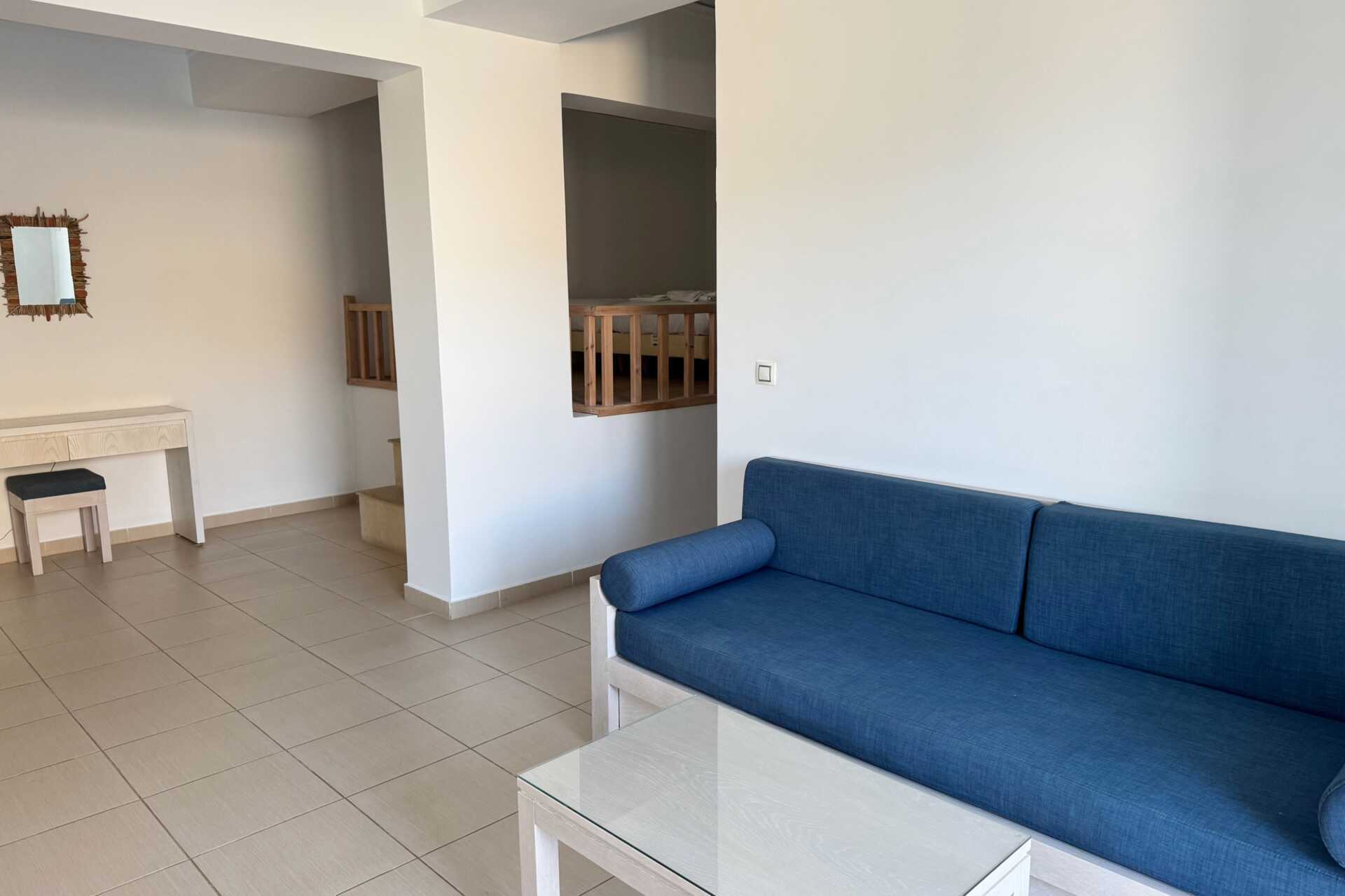 Tvårumslägenhet med markterrass. Sovrum och kombinerat vardagsrum med minikök. Två enkelsängar. Möjlighet till extrabädd i bäddsoffa. Minikök med ugn, spis, kylskåp, kaffebryggare, vattenkokare, juicepress, brödrost, smörgåsgrill, elvisp och enkel köksutrustning. Luftkonditionering och deponering ingår. Strykjärn och strykbräda. Tv med internationella kanaler. Hårtork. Badrum med dusch och wc. Städning 6 ggr/vecka. Tvårumslägenheterna har små fönster som sitter en bit upp på väggen, och vissa två rumslägenheter har en vanlig dörr (ej glas) ut mot terrassen.