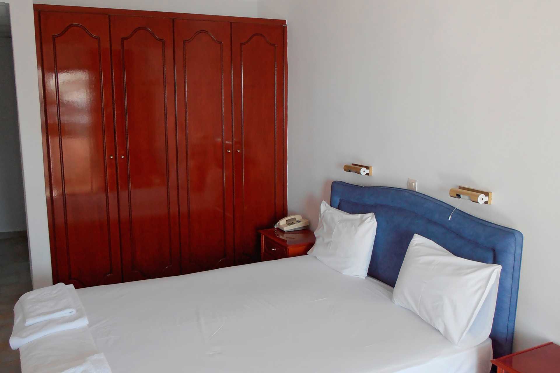 Dubbelrum med balkong, vissa med havsutsikt. En dubbelsäng eller två enkelsängar. Möjlighet till extrabädd i enkelsäng eller i hopvikbar säng. Wifi, deponering och luftkonditionering ingår. Kylskåp. Vattenkokare. Tv med internationella kanaler. Hårtork. Badrum med dusch och wc - några av badrummen är små men varierar från rum till rum. Städning 6 ggr/vecka.