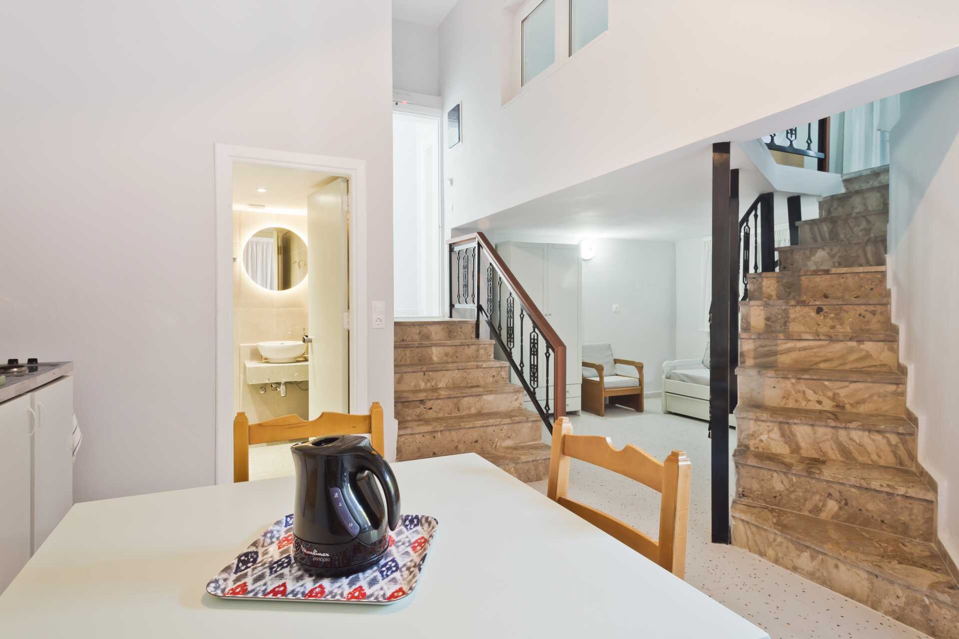 Enrumslägenheter med balkong. Kombinerat sovrum med minikök. En dubbelsäng. Möjlighet till extrabädd. Minikök med kokplattor, kylskåp, vattenkokare och enkel köksutrustning. Wifi, luftkonditionering och deponering ingår. Badrum med dusch och wc. Städning 6 ggr/vecka.