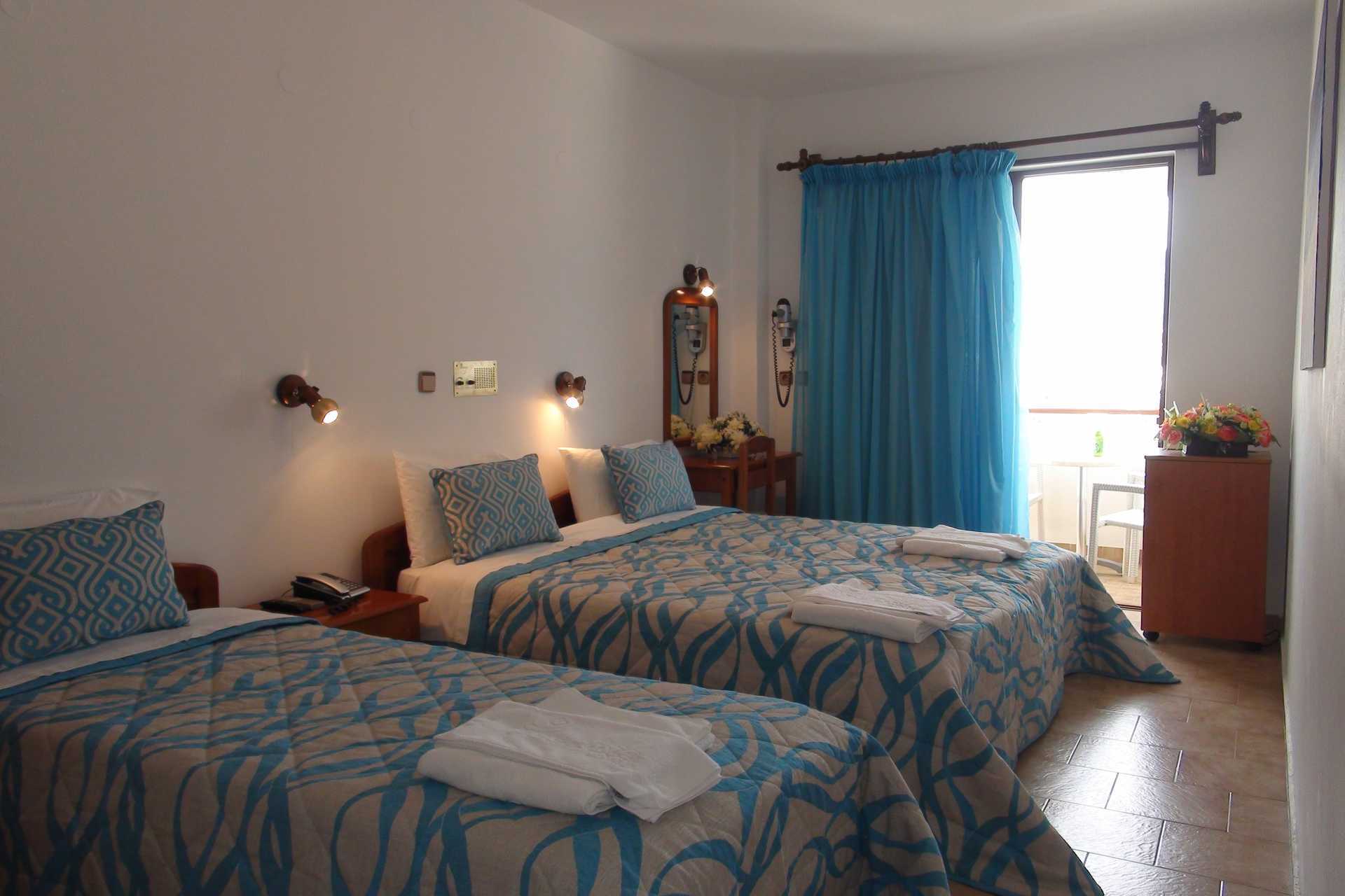 Enkla dubbelrum med balkong av varierande storlek. Wifi och luftkonditionering ingår. Kylskåp. Tv med internationella kanaler. Hårtork. Badrum med dusch och wc. Städning 7 ggr/vecka. Barn under två är räknas in i maxantalet personer i rummet.