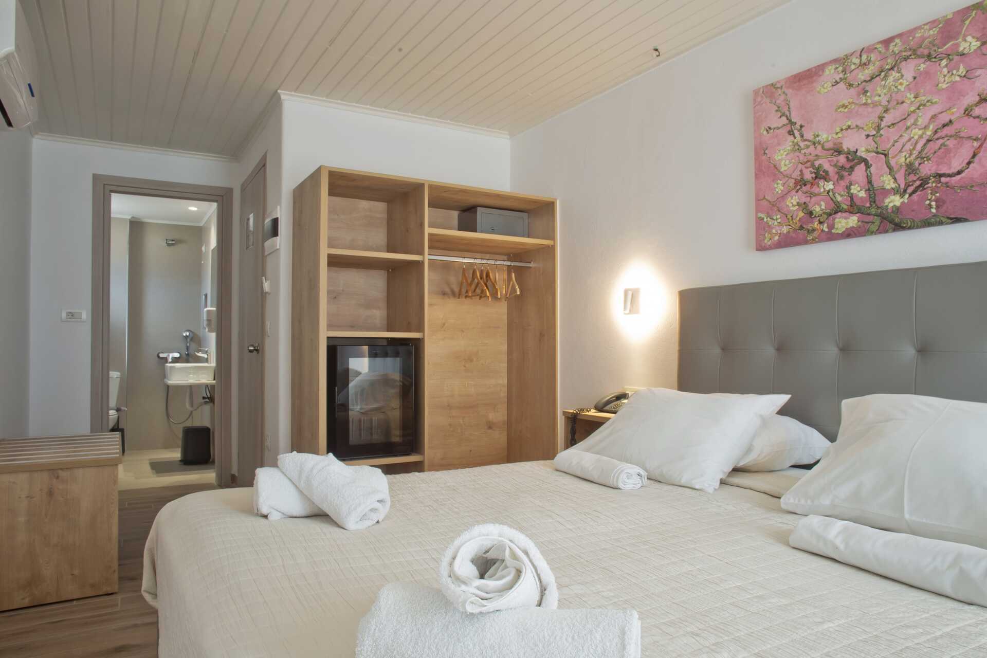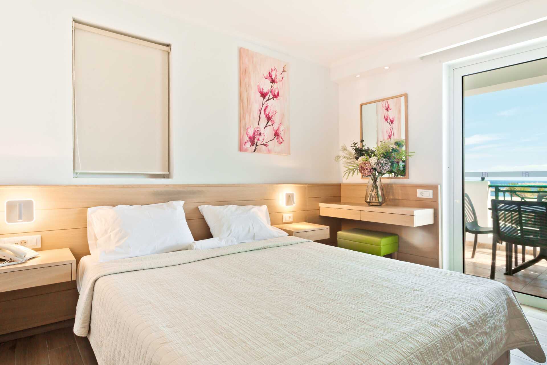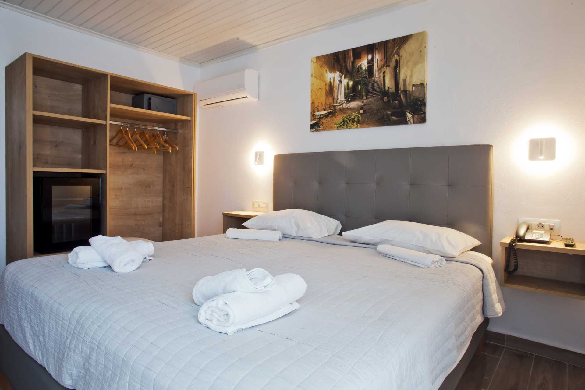 Större dubbelrum med liten balkong. Dubbelrummen är belägna i byggnaden med hiss. En dubbelsäng eller två enkelsängar. Möjlighet till extrabädd i bäddsoffa i ett angränsande rum. Wifi och deponering ingår. Luftkonditionering mot avgift. Kylskåp. Tv med internationella kanaler. Badrum med dusch och wc. Städning 6 ggr/vecka. Rummet kan kännas trångt när extrabädden används.
