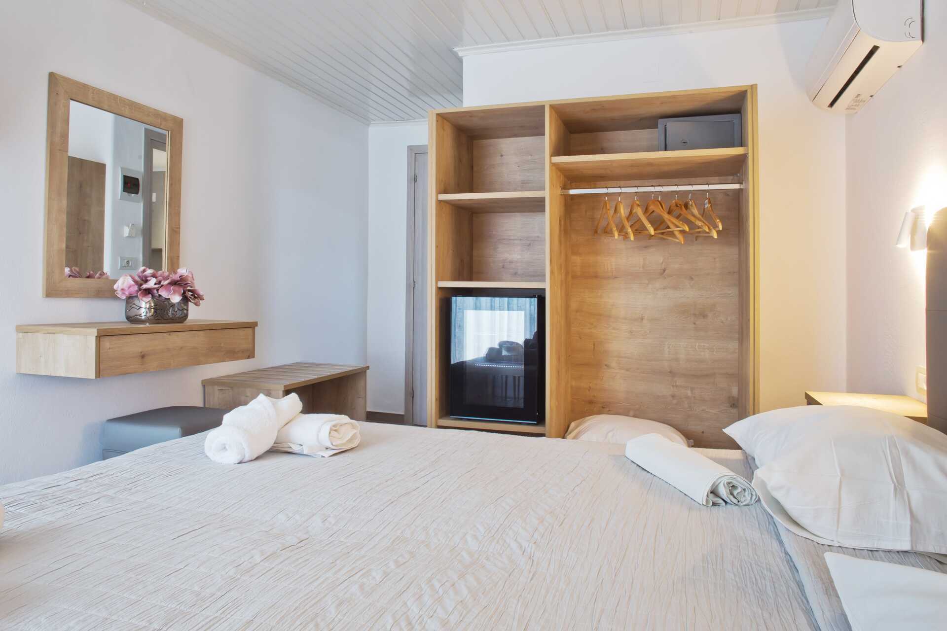 Dubbelrum av varierande storlekar med balkong eller terrass. Dubbelrummen är belägna byggnaden med hiss. En dubbelsäng. Wifi och deponering ingår. Luftkonditionering mot avgift. Kylskåp. Tv med internationella kanaler. Badrum med dusch och wc. Städning 6 ggr/vecka.