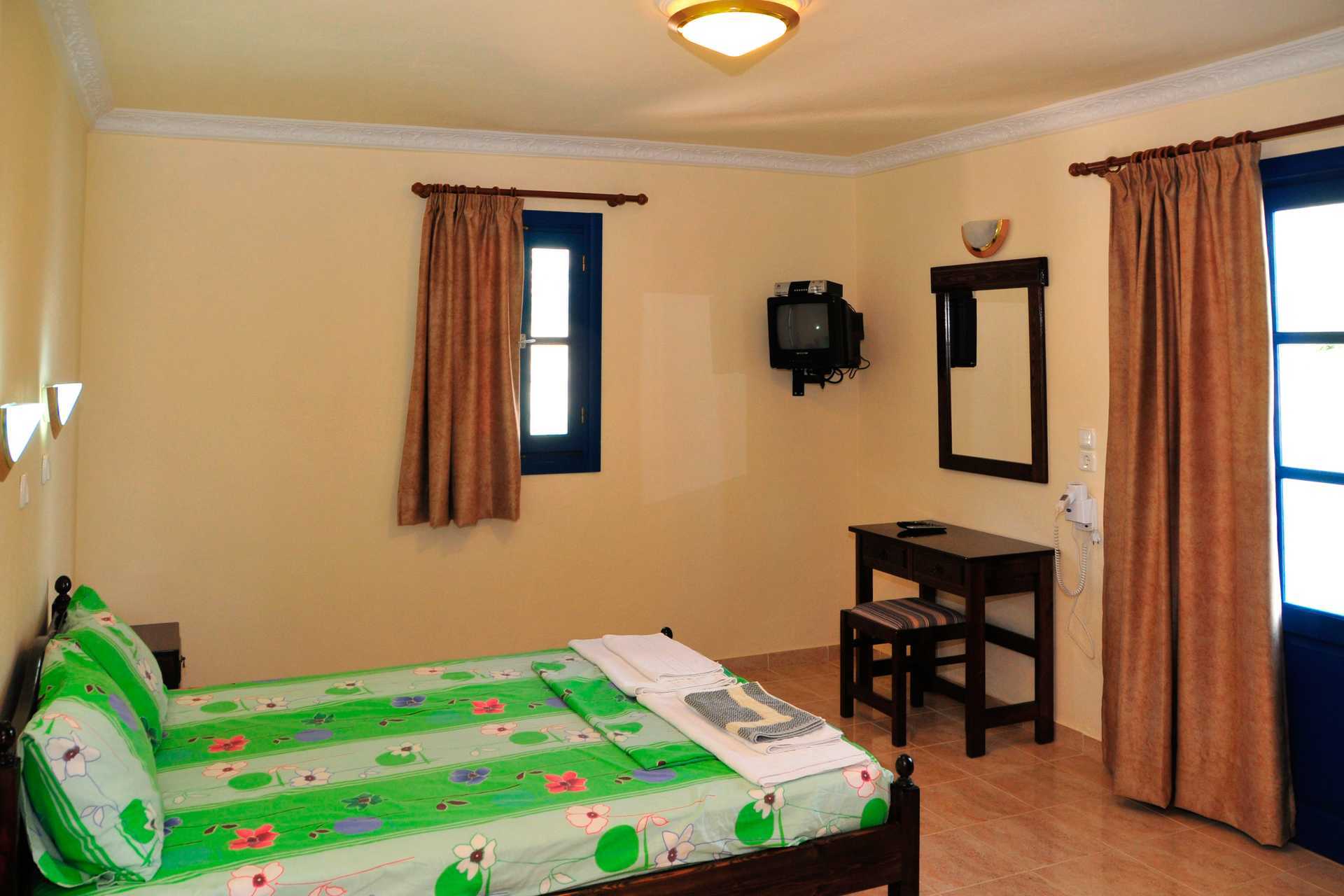 Enrumslägenhet med balkong eller terrass. Kombinerat sovrum med minikök. En dubbelsäng eller två enkelsängar. Möjlighet med extrabädd i bäddsoffa. Minikök med kylskåp, kokplattor och enklare köksutrustning. Kaffebryggare. Wifi ingår. Luftkonditionering och deponering mot avgift. Tv med internationella kanaler. Hårtork. Badrum med badkar eller dusch samt wc. Städning 6 ggr/vecka.