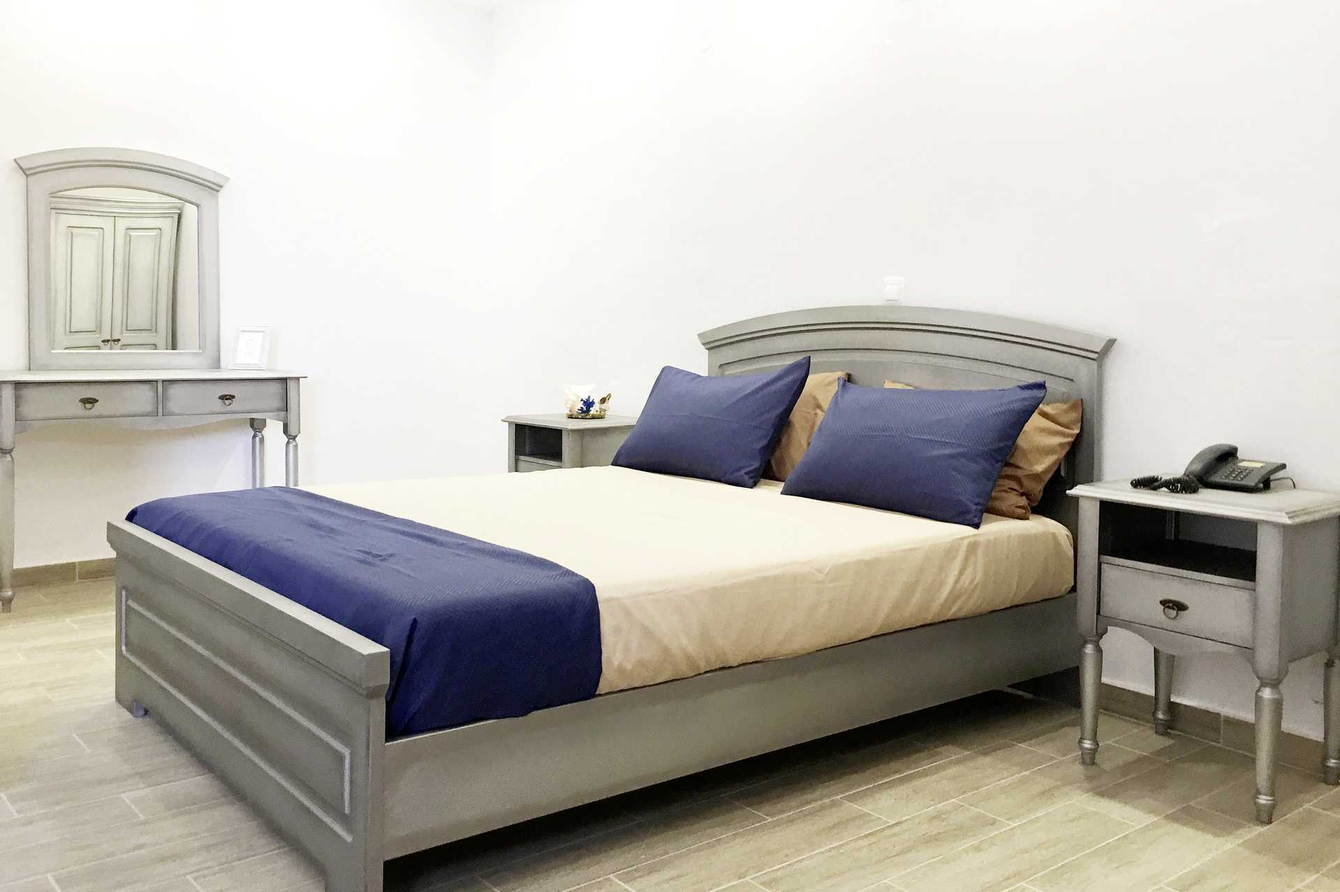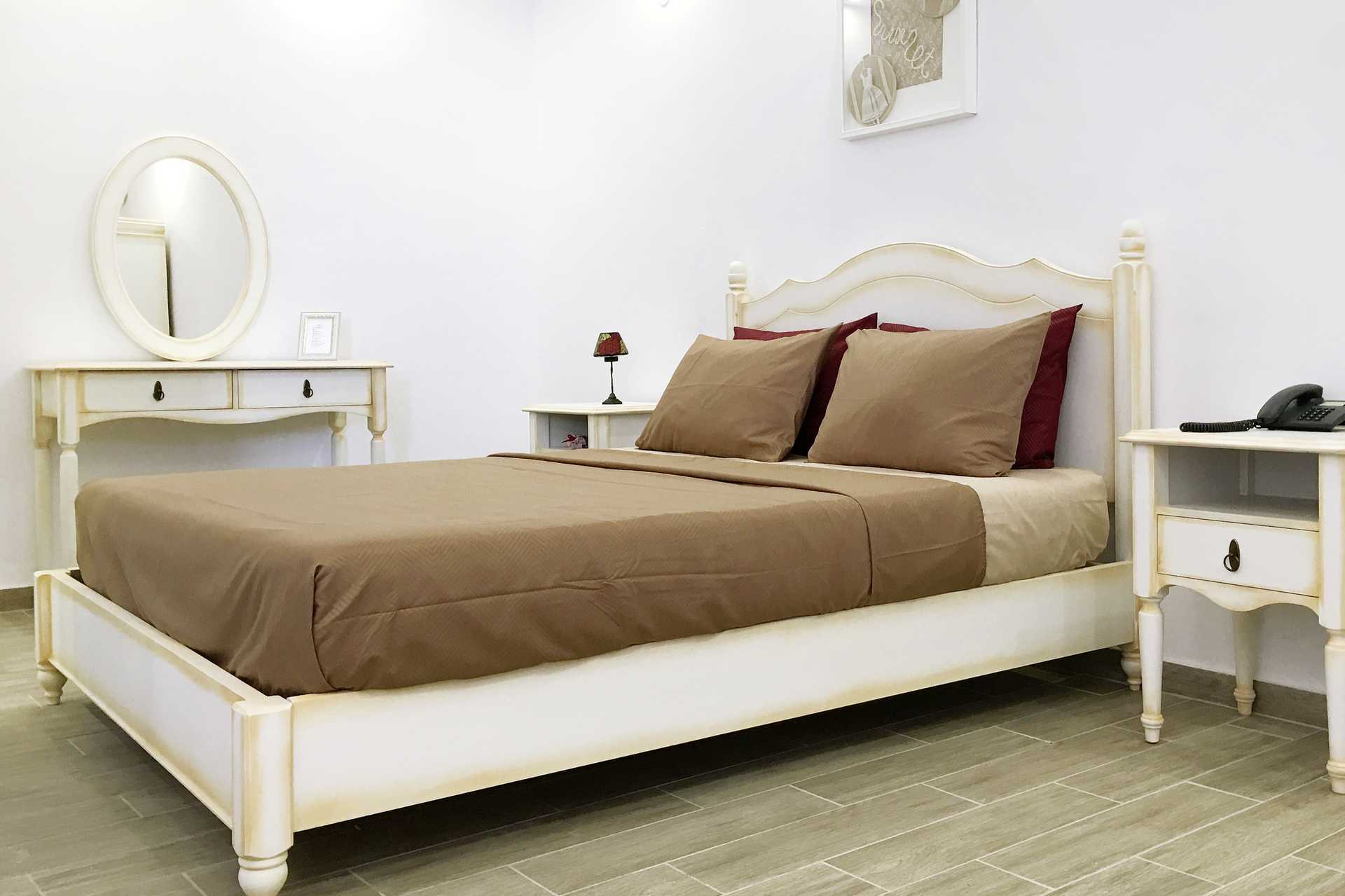 Enrumslägenhet med balkong eller terrass med havsutsikt. Kombinerat sovrum med minikök. Två enkelsängar, karpatisk säng eller en dubbelsäng. Minikök med kylskåp och enklare köksutrustning. Wifi ingår. Luftkonditionering och deponering mot avgift. Badrum med dusch och wc. Vissa lägenheter har ingång via terrassen. Städning 6 ggr/veckan.
