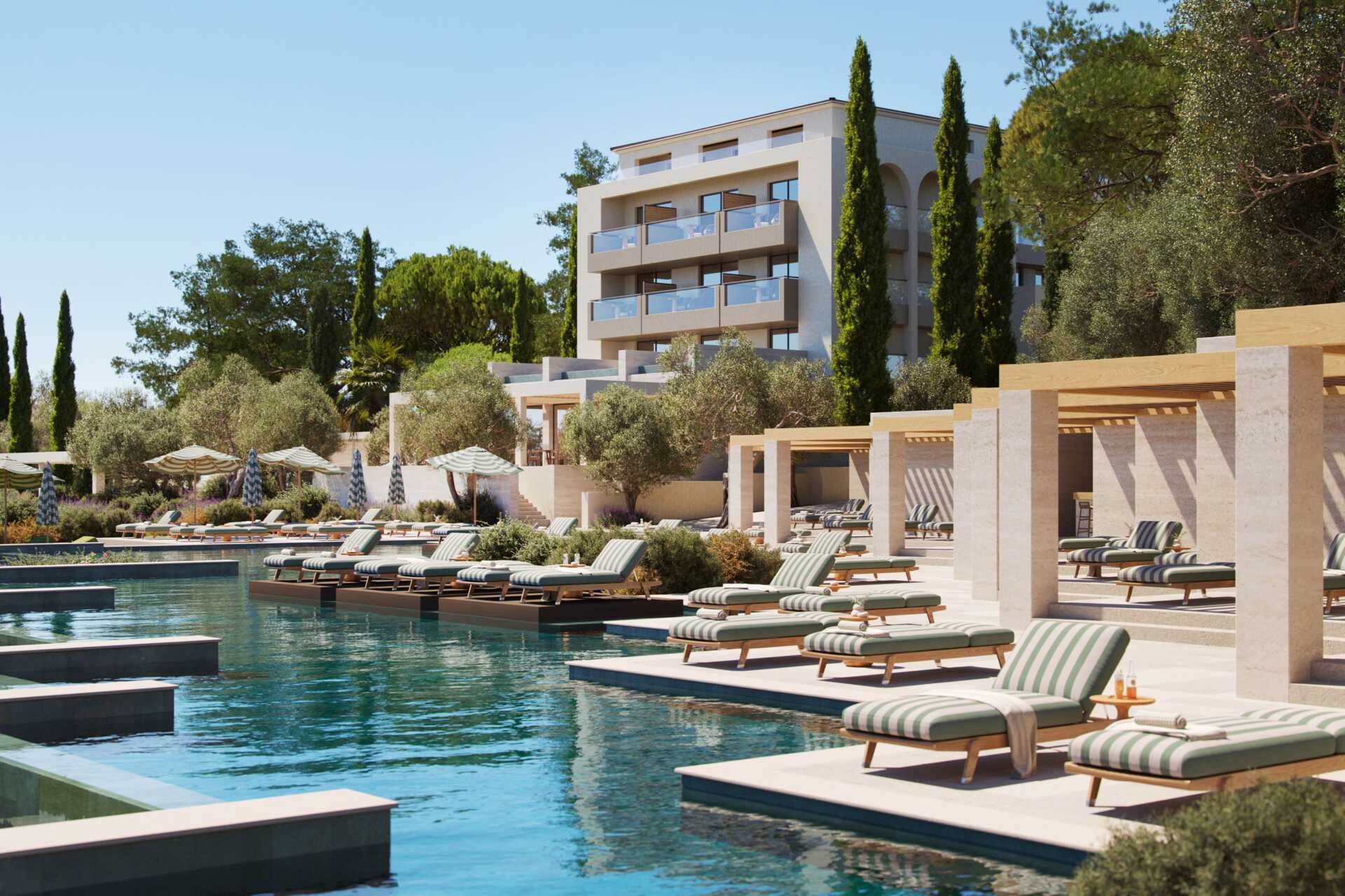 Dubbelrum med markterrass med en privat infinitypool samt med havsutsikt. Trappsteg upp till poolen. En dubbelsäng eller två enkelsängar. Wifi, luftkonditionering och deponering ingår. Minibar mot avgift. Vattenkokare samt kaffe och te. Nespresso kaffemaskin - kapslar ingår. Tv med internationella kanaler. Badrockar. Hårtork. Badrum med dusch och wc. Städning 7 ggr/vecka.